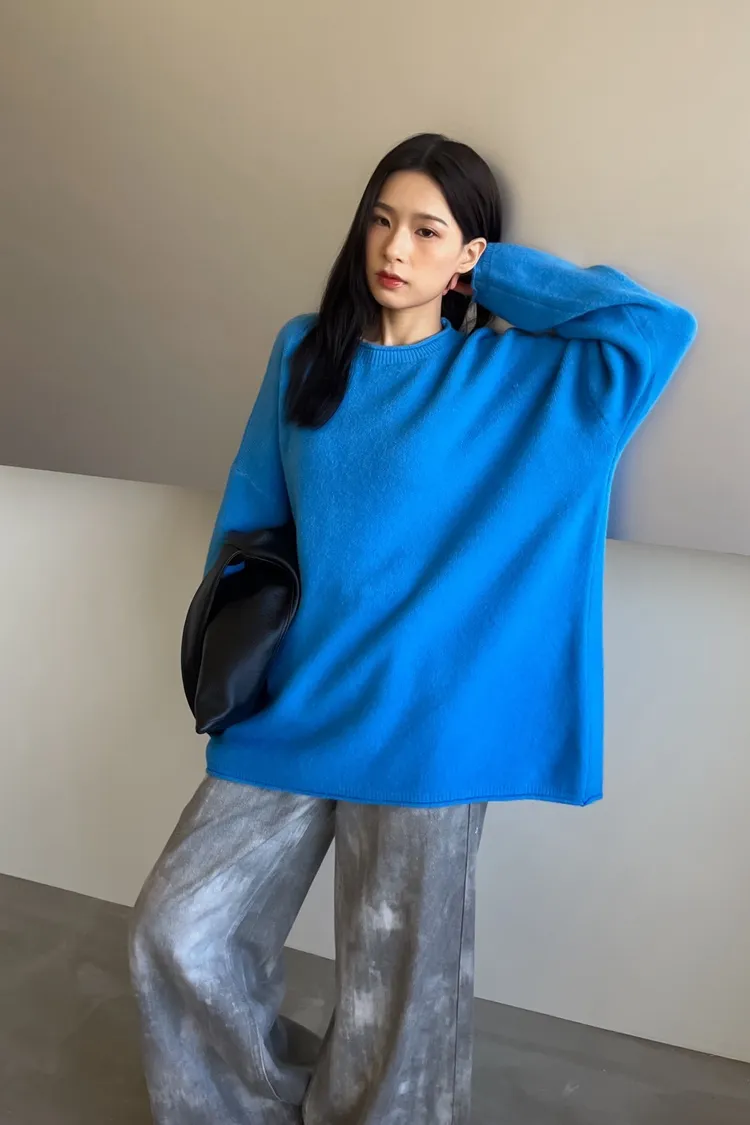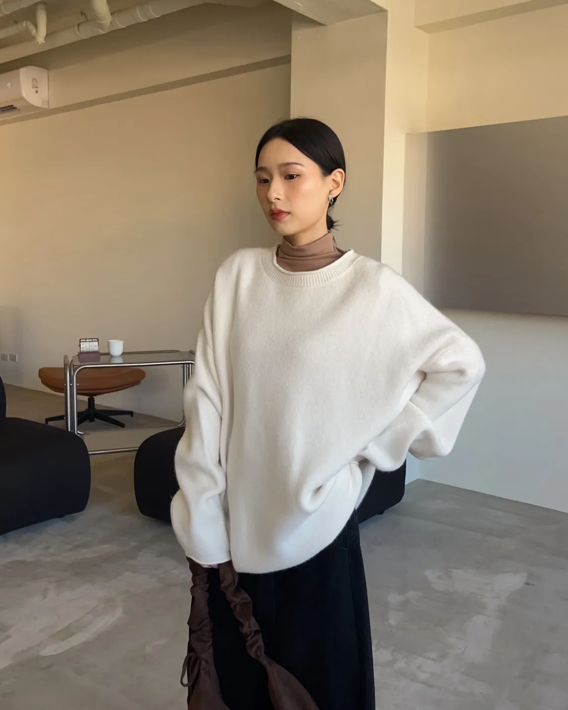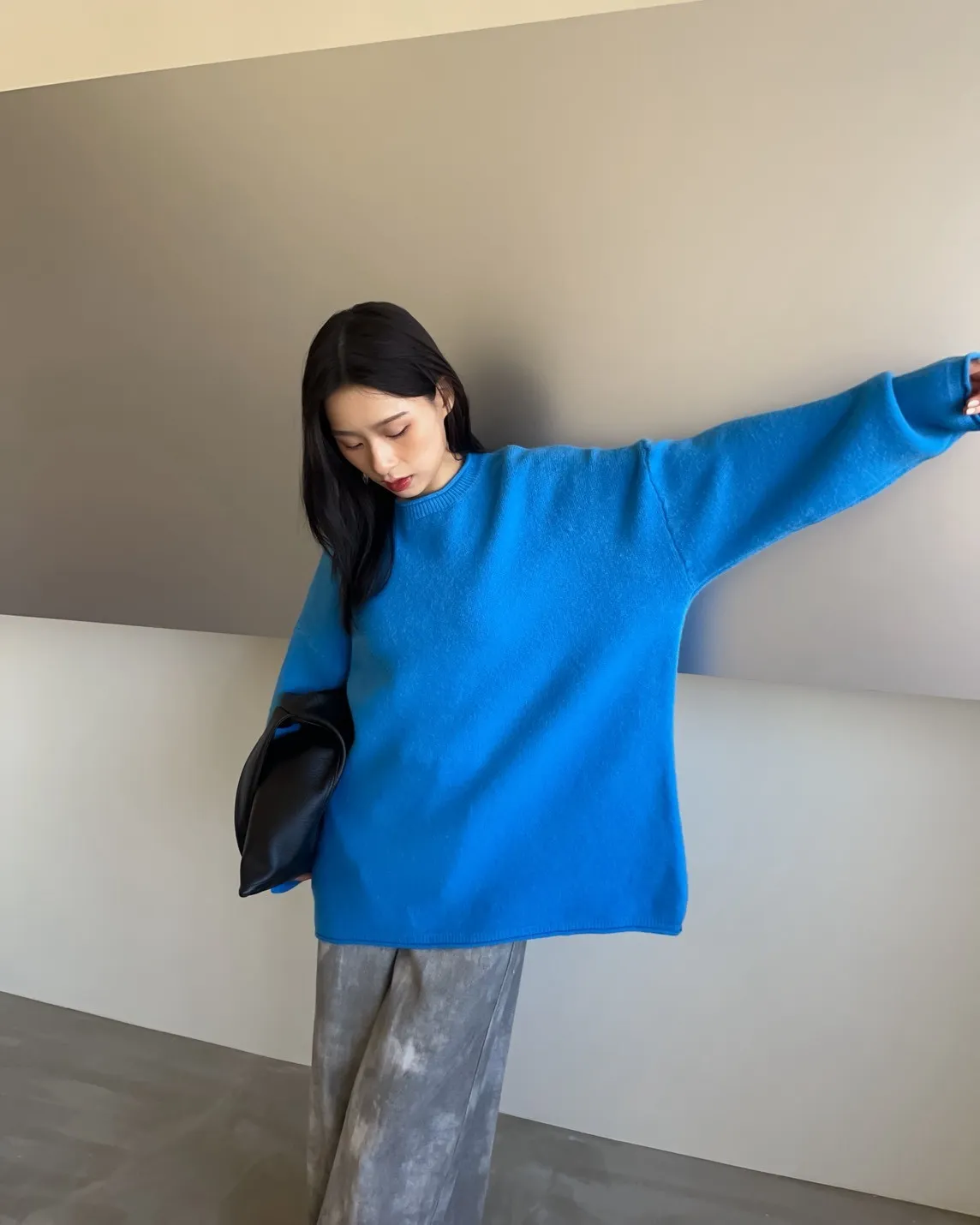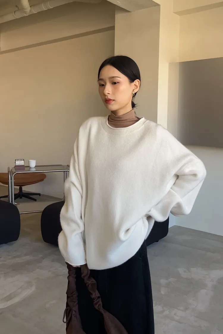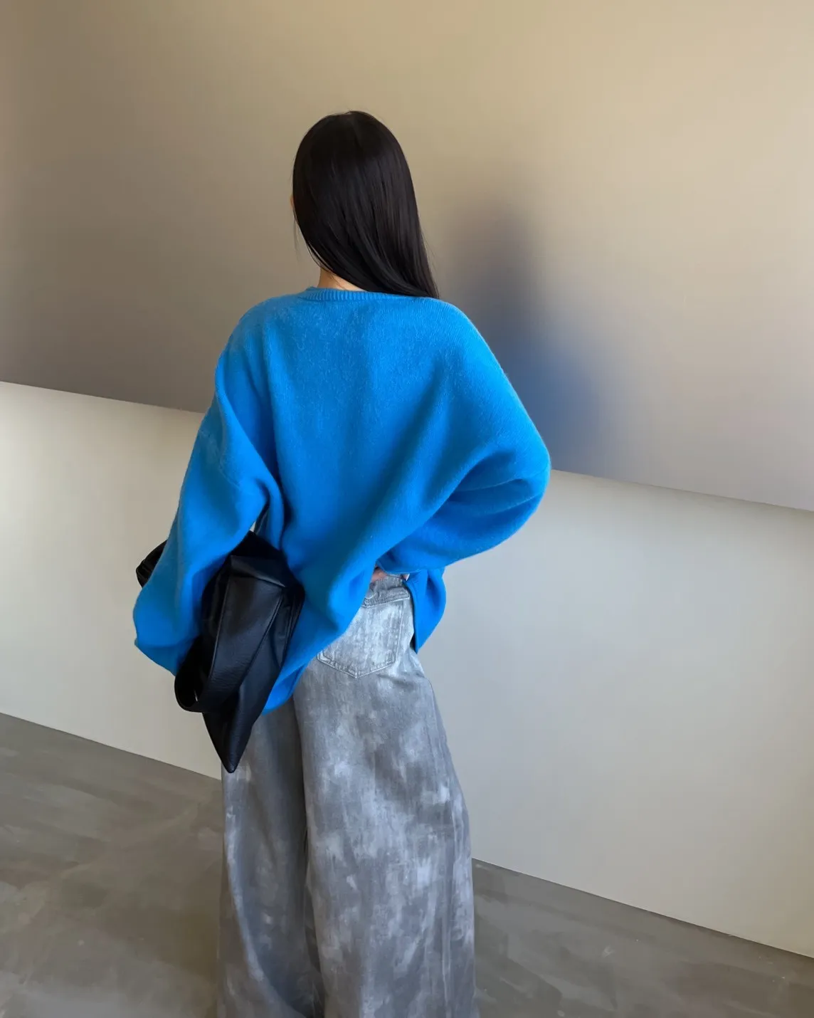W0035(九色)療癒色系~QQ邊寬鬆大毛衣(米白/灰杏/奶茶/駝/黃/紅/藍/灰/黑)