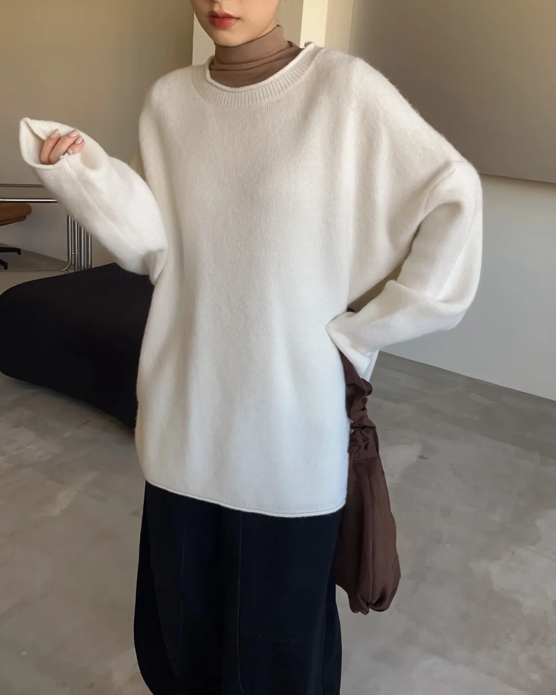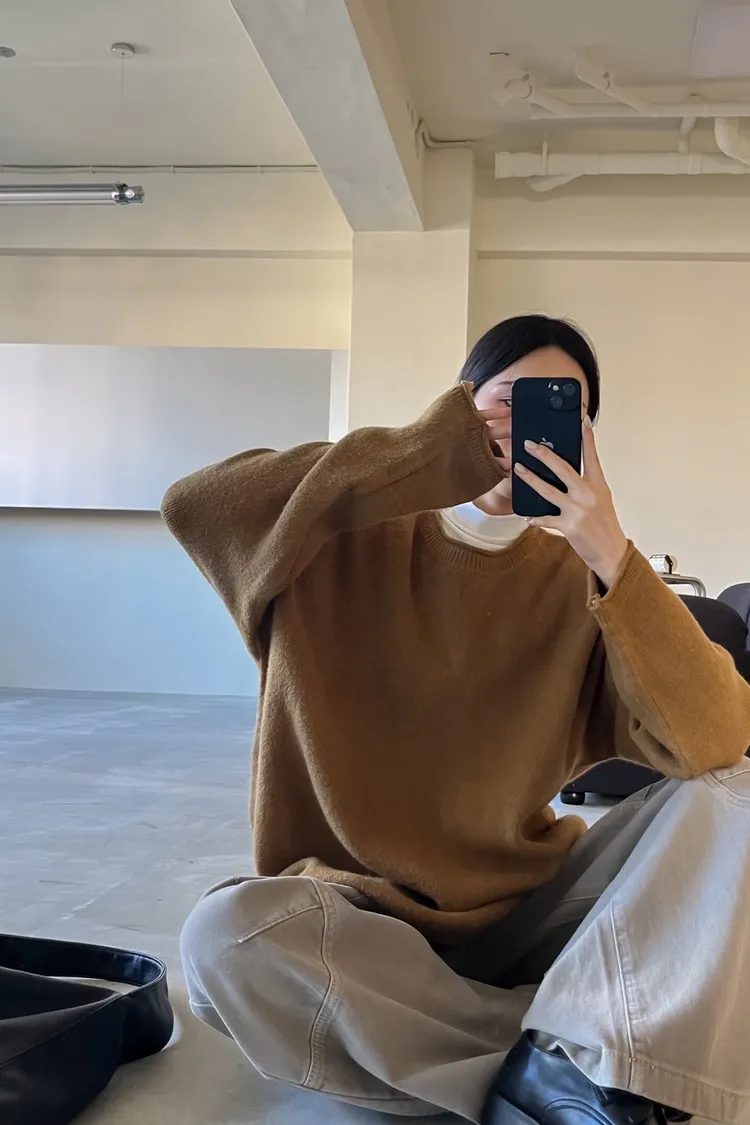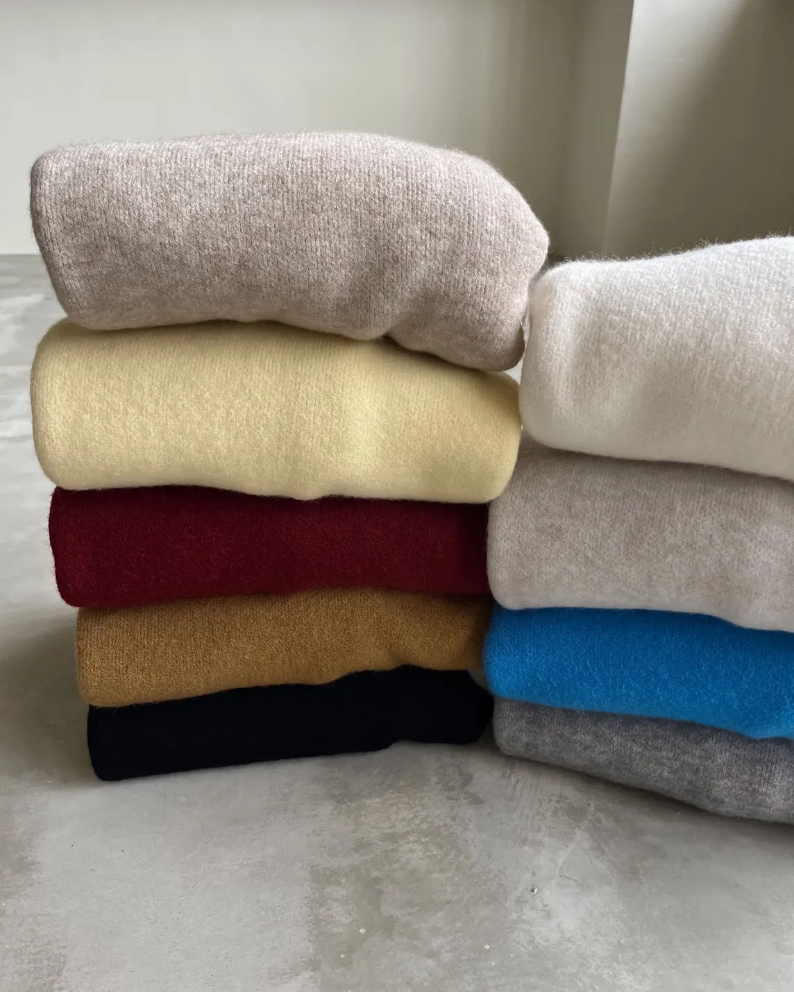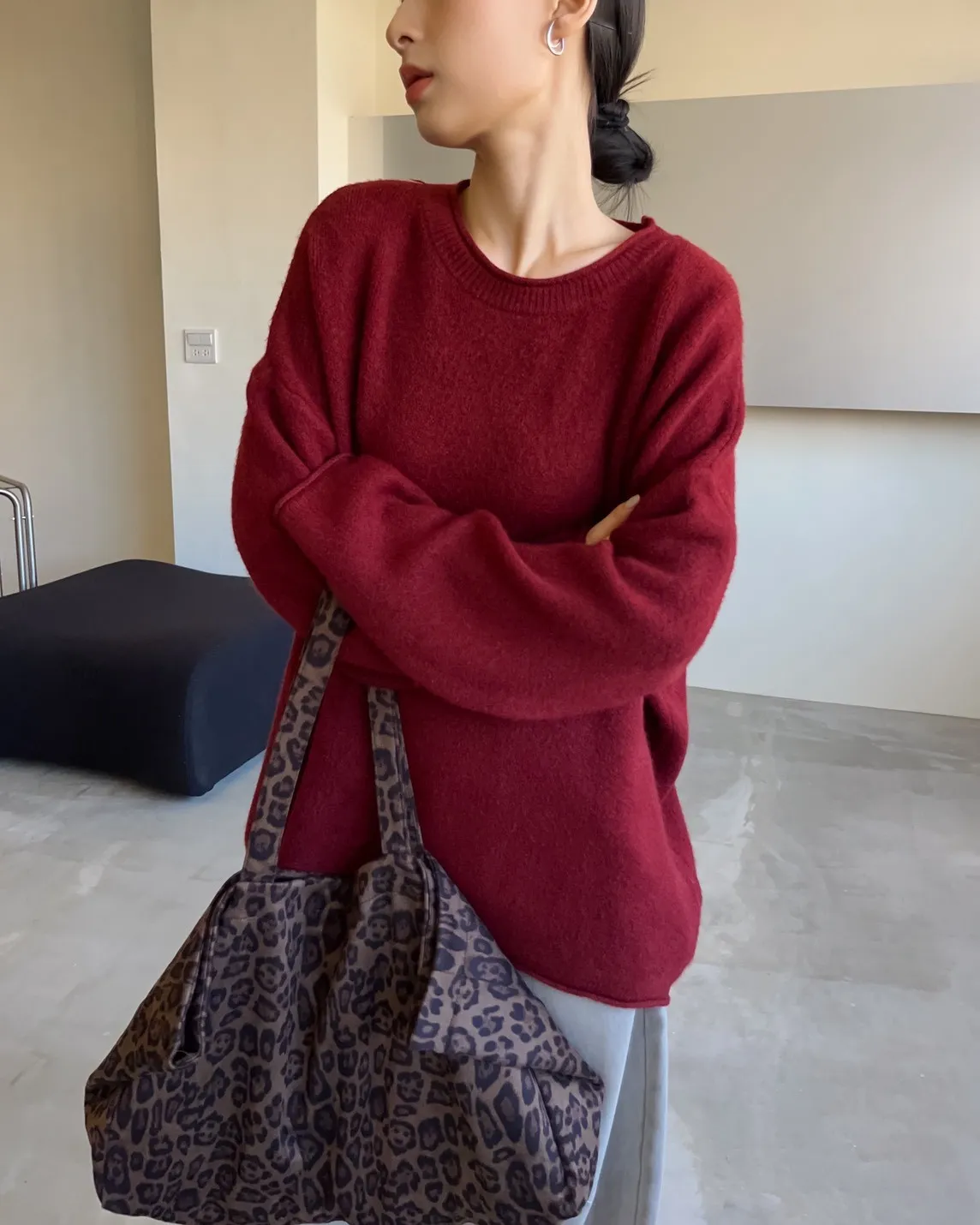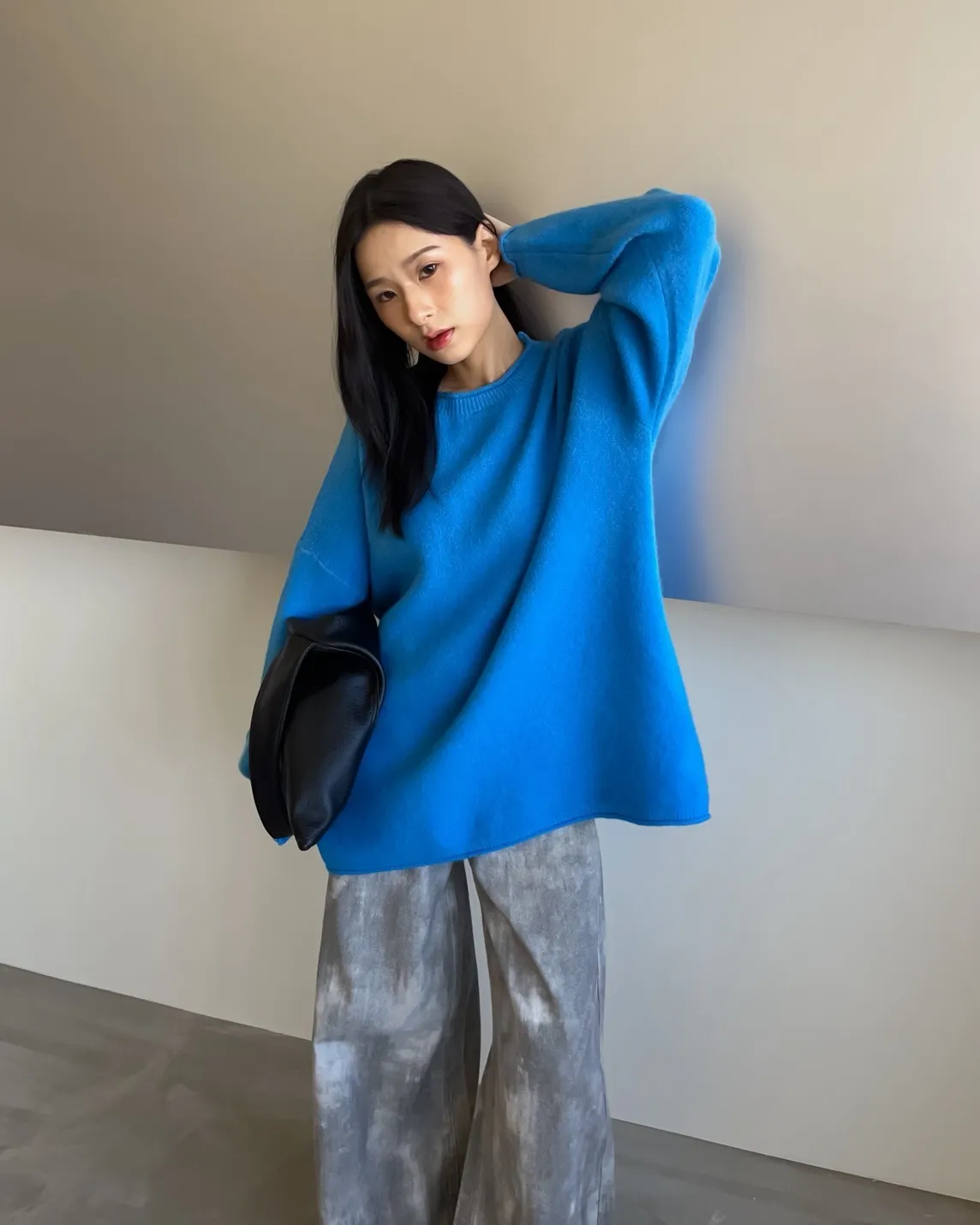 W0035(九色)療癒色系~QQ邊寬鬆大毛衣(米白/灰杏/奶茶/駝/黃/紅/藍/灰/黑)
