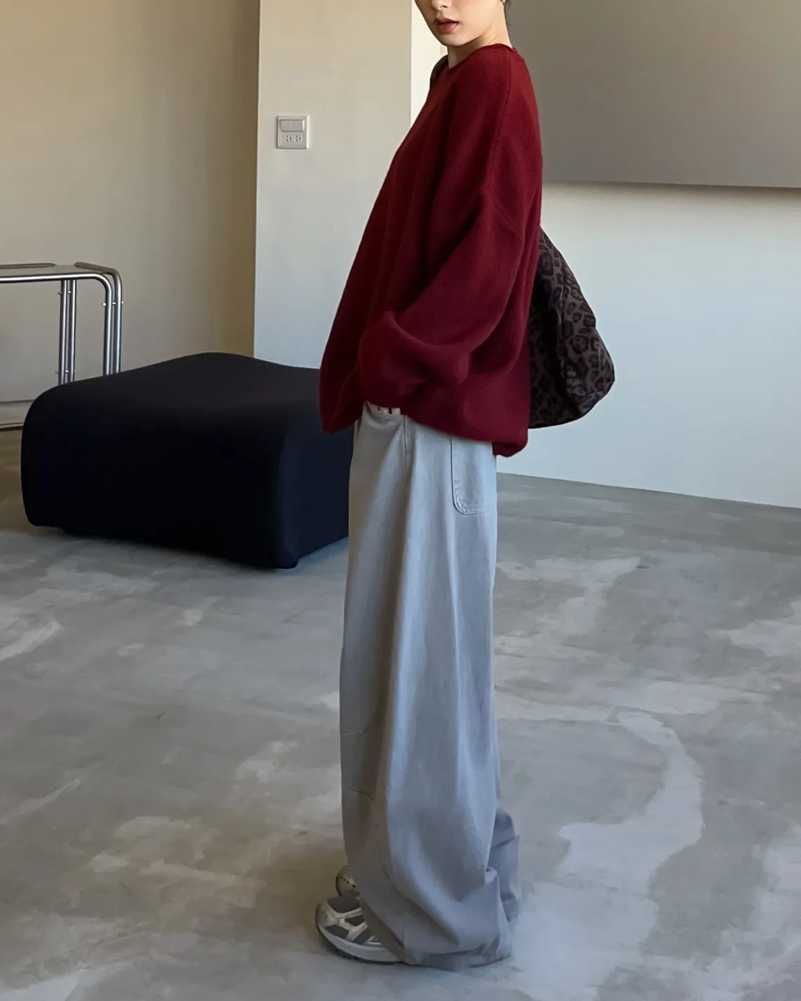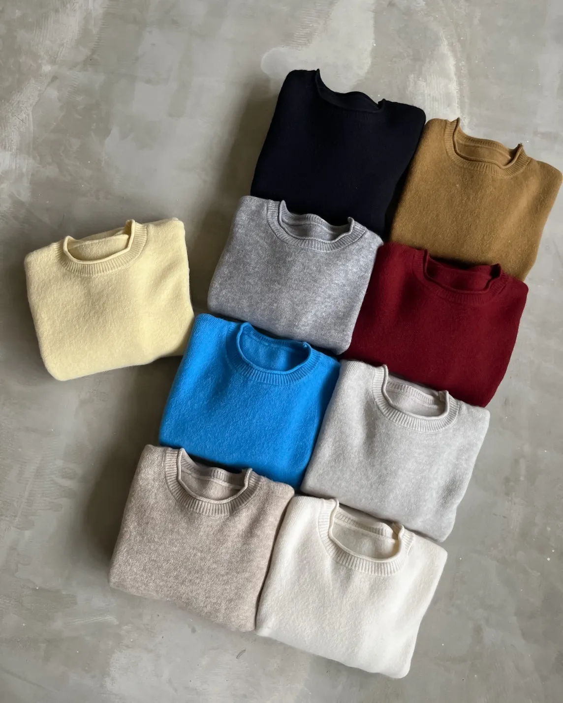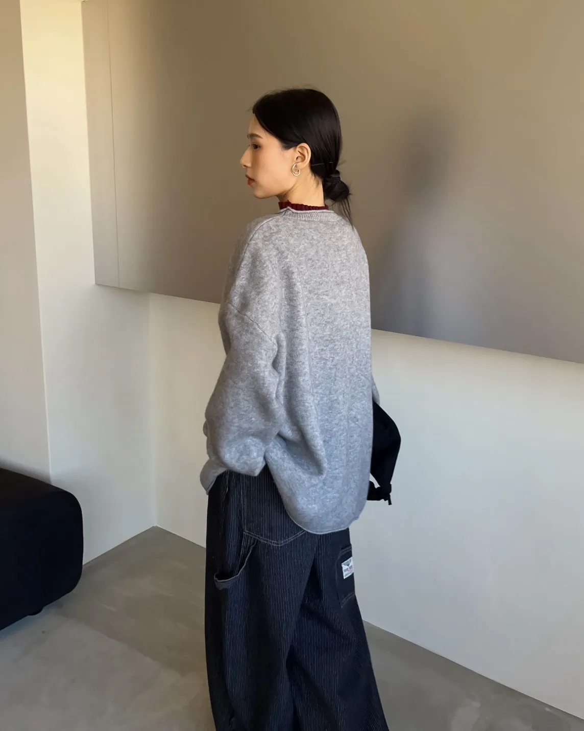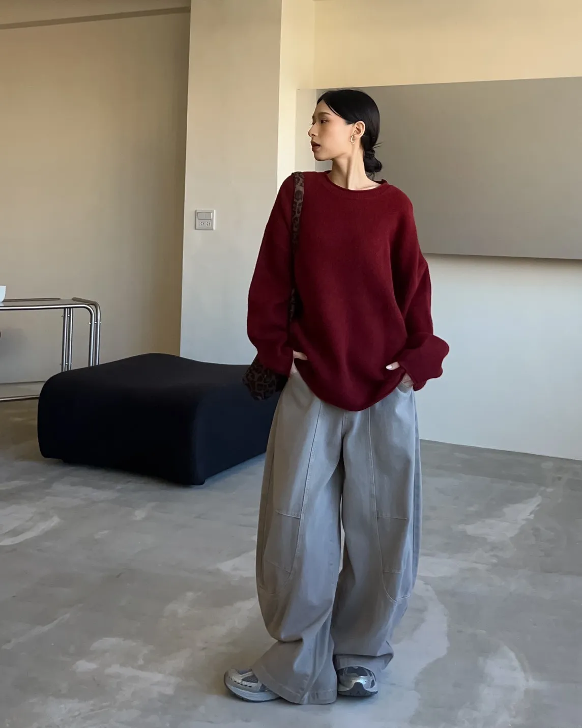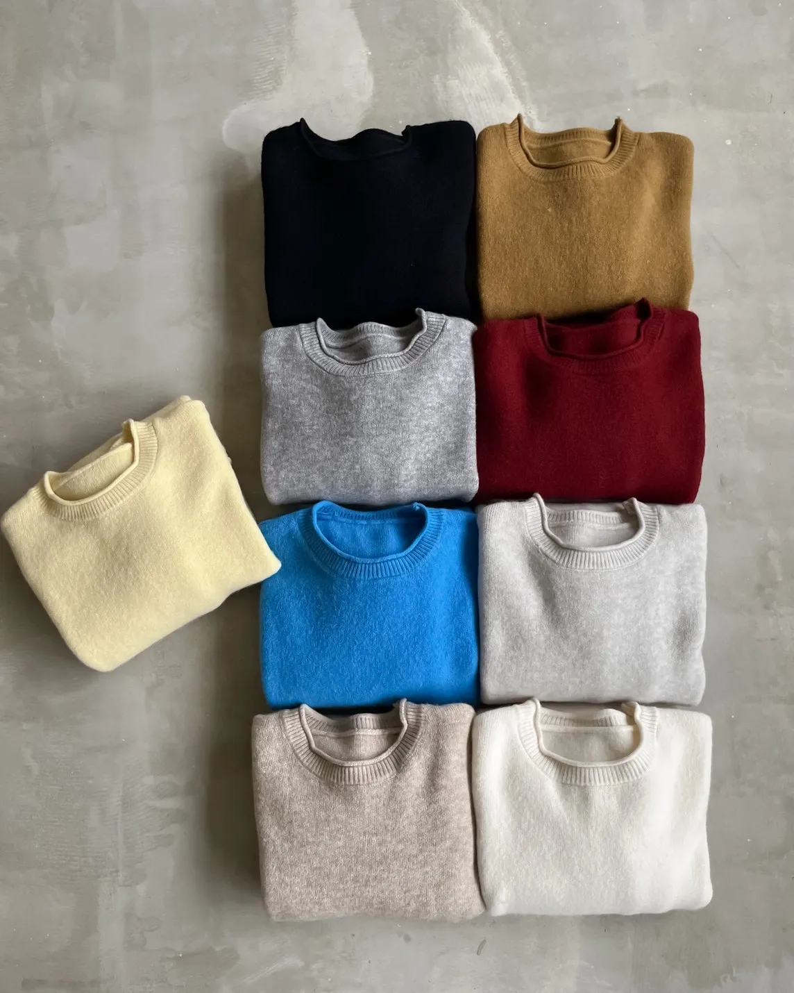 W0035(九色)療癒色系~QQ邊寬鬆大毛衣(米白/灰杏/奶茶/駝/黃/紅/藍/灰/黑)