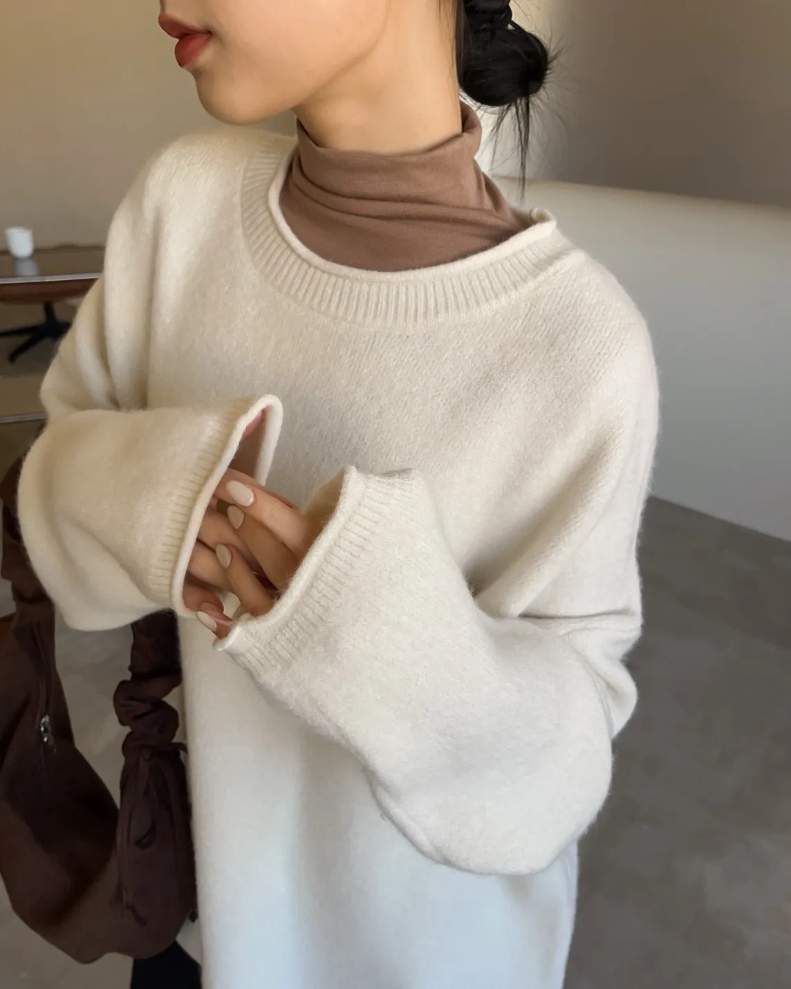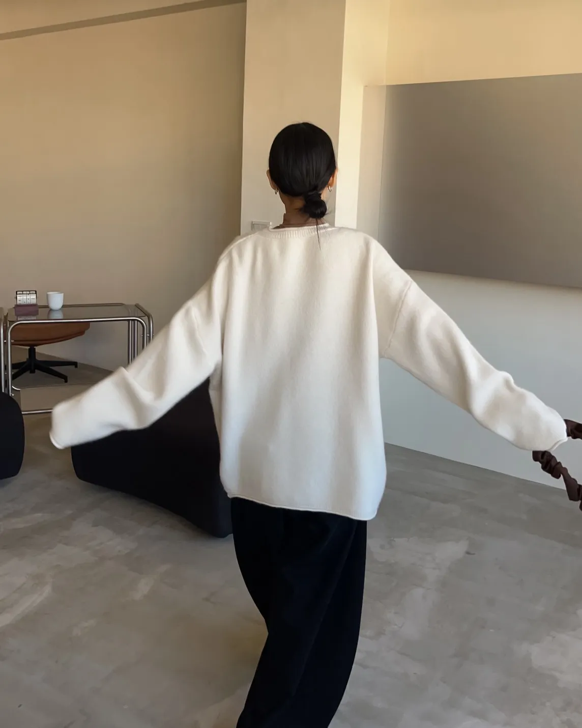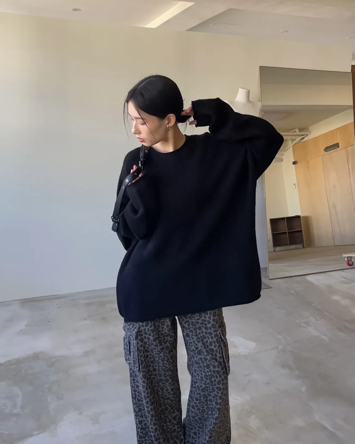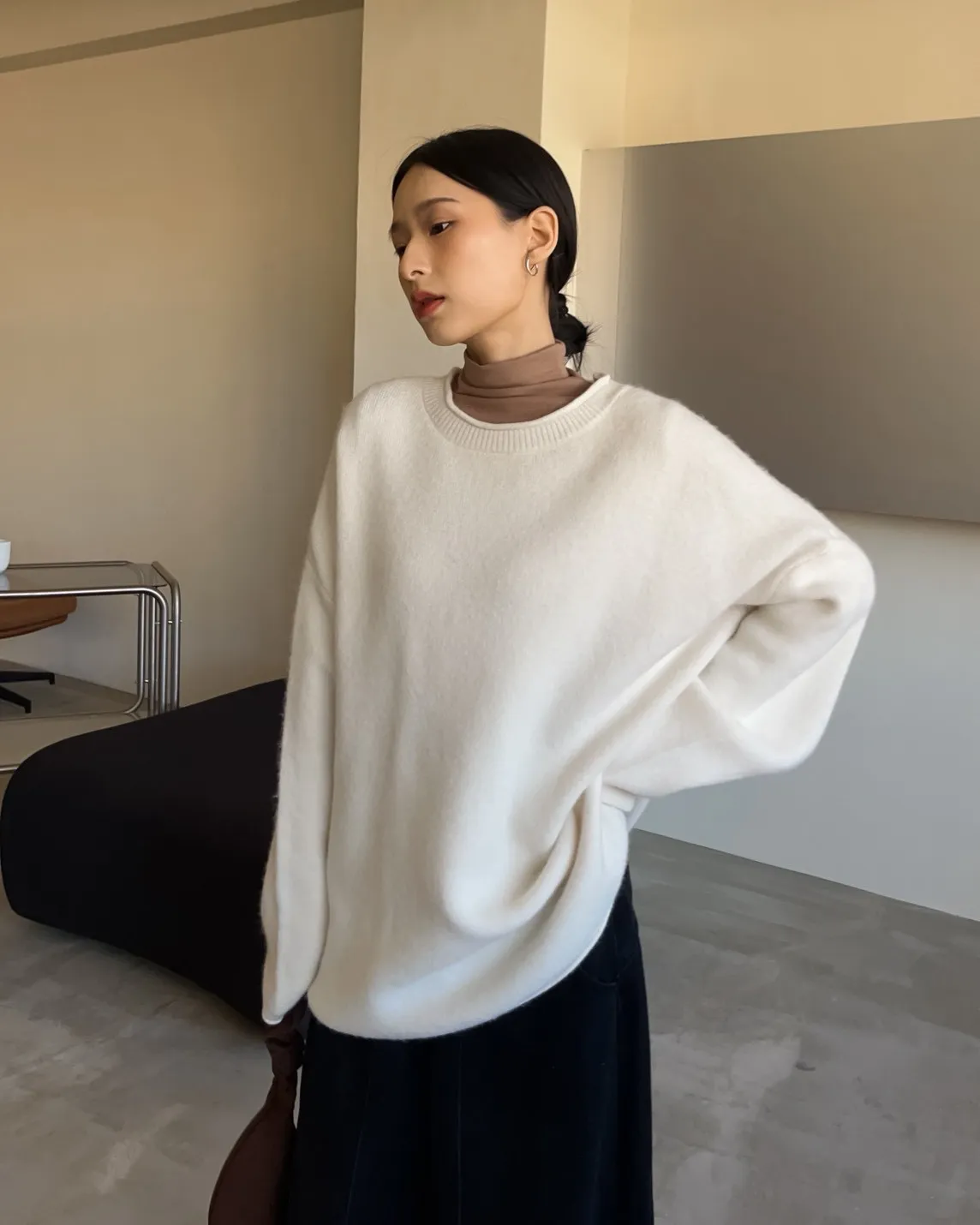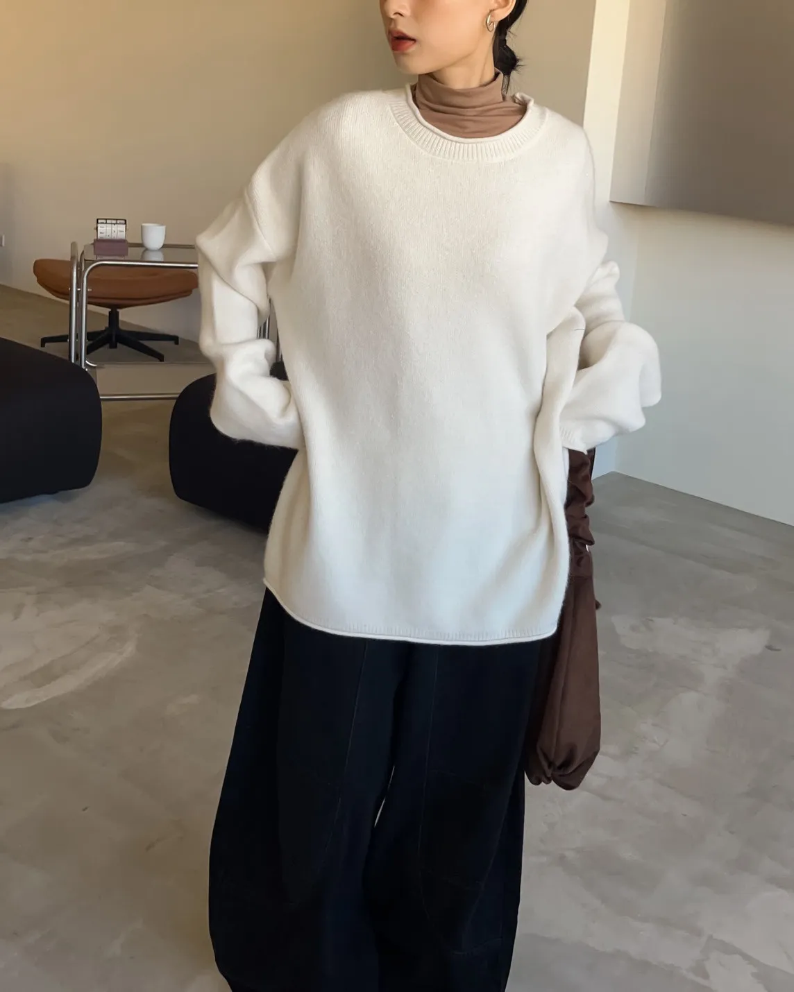W0035(九色)療癒色系~QQ邊寬鬆大毛衣(米白/灰杏/奶茶/駝/黃/紅/藍/灰/黑)
