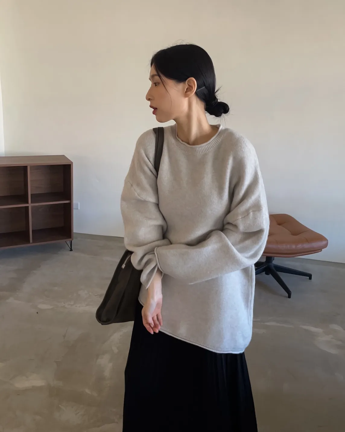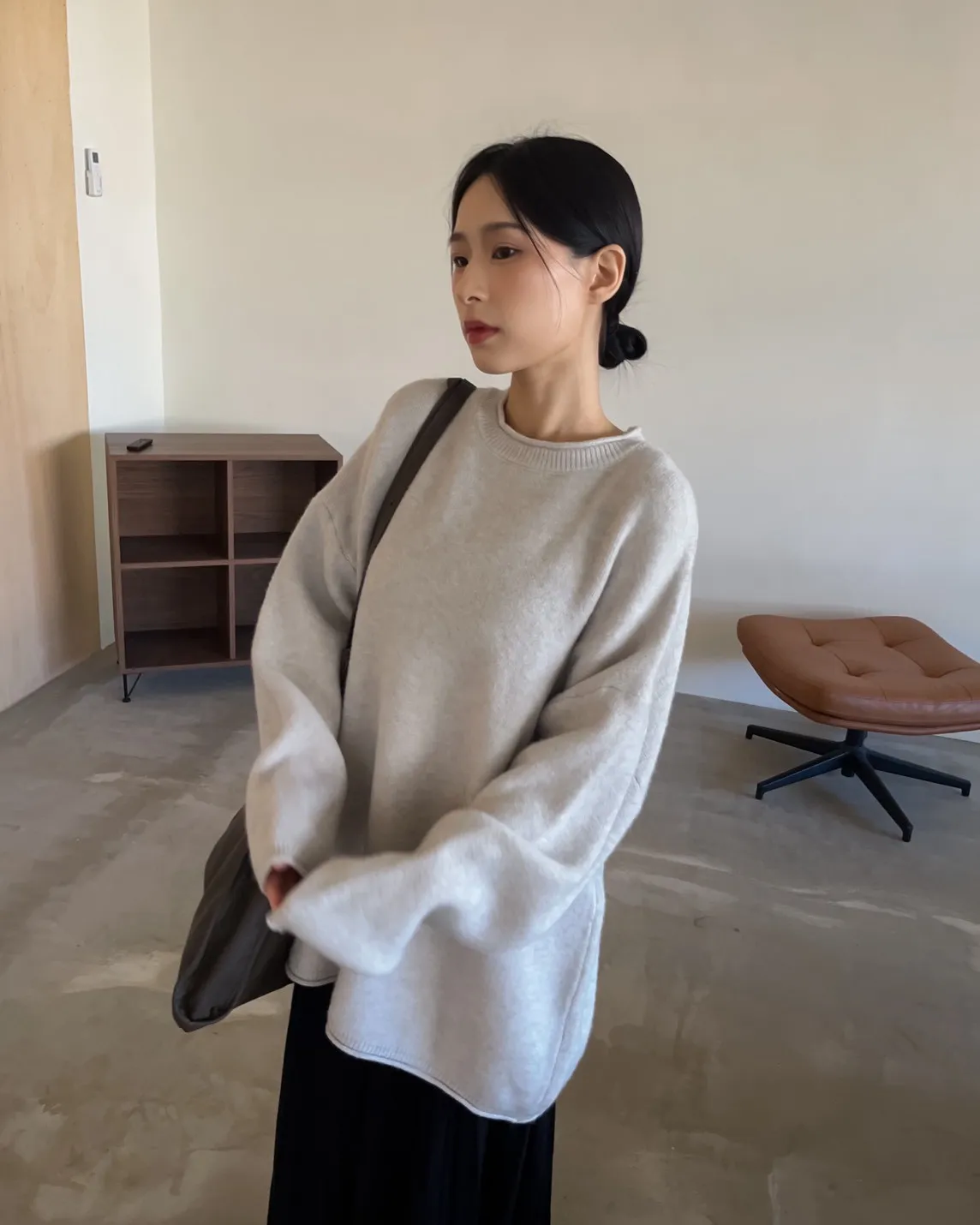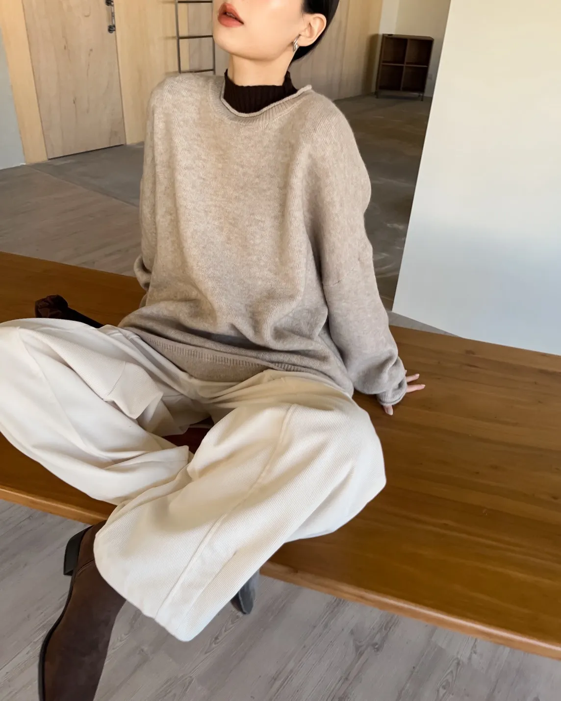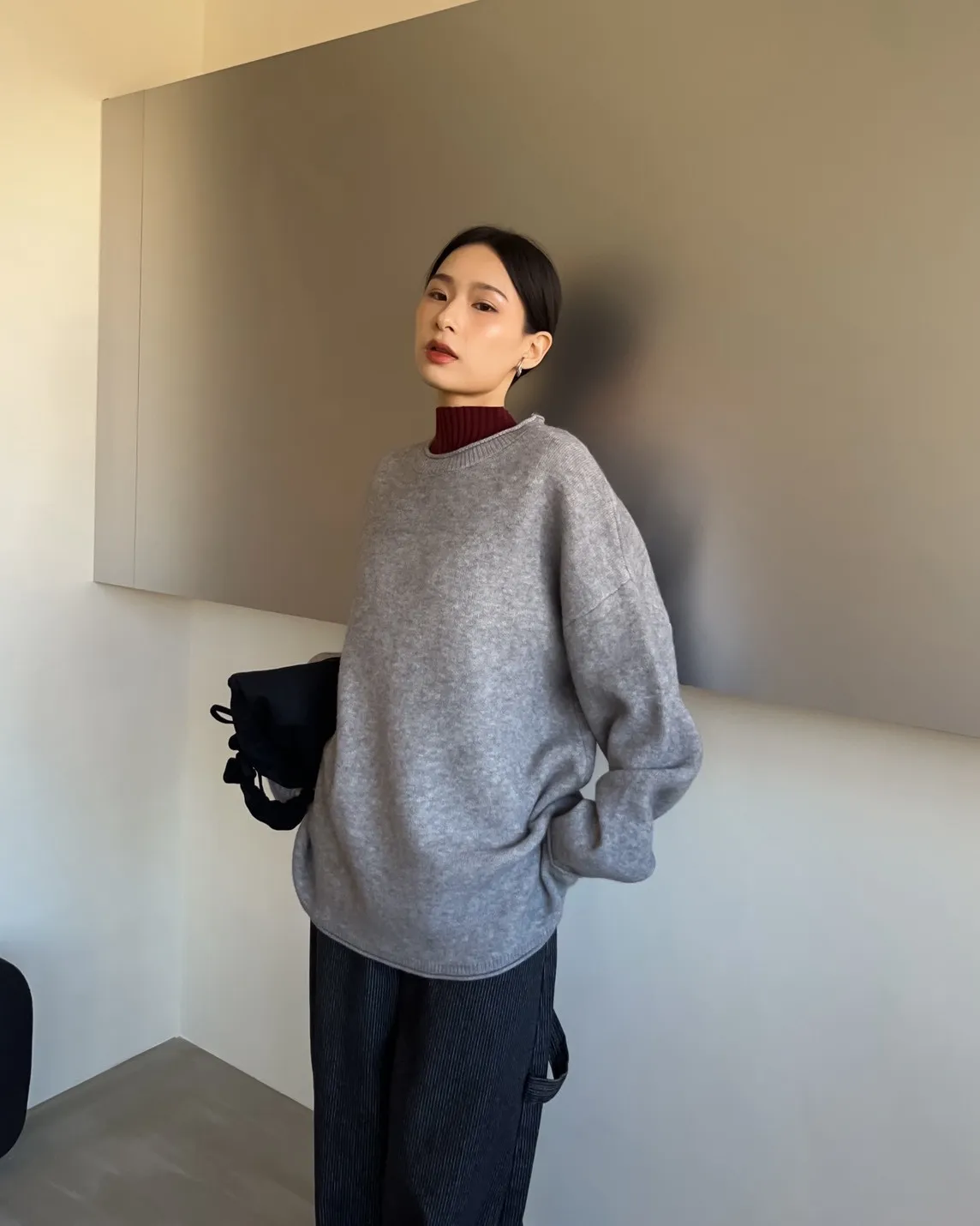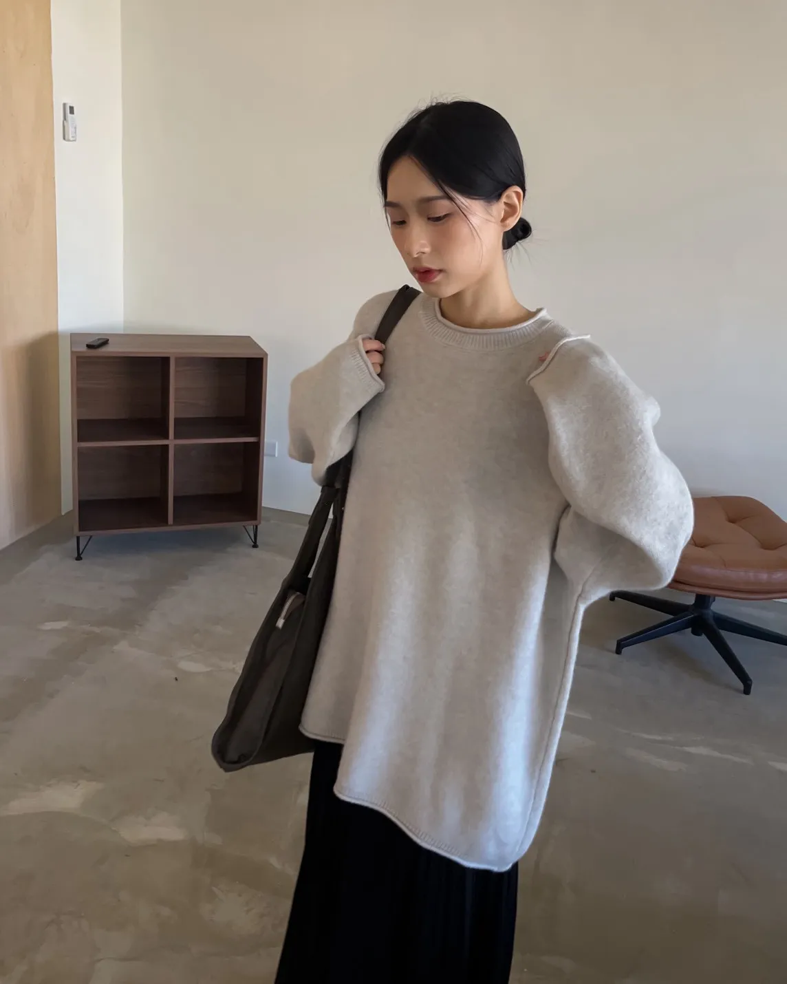 寬鬆落肩 Q捲邊 螺紋滾邊 微厚度針織
