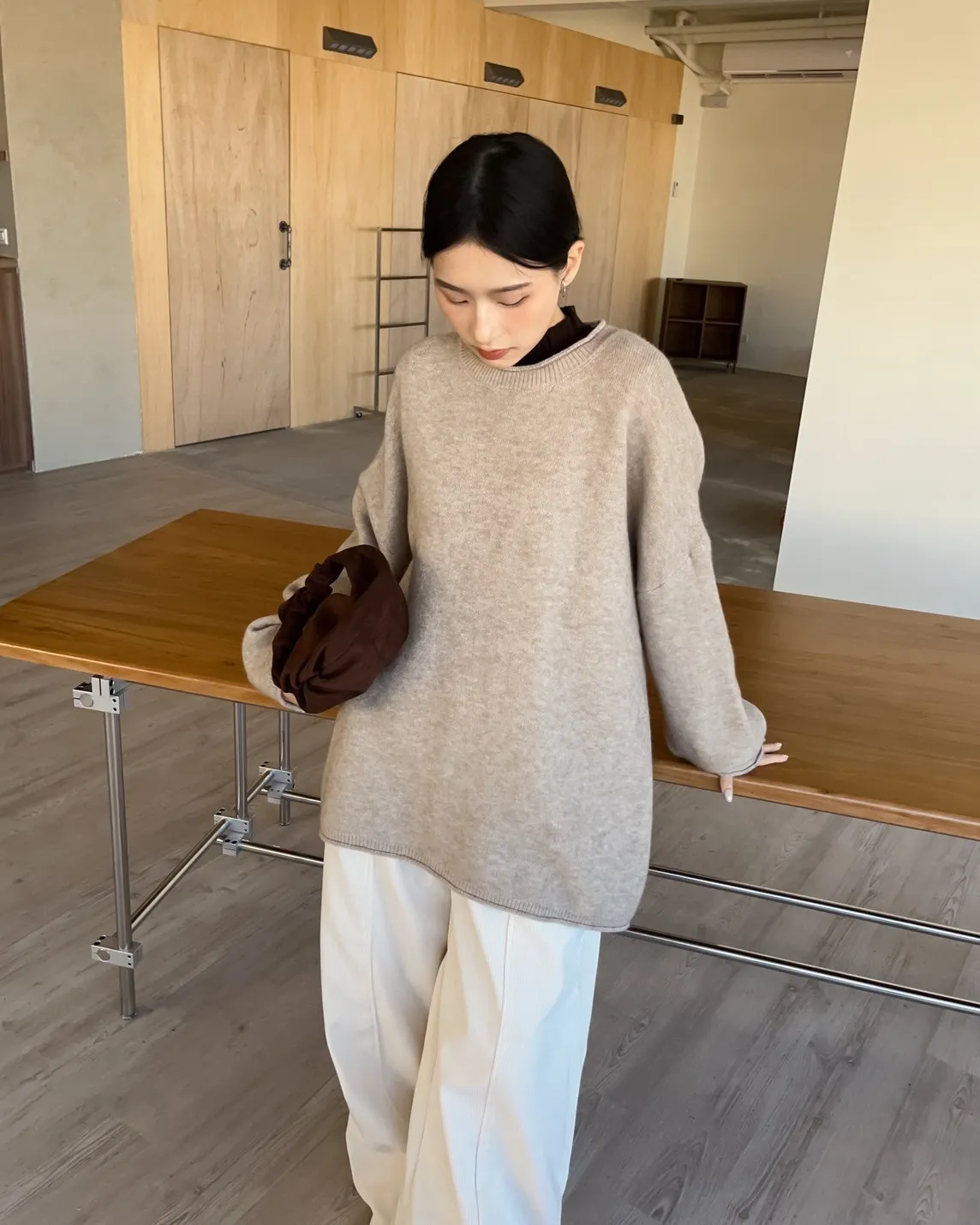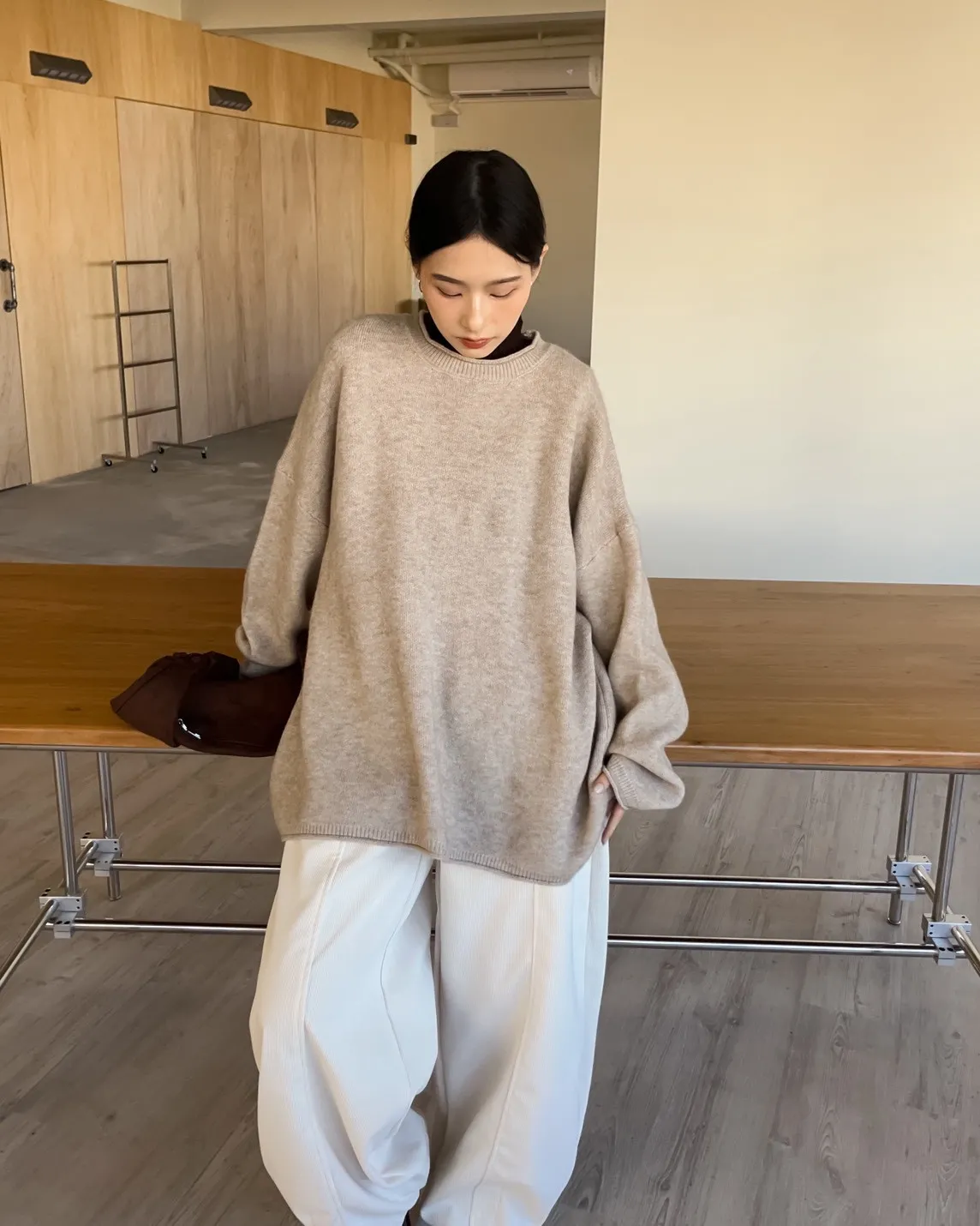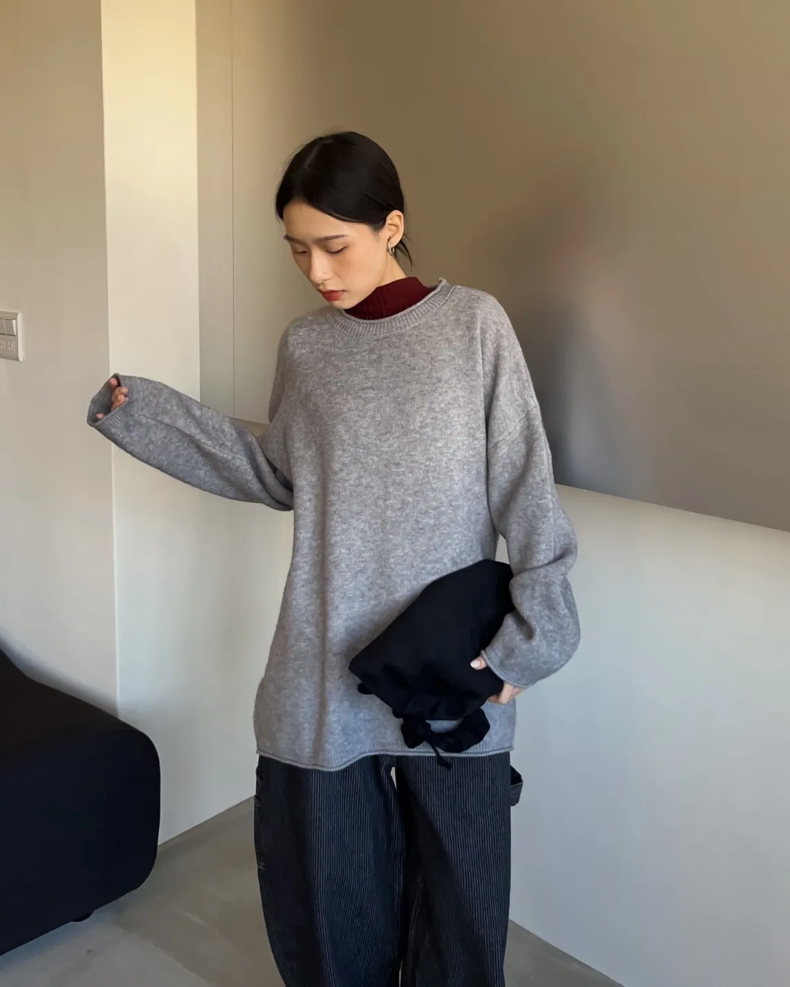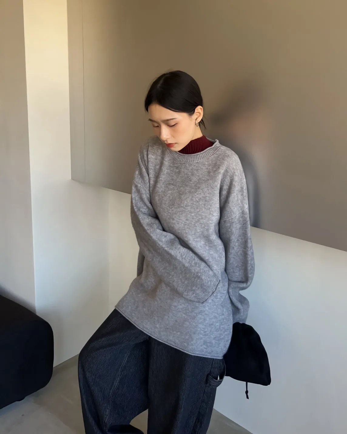 寬鬆落肩 Q捲邊 螺紋滾邊 微厚度針織