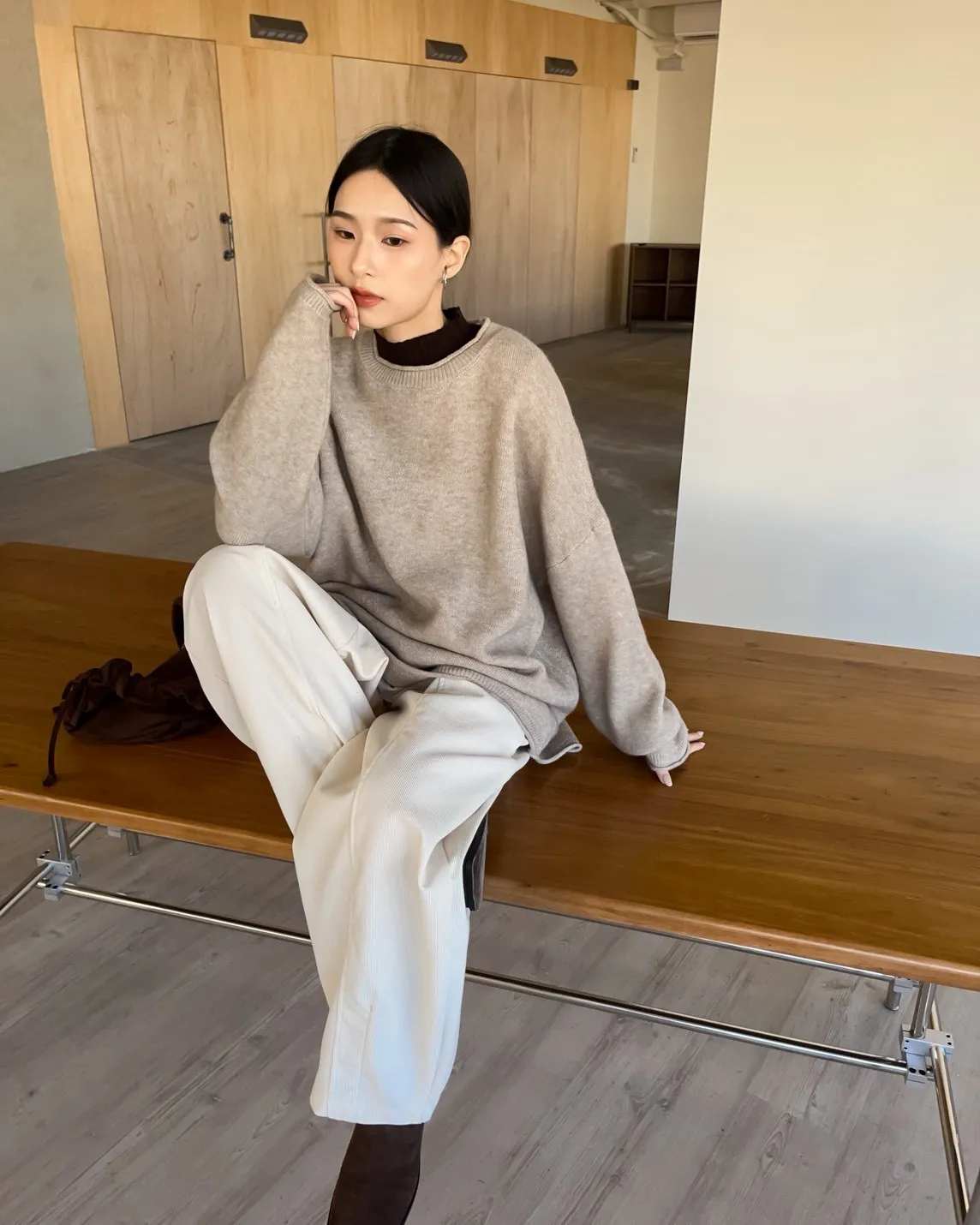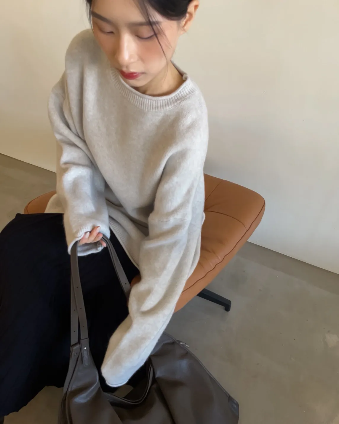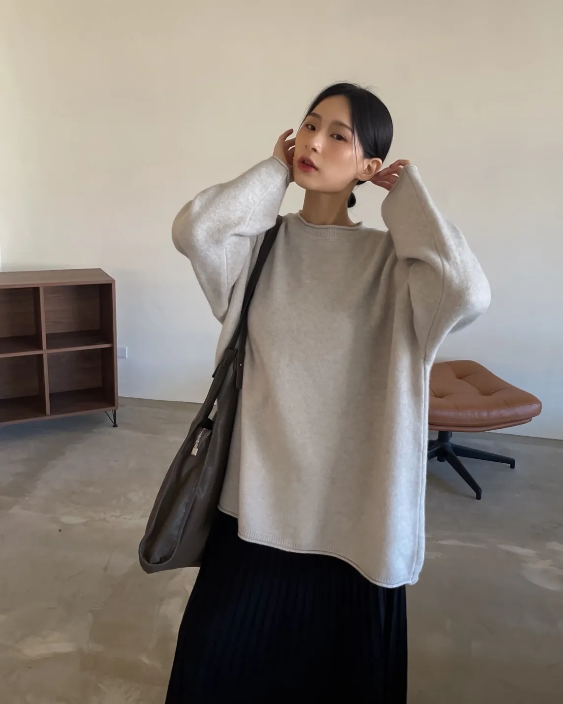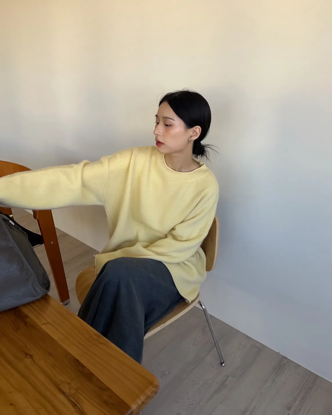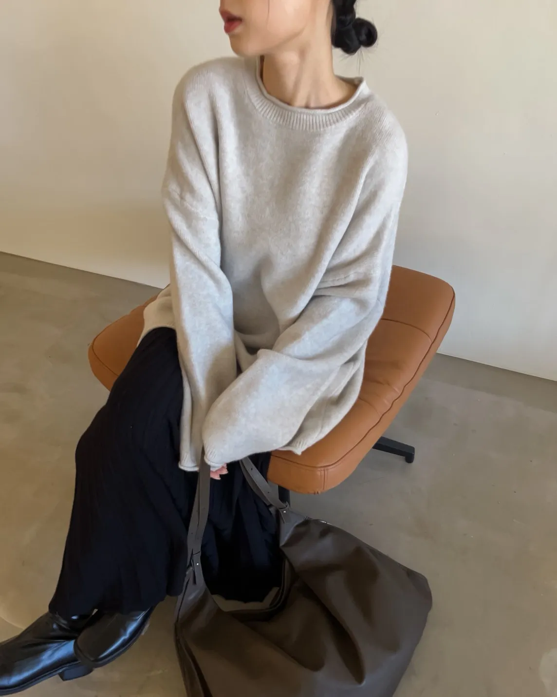 寬鬆落肩 Q捲邊 螺紋滾邊 微厚度針織