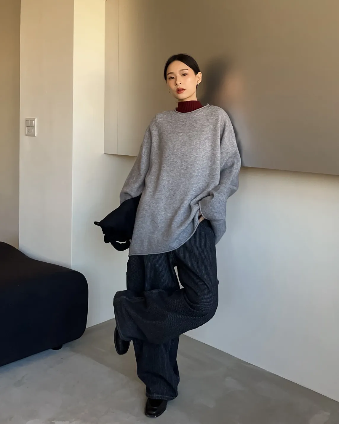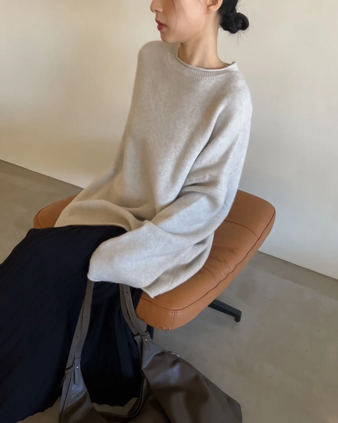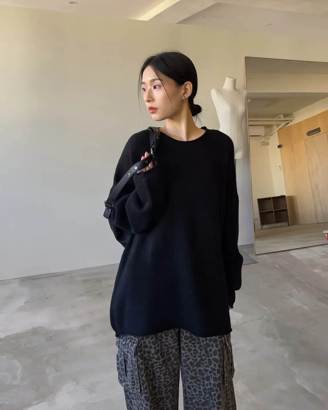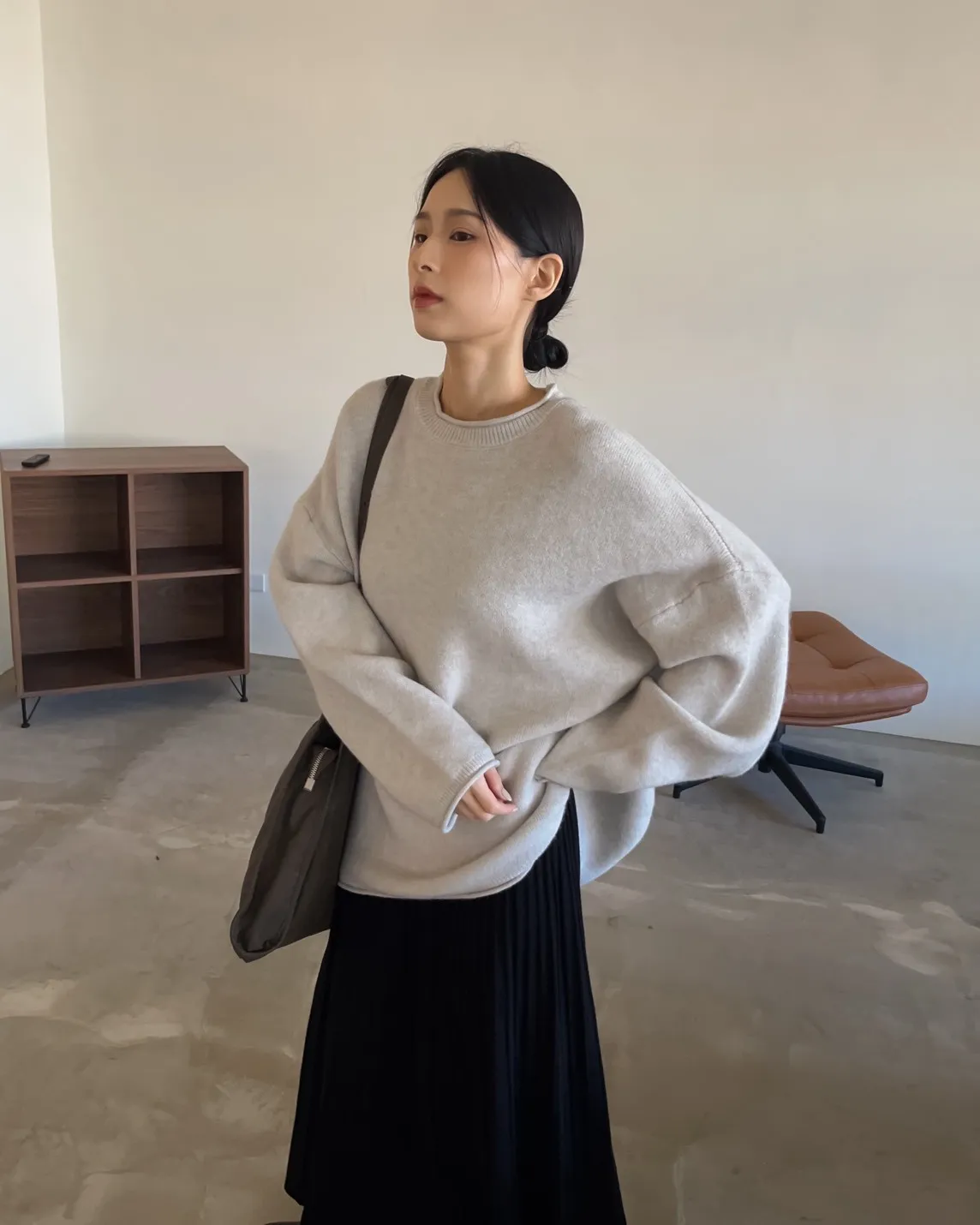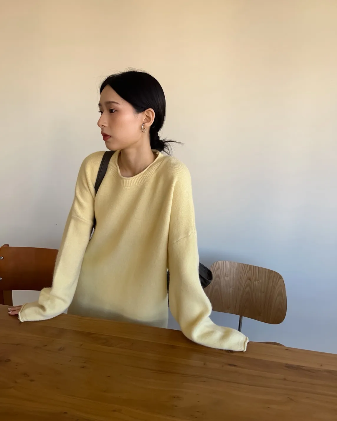 寬鬆落肩 Q捲邊 螺紋滾邊 微厚度針織