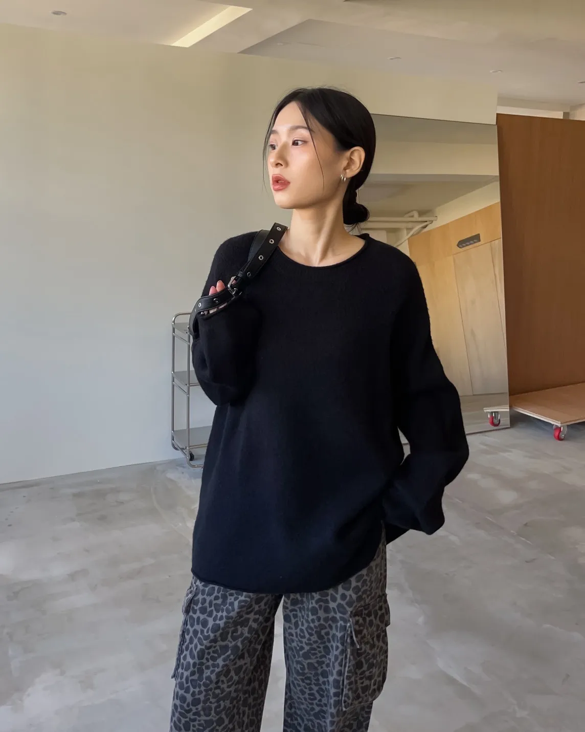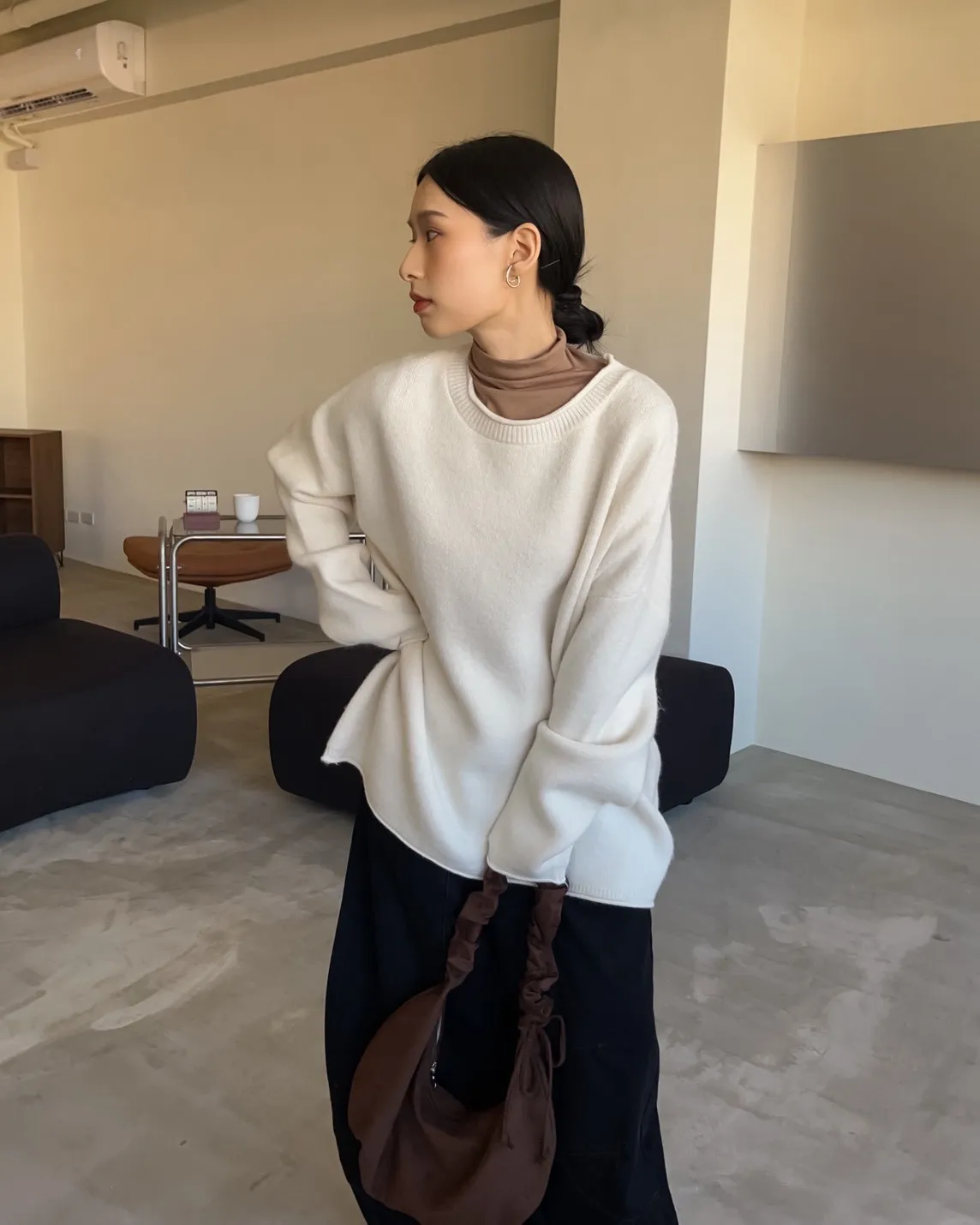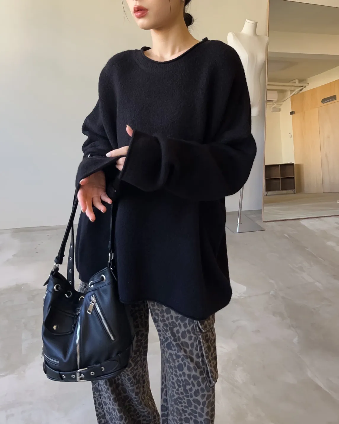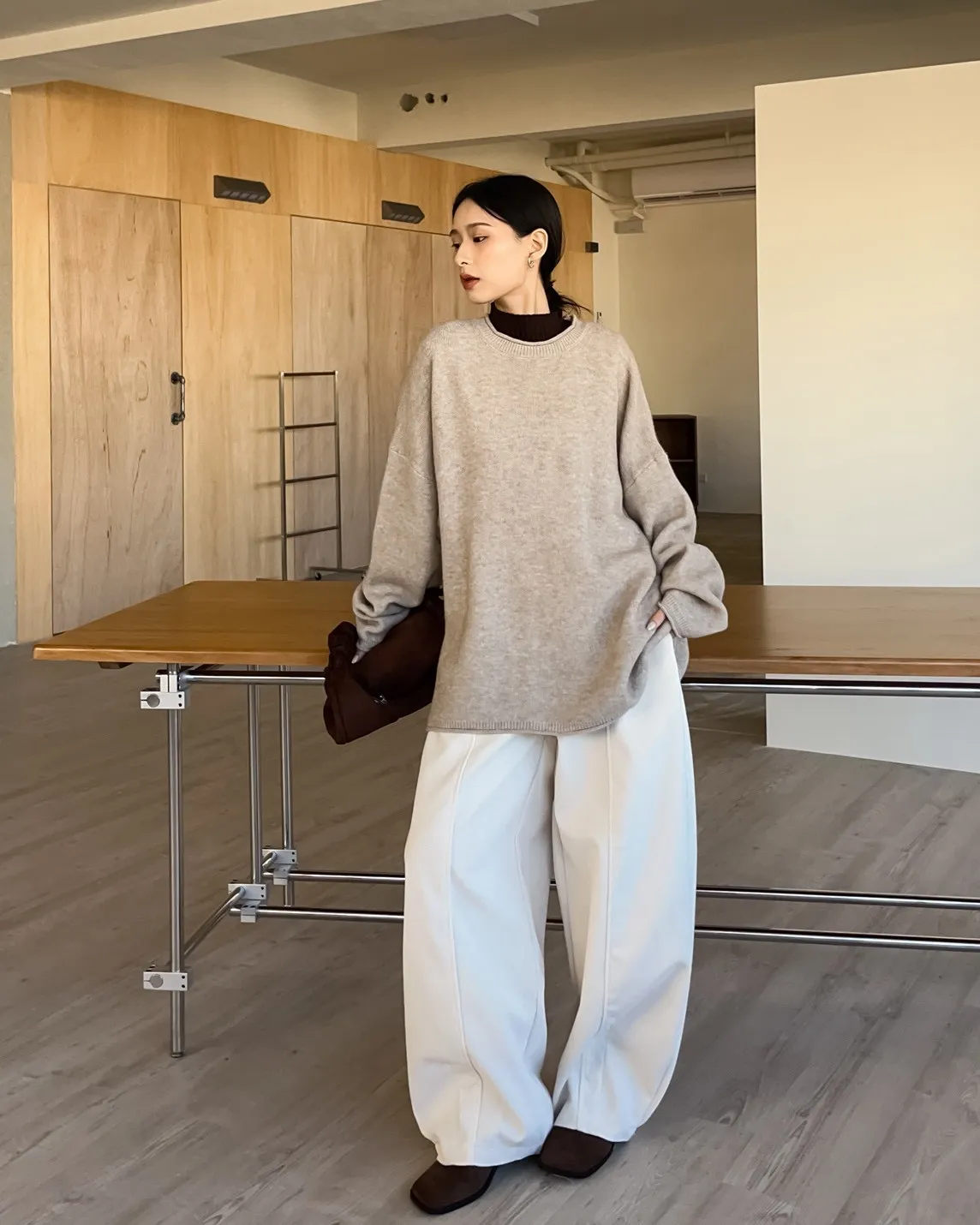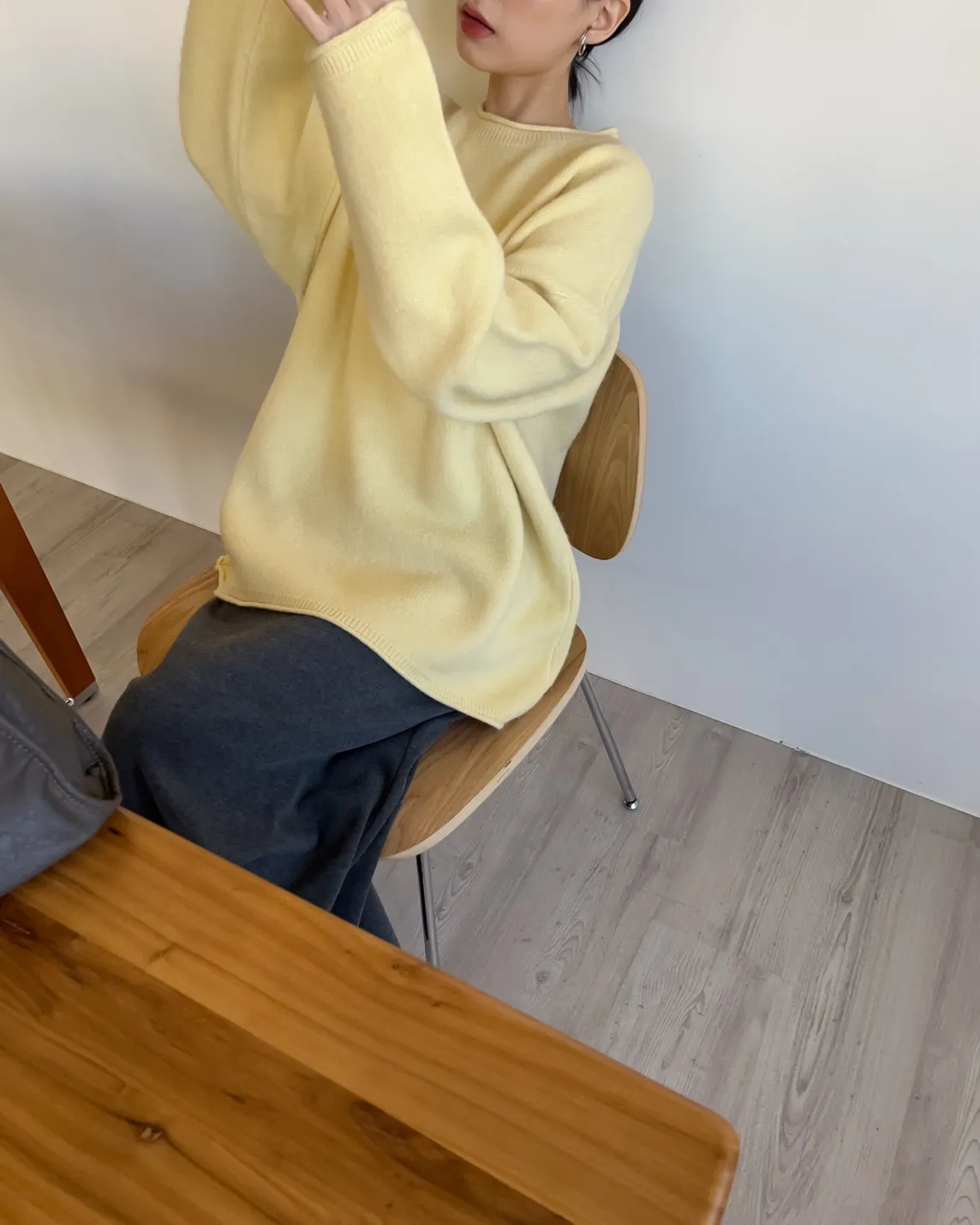 寬鬆落肩 Q捲邊 螺紋滾邊 微厚度針織
