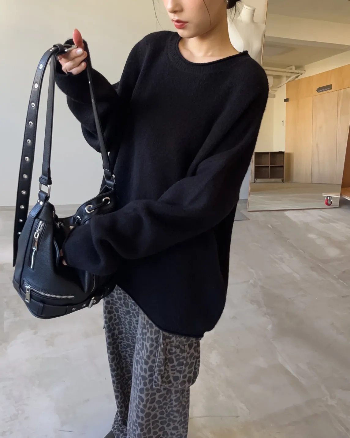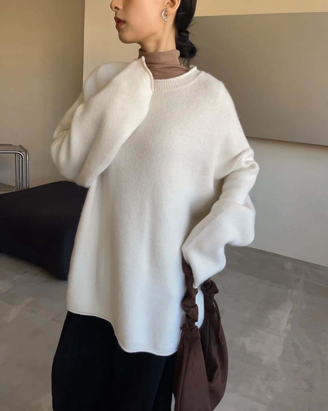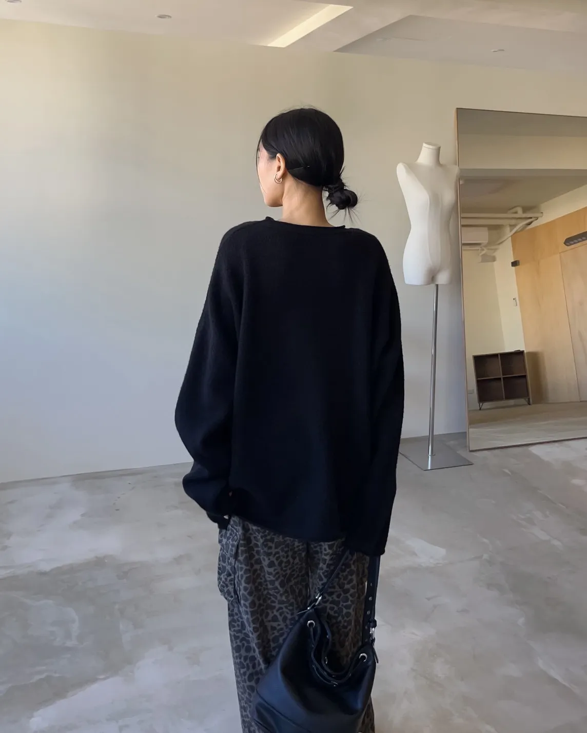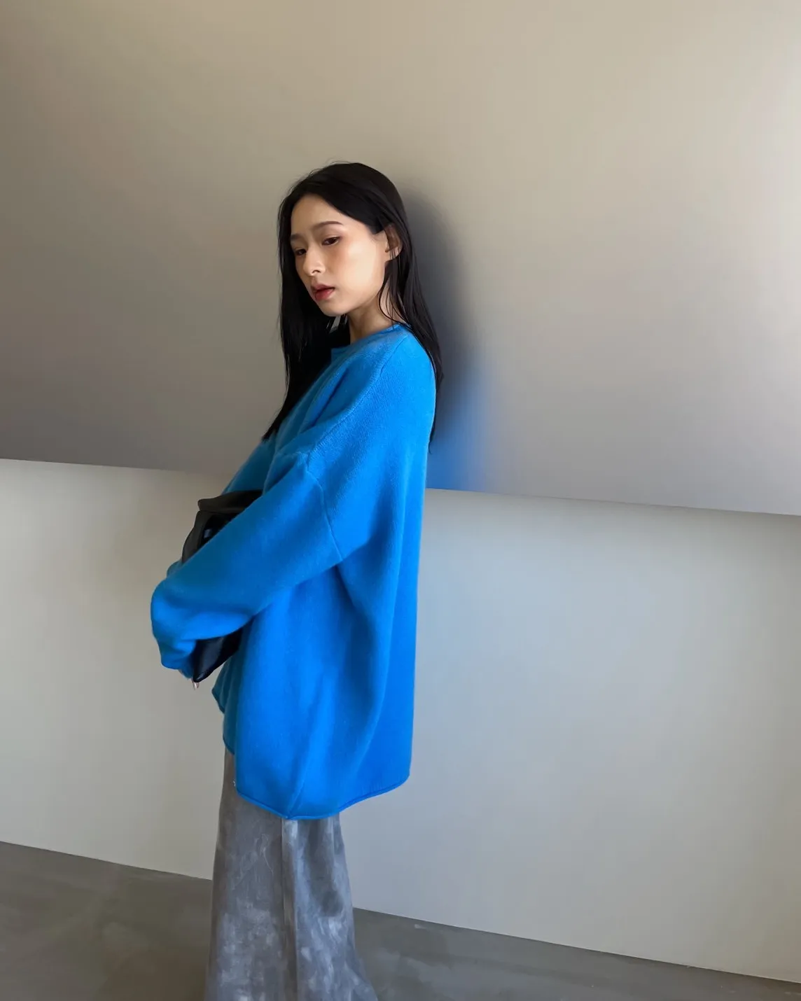 寬鬆落肩 Q捲邊 螺紋滾邊 微厚度針織