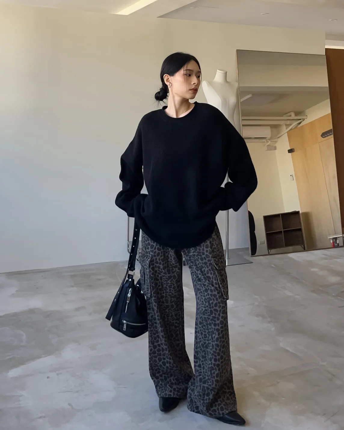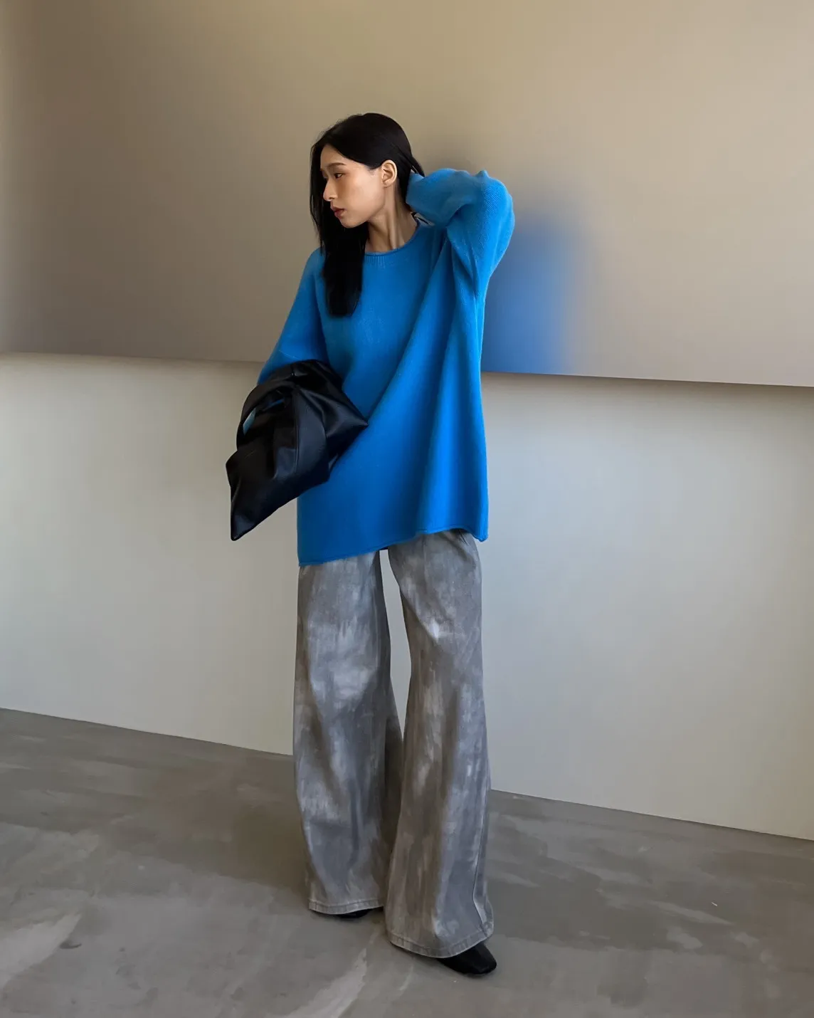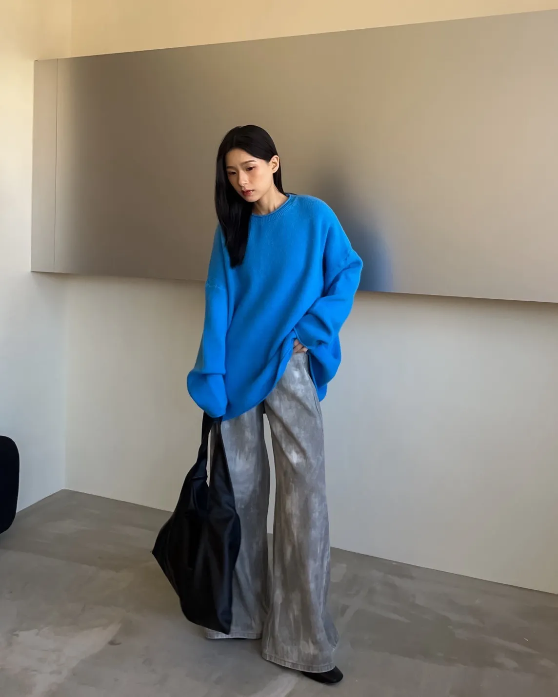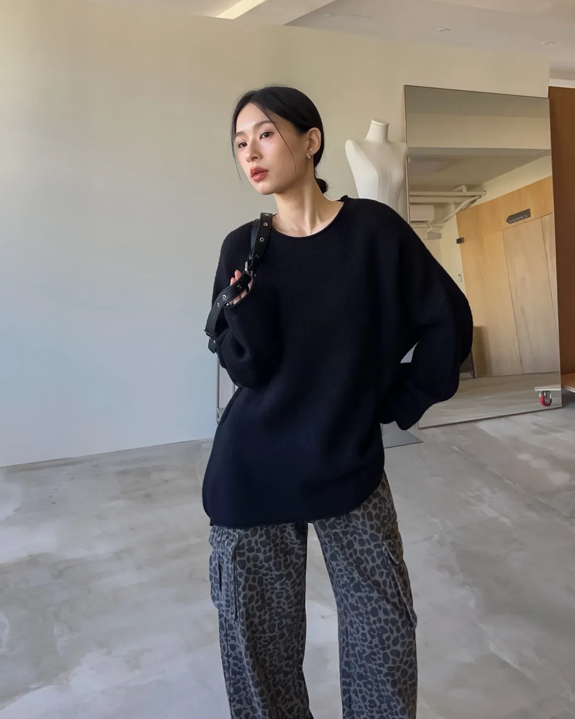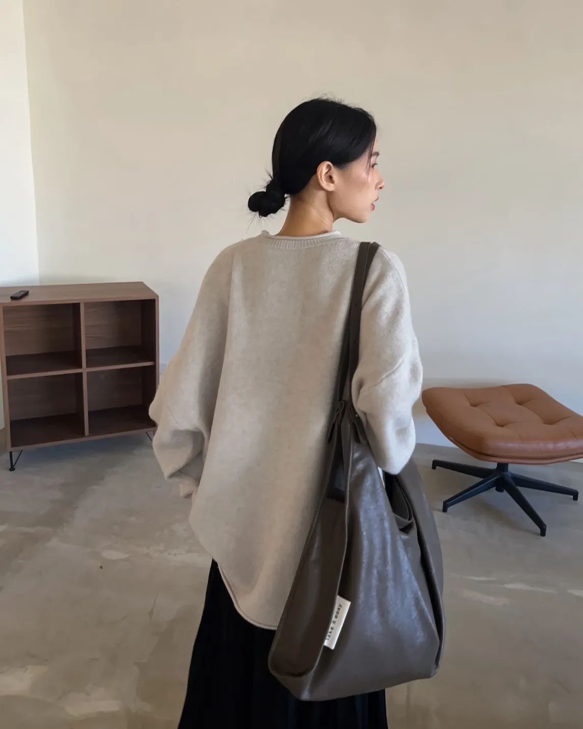 寬鬆落肩 Q捲邊 螺紋滾邊 微厚度針織