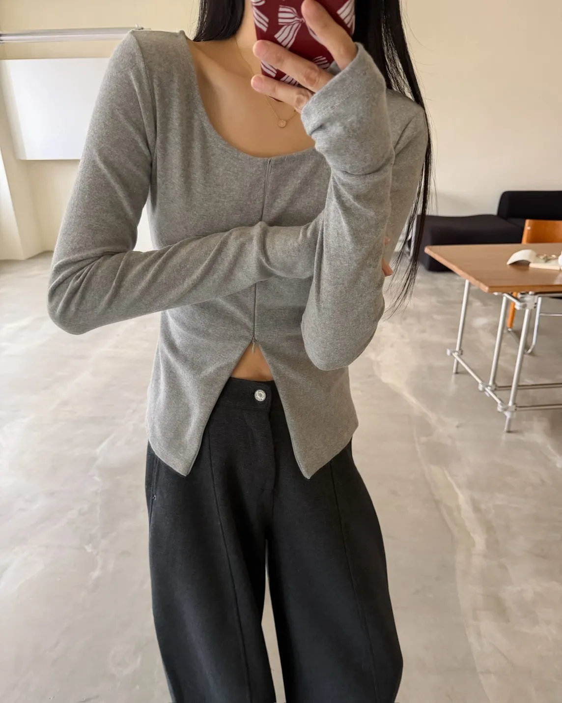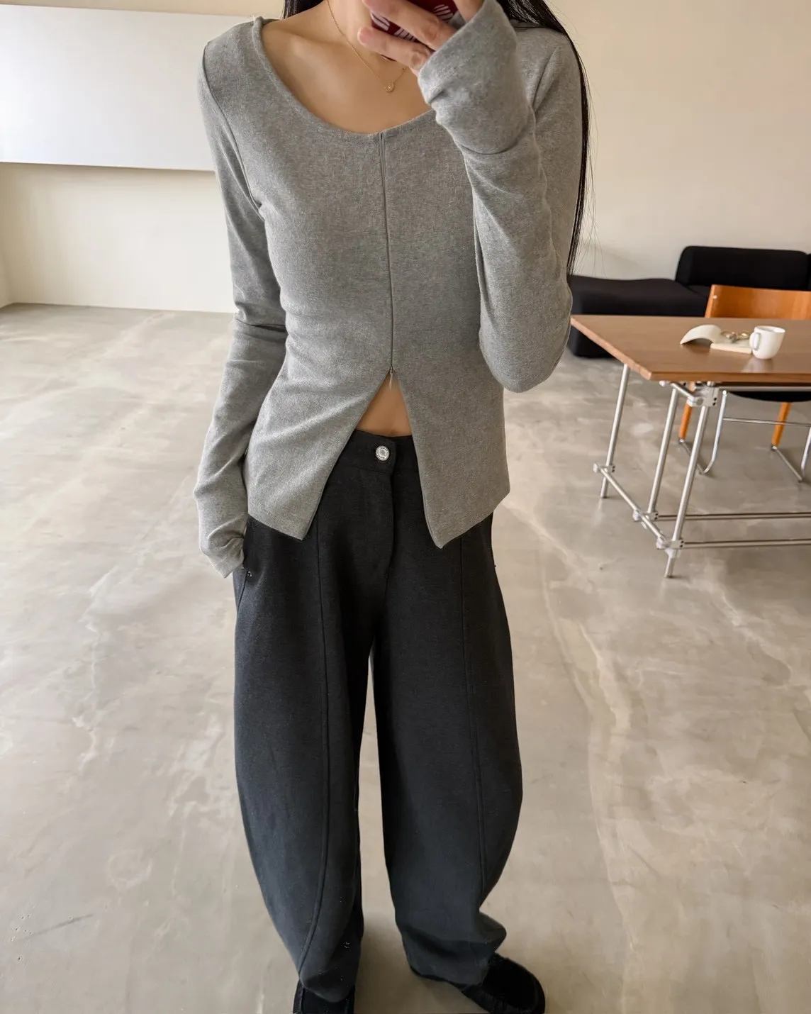 Y0030自己開衩拉鍊磨毛露趾T(白/灰/黑)