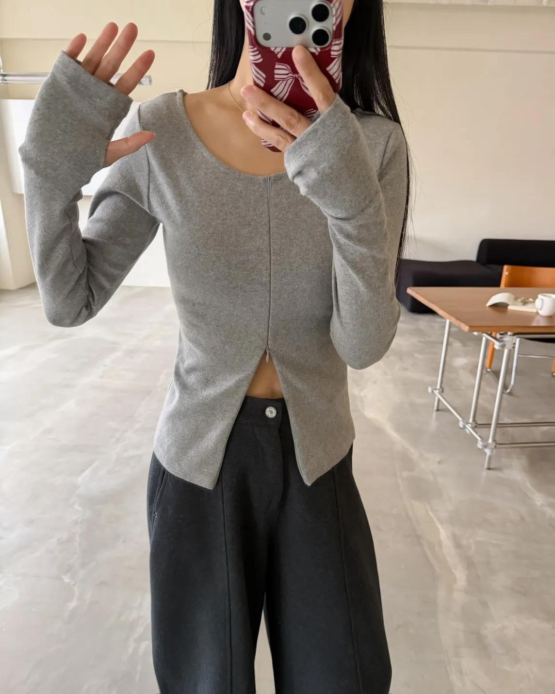 磨毛 合身 袖子很長 露拇指開口 前拉鍊可開衩