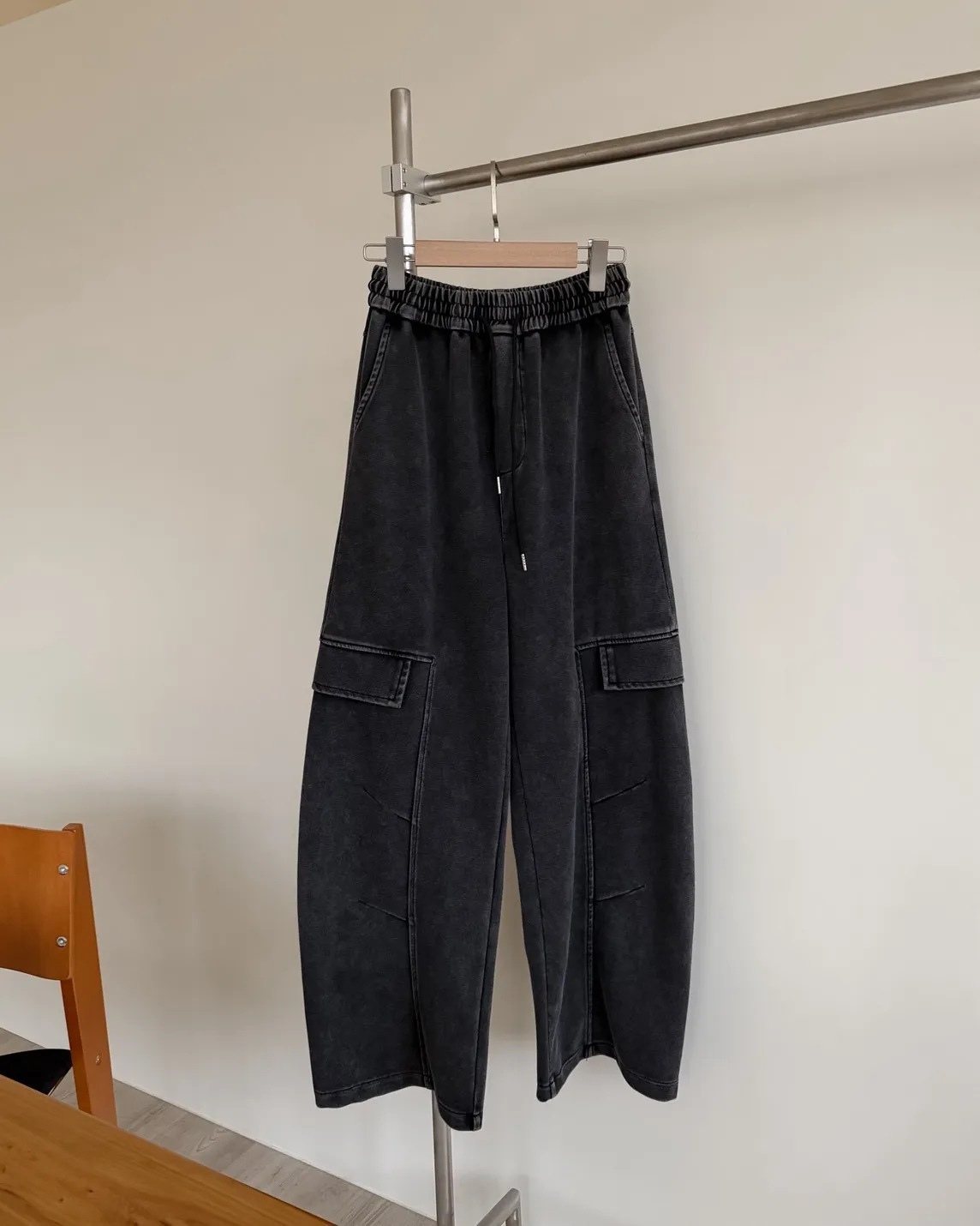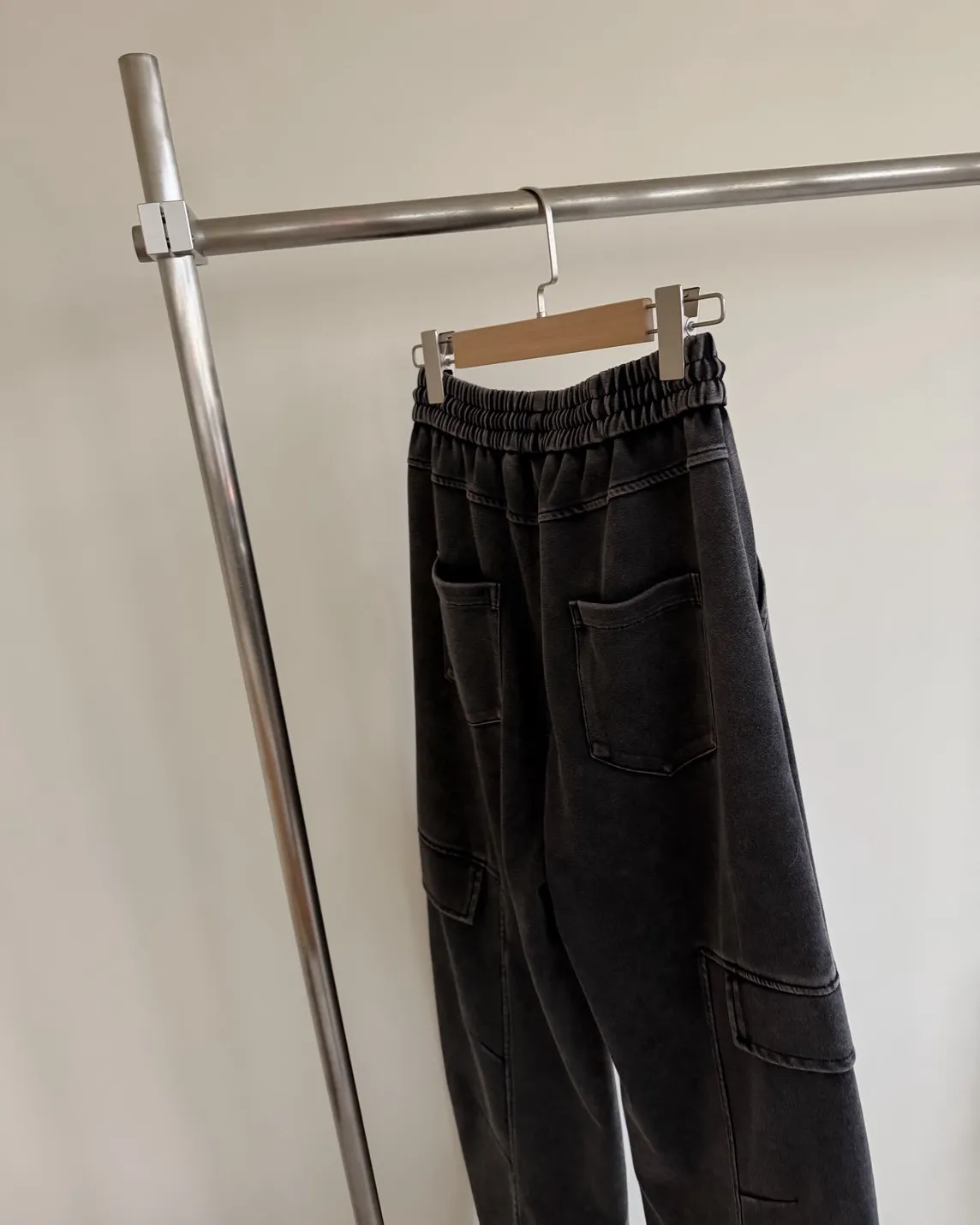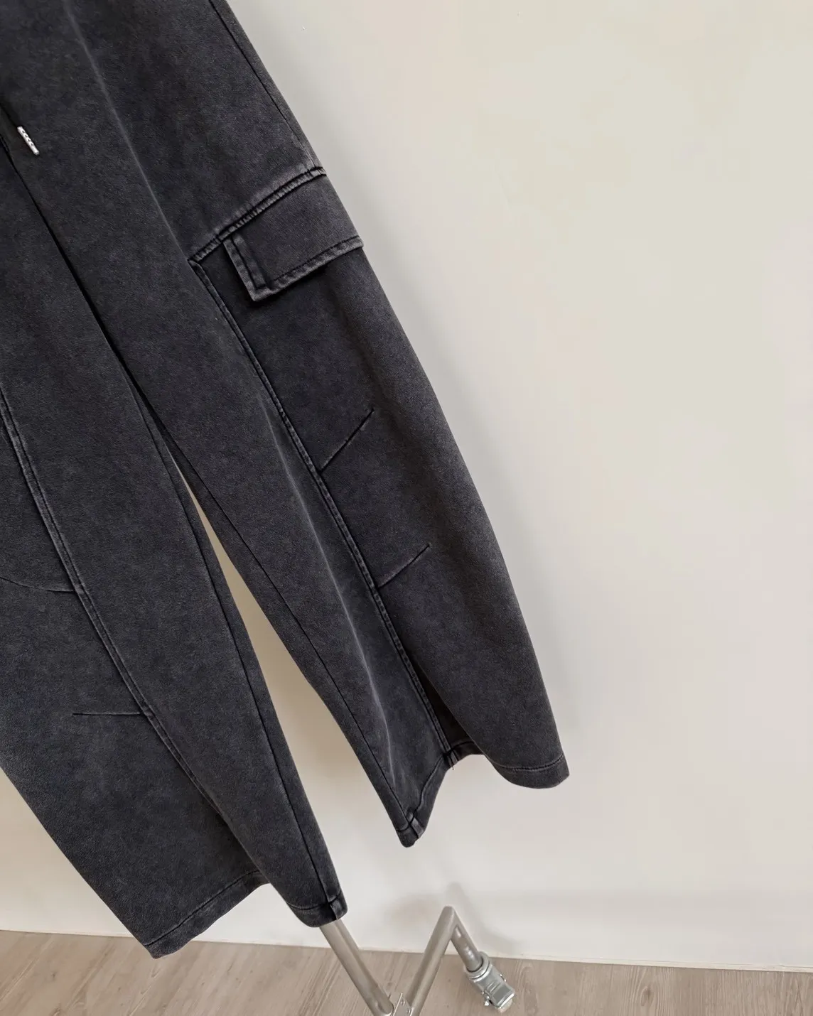 X0010高個限定_煙灰色工裝彎刀落地棉褲
