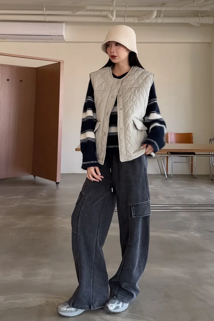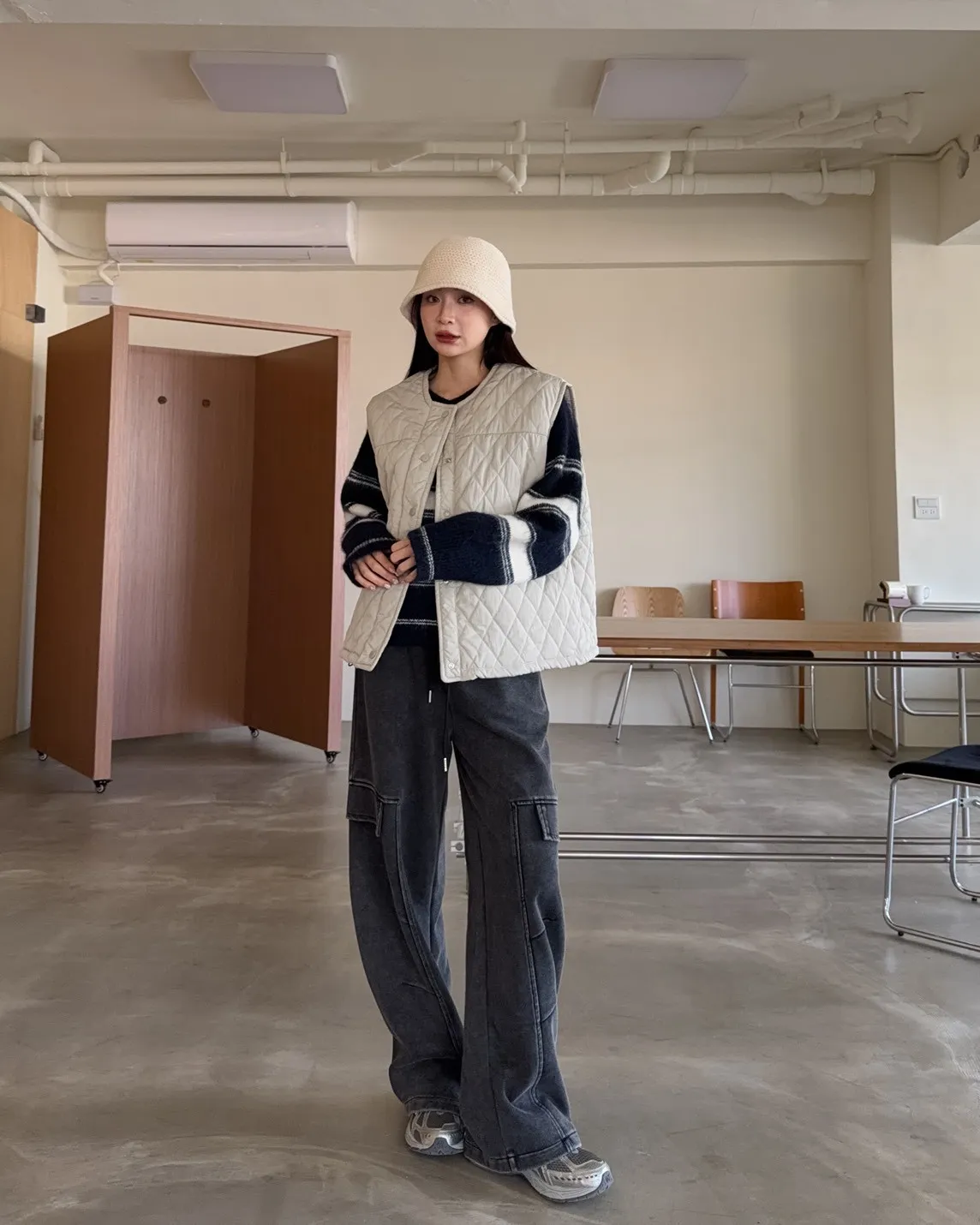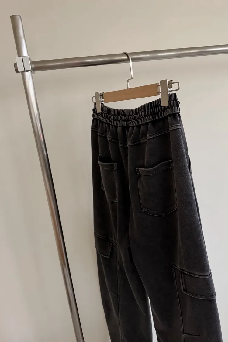 X0010高個限定_煙灰色工裝彎刀落地棉褲
