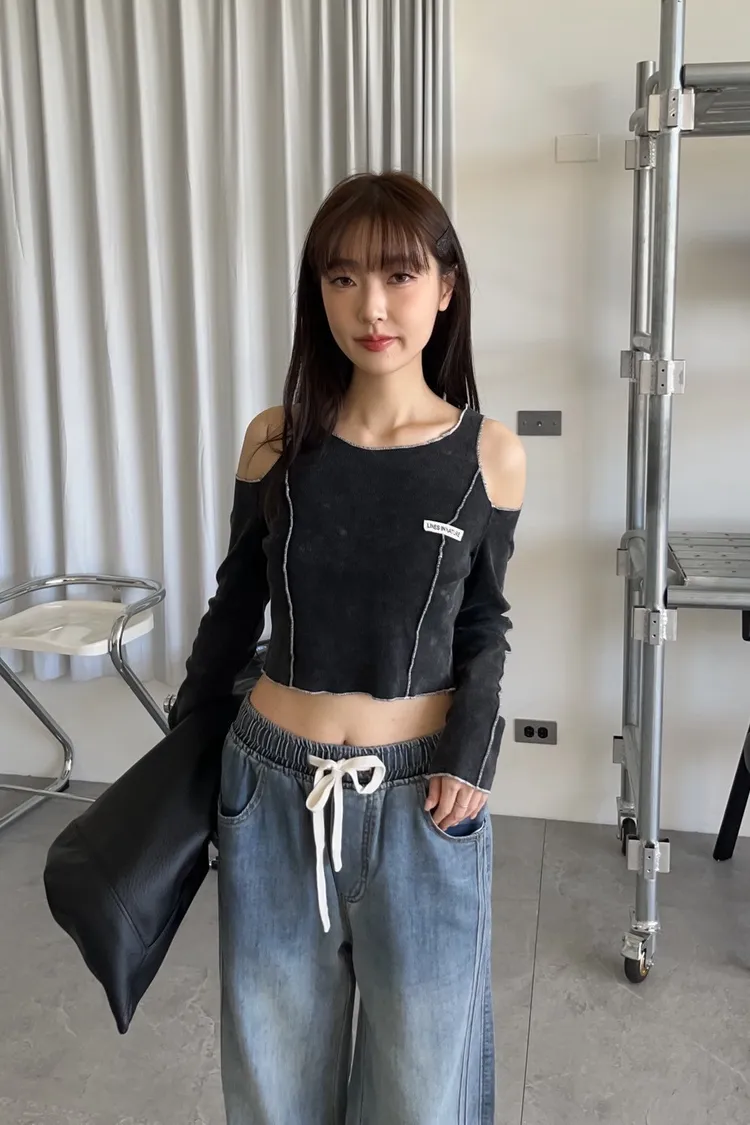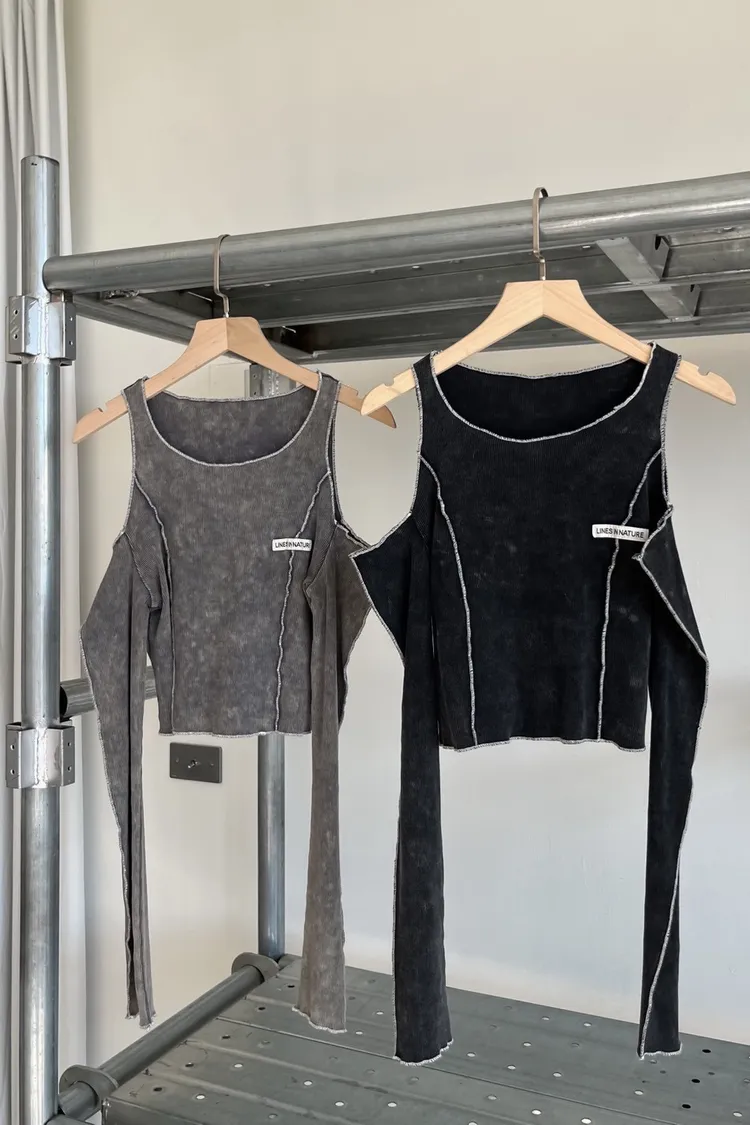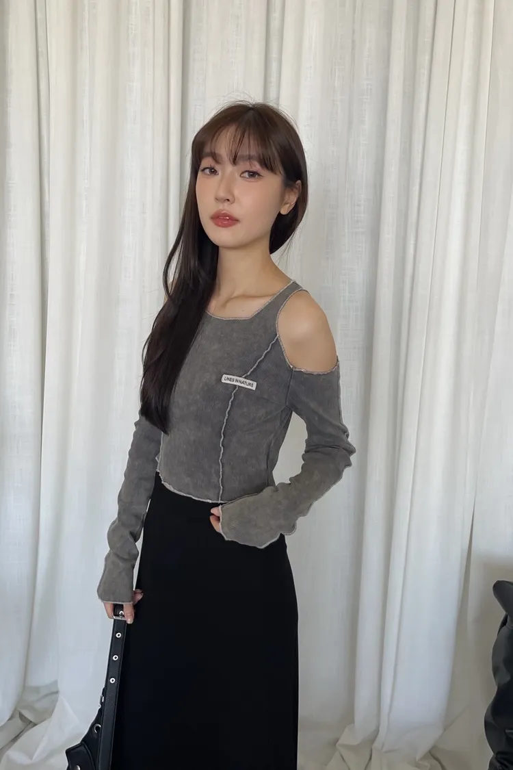 U0061酷妹露肩車線上衣(淺灰/深灰)(售完不補)