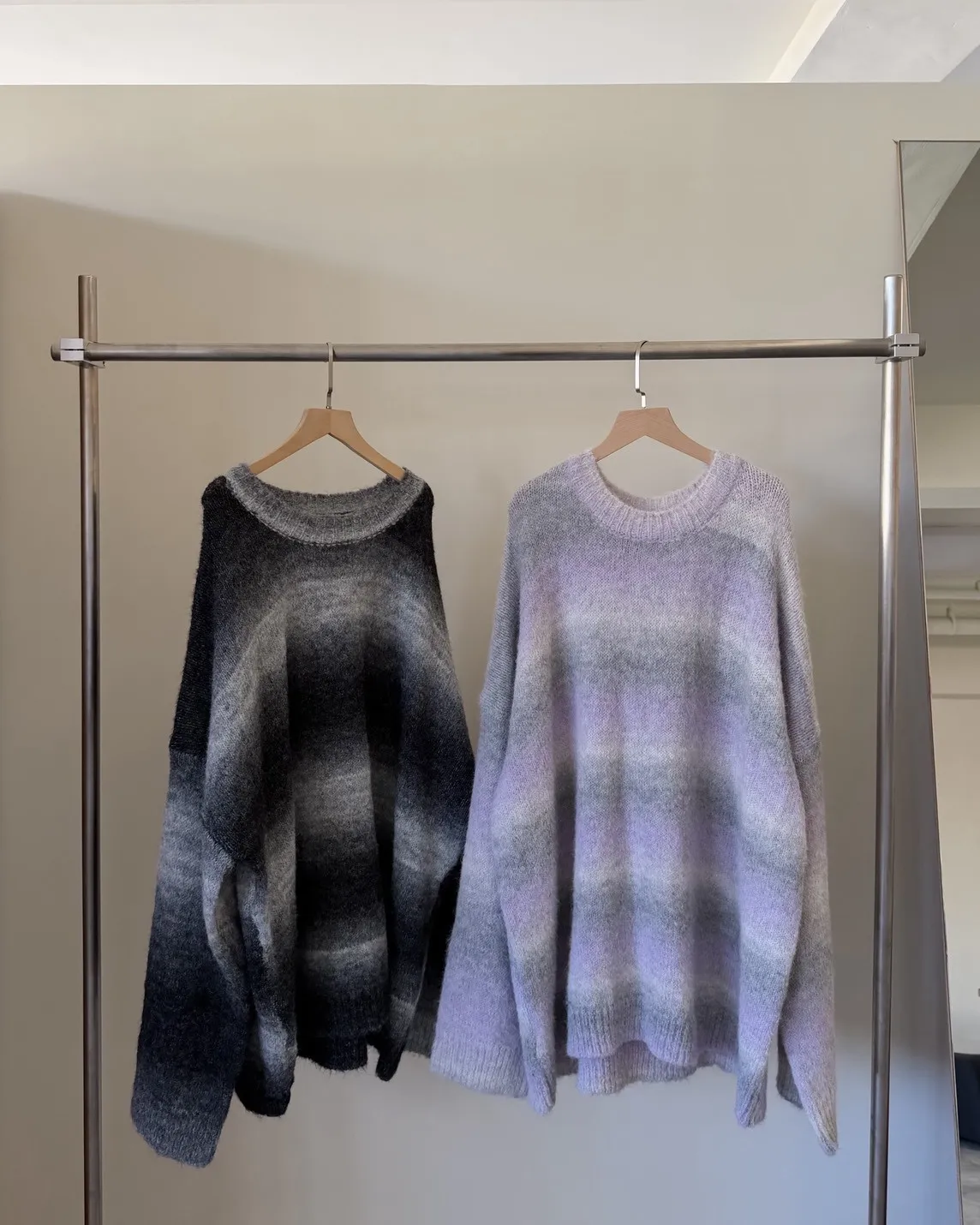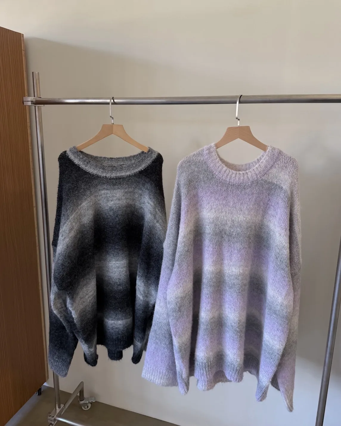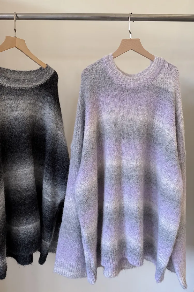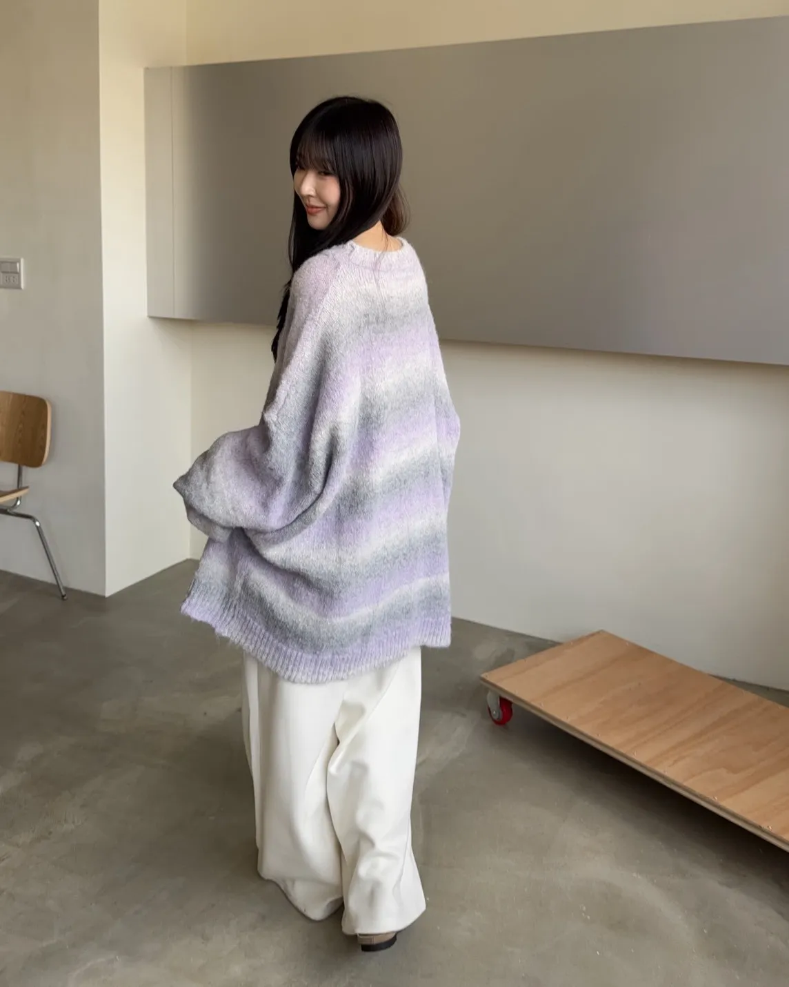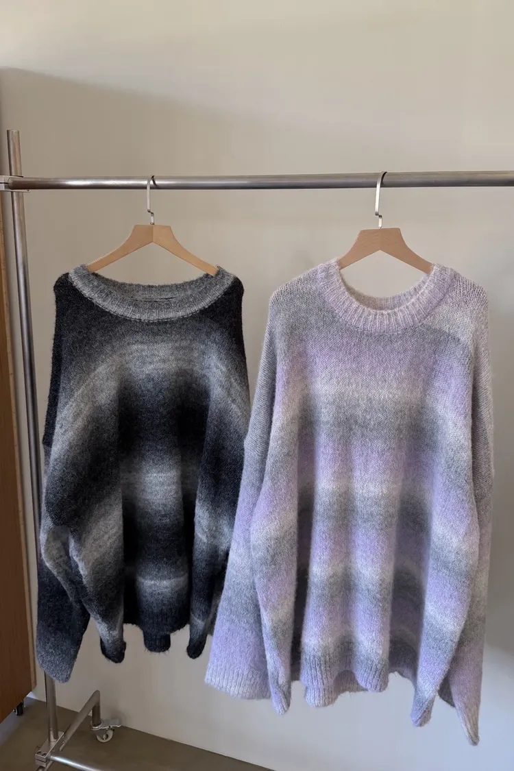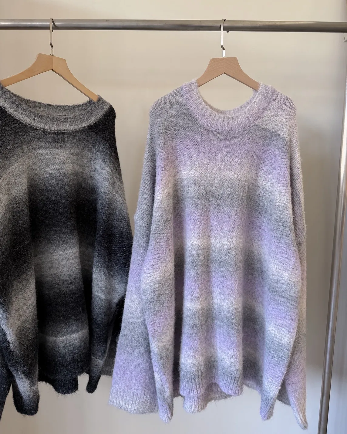 X0032夢幻漸層寬橫條大毛衣(紫/黑)