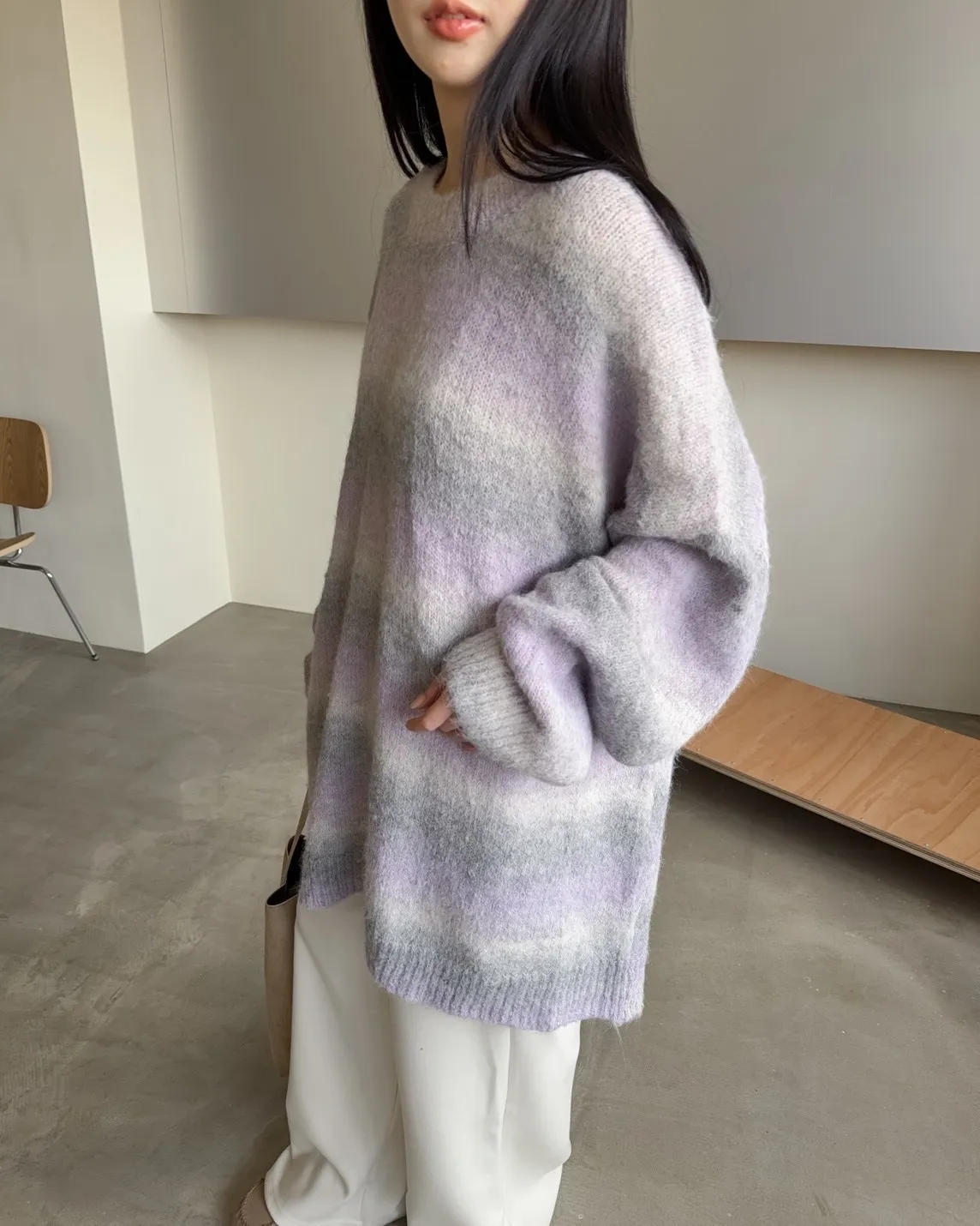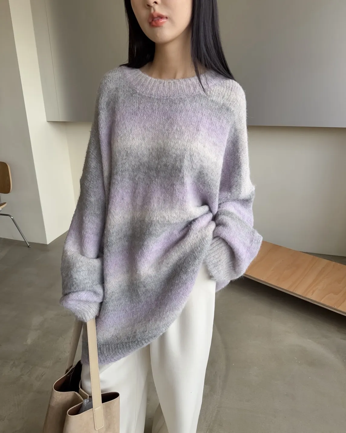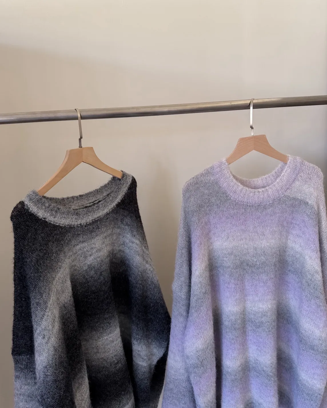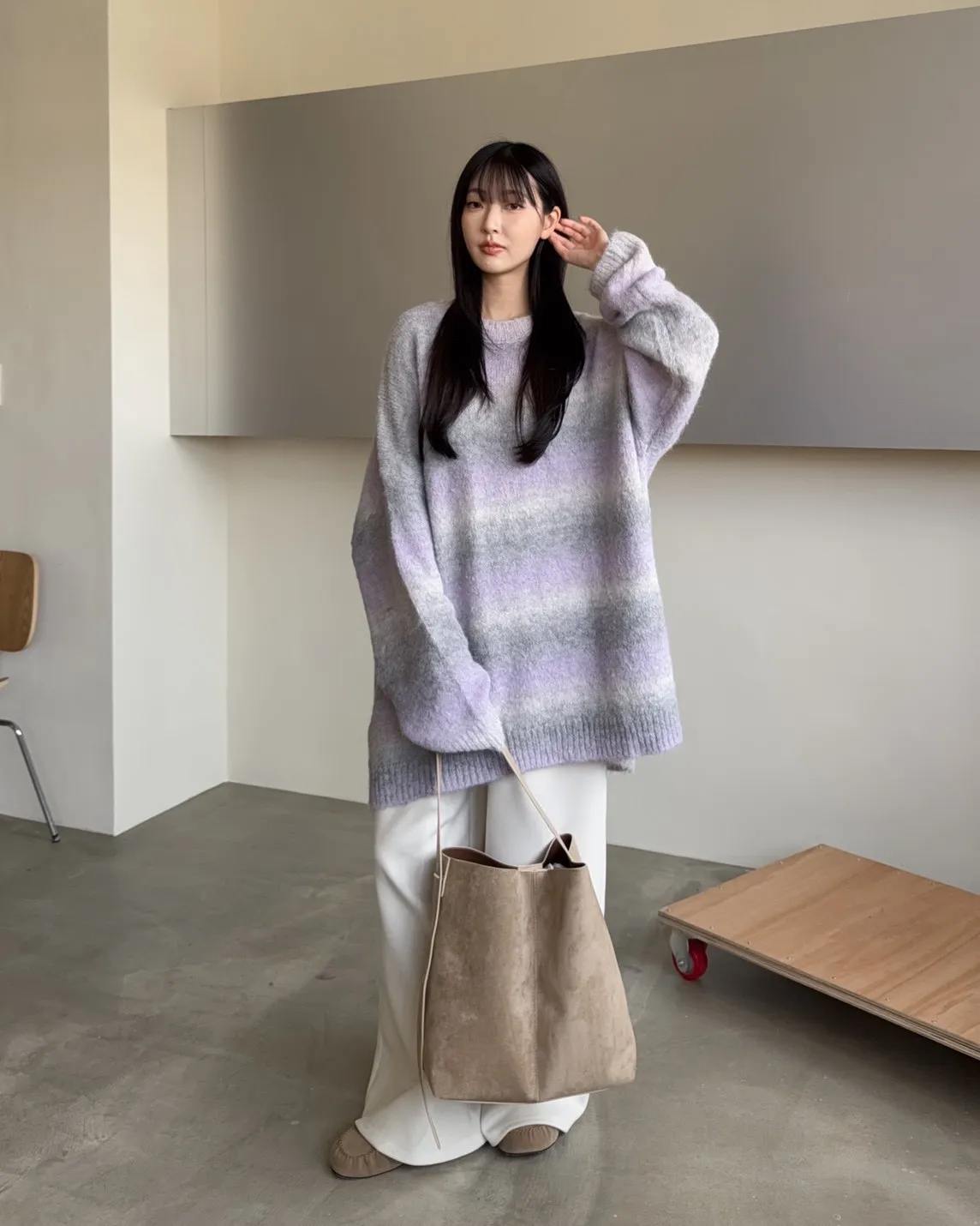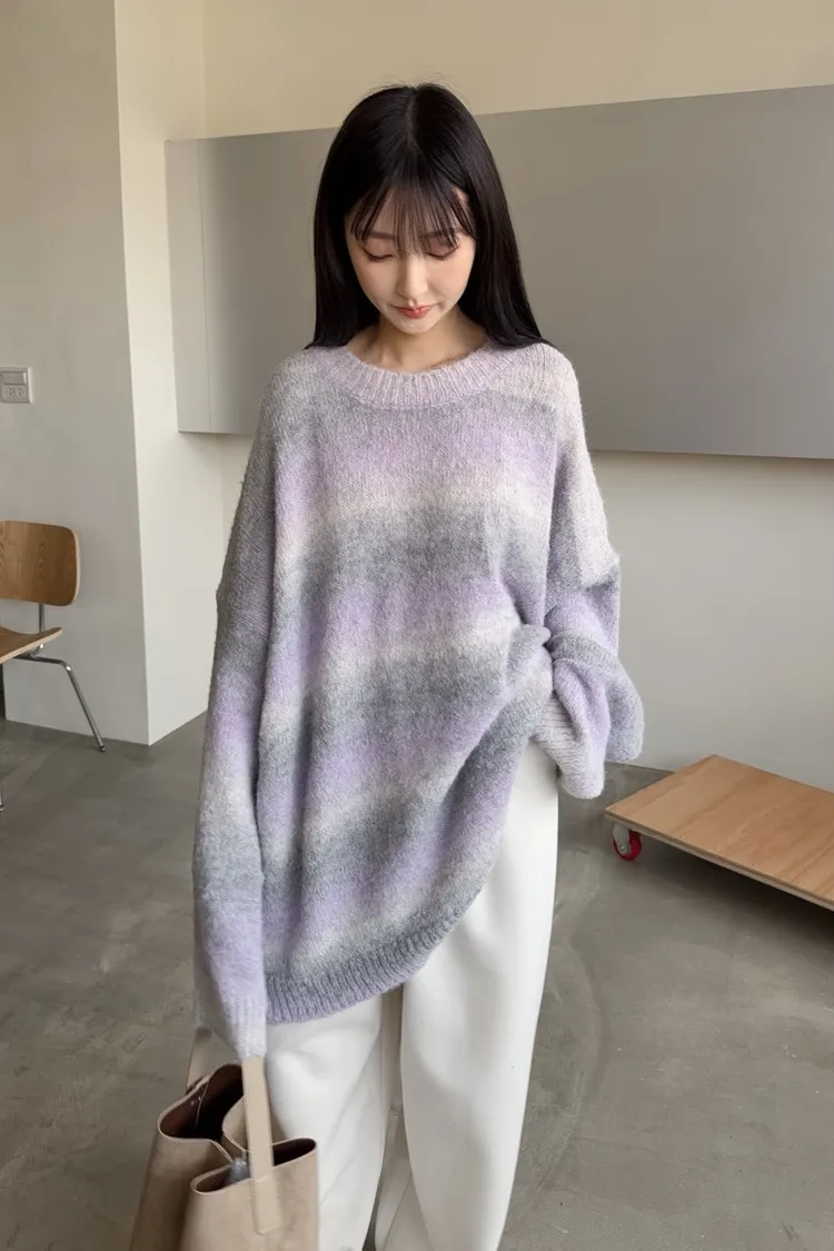 X0032夢幻漸層寬橫條大毛衣(紫/黑)