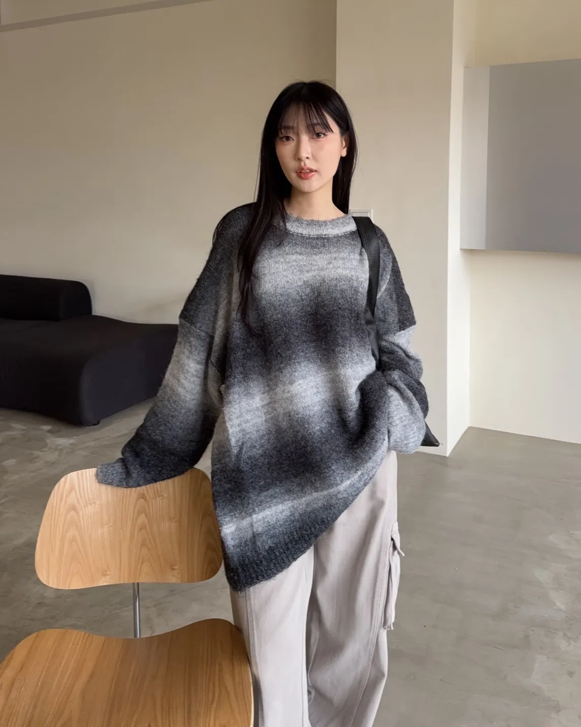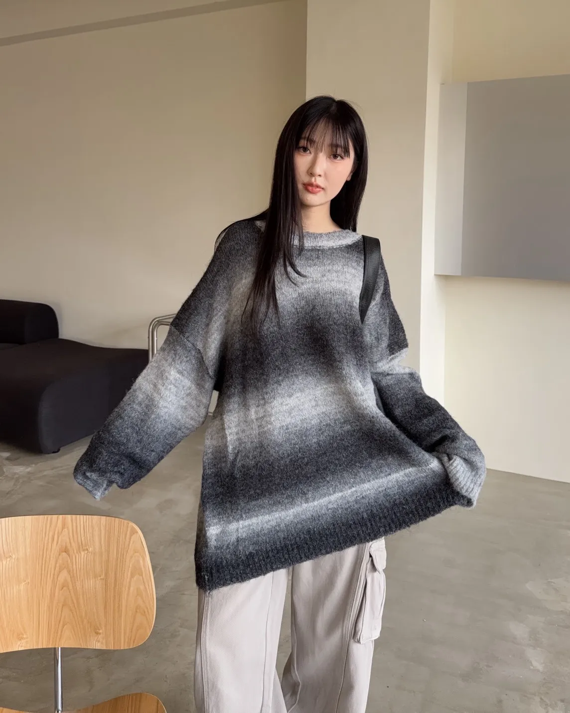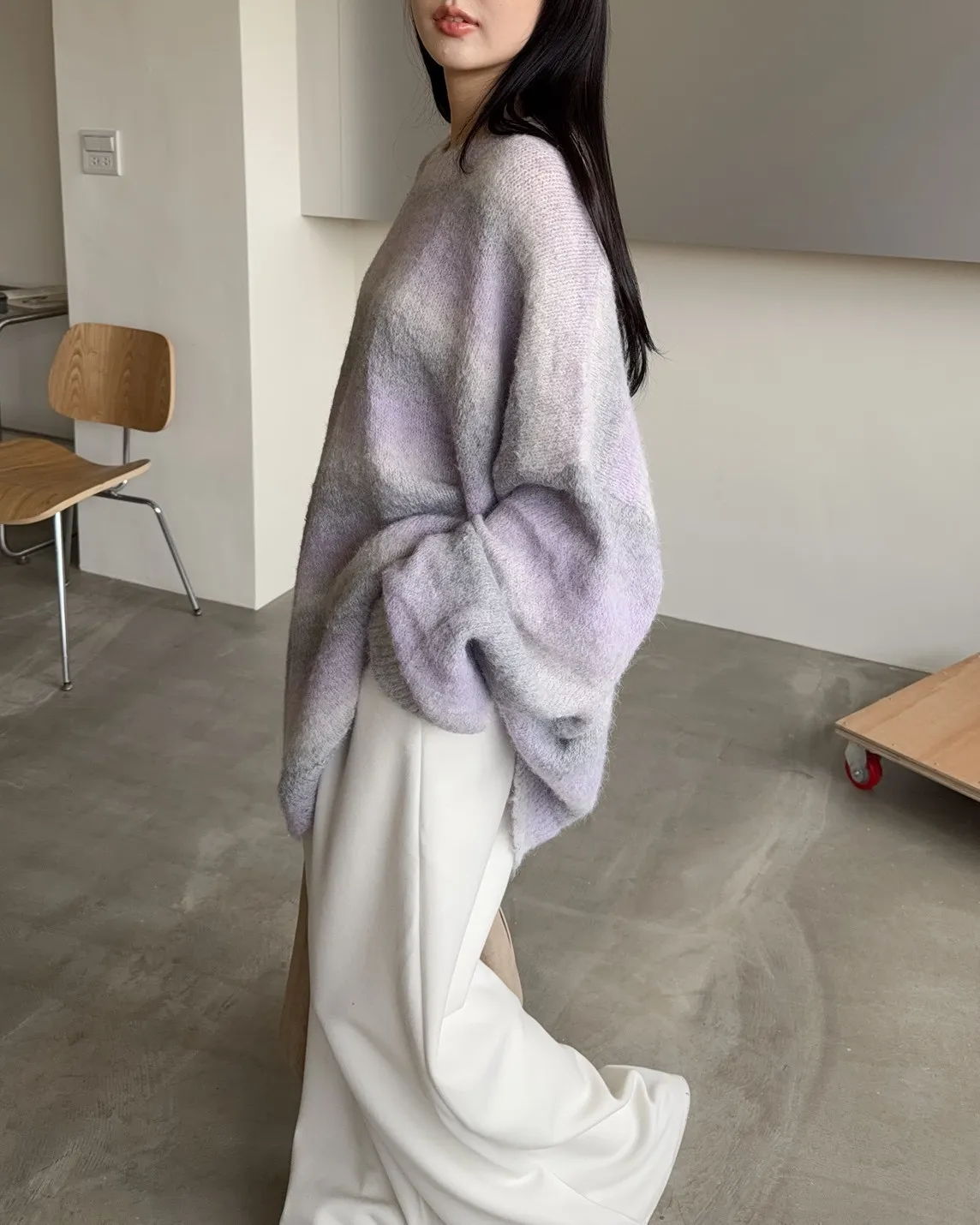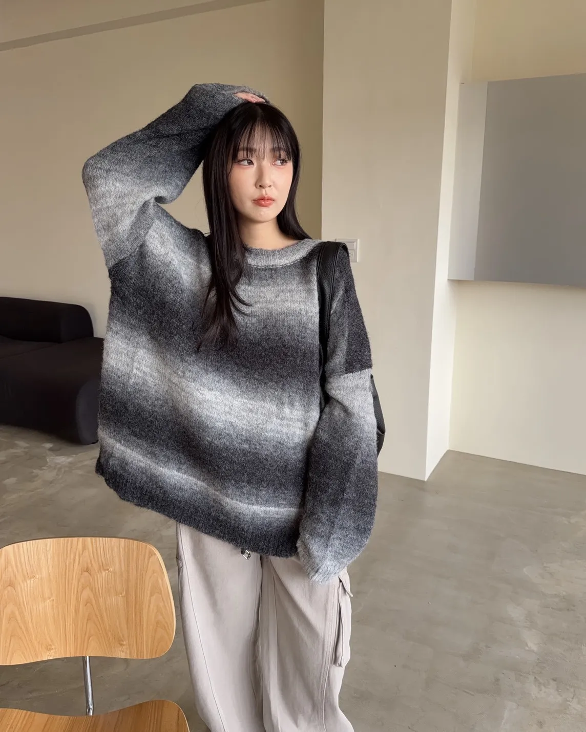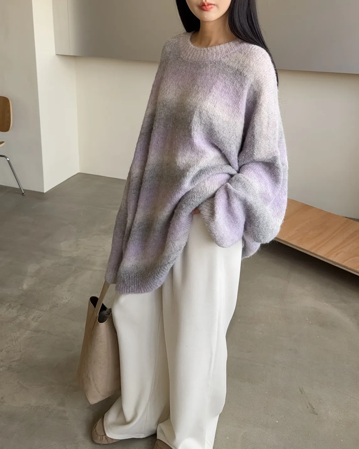 X0032夢幻漸層寬橫條大毛衣(紫/黑)