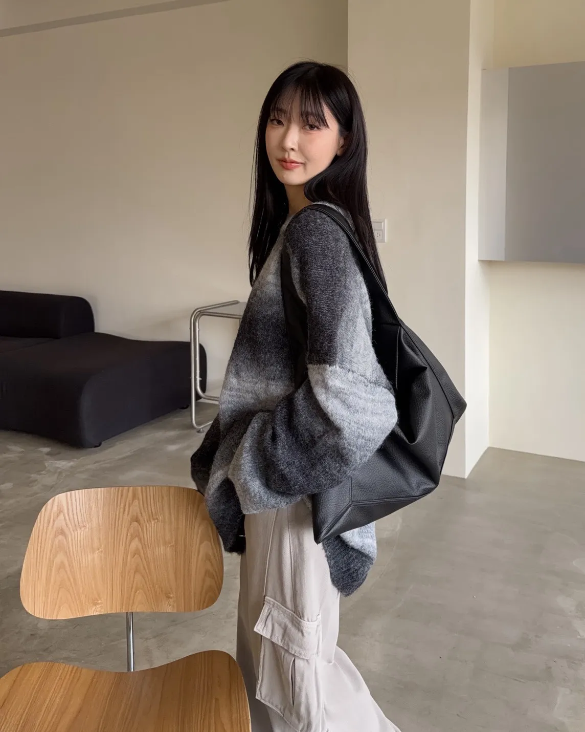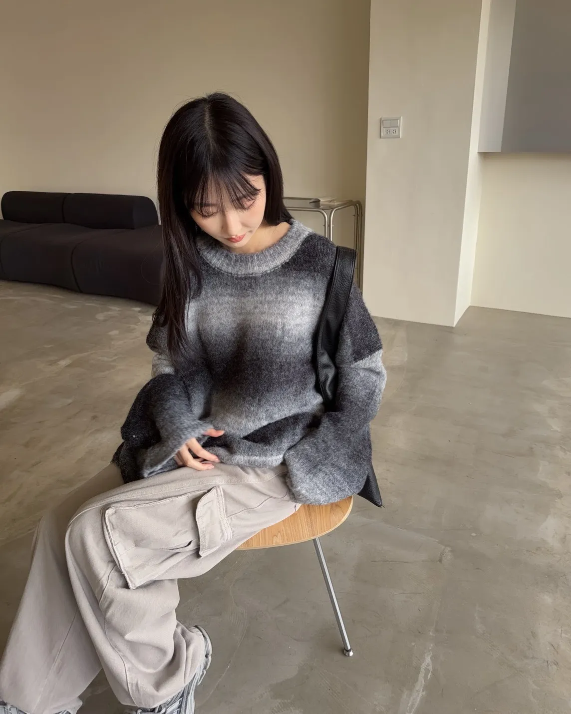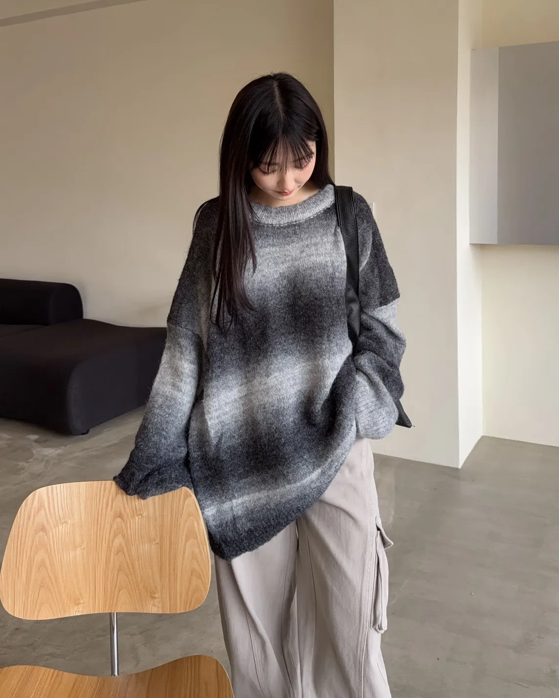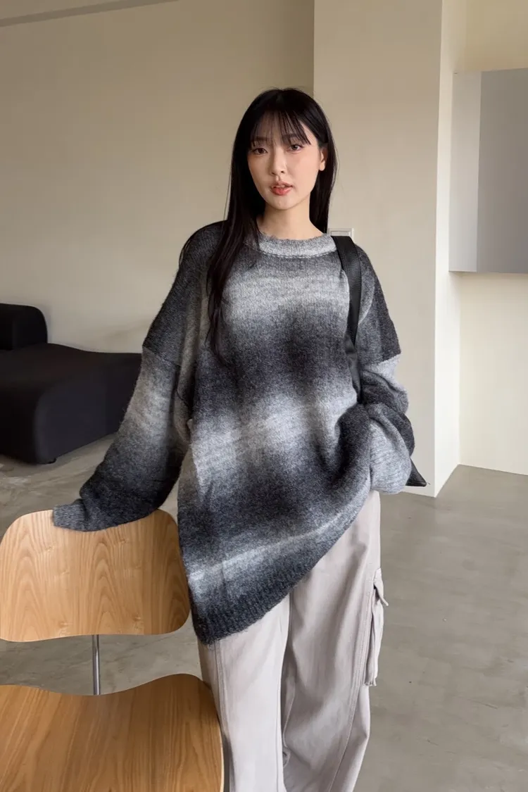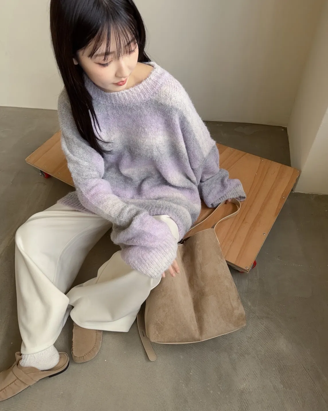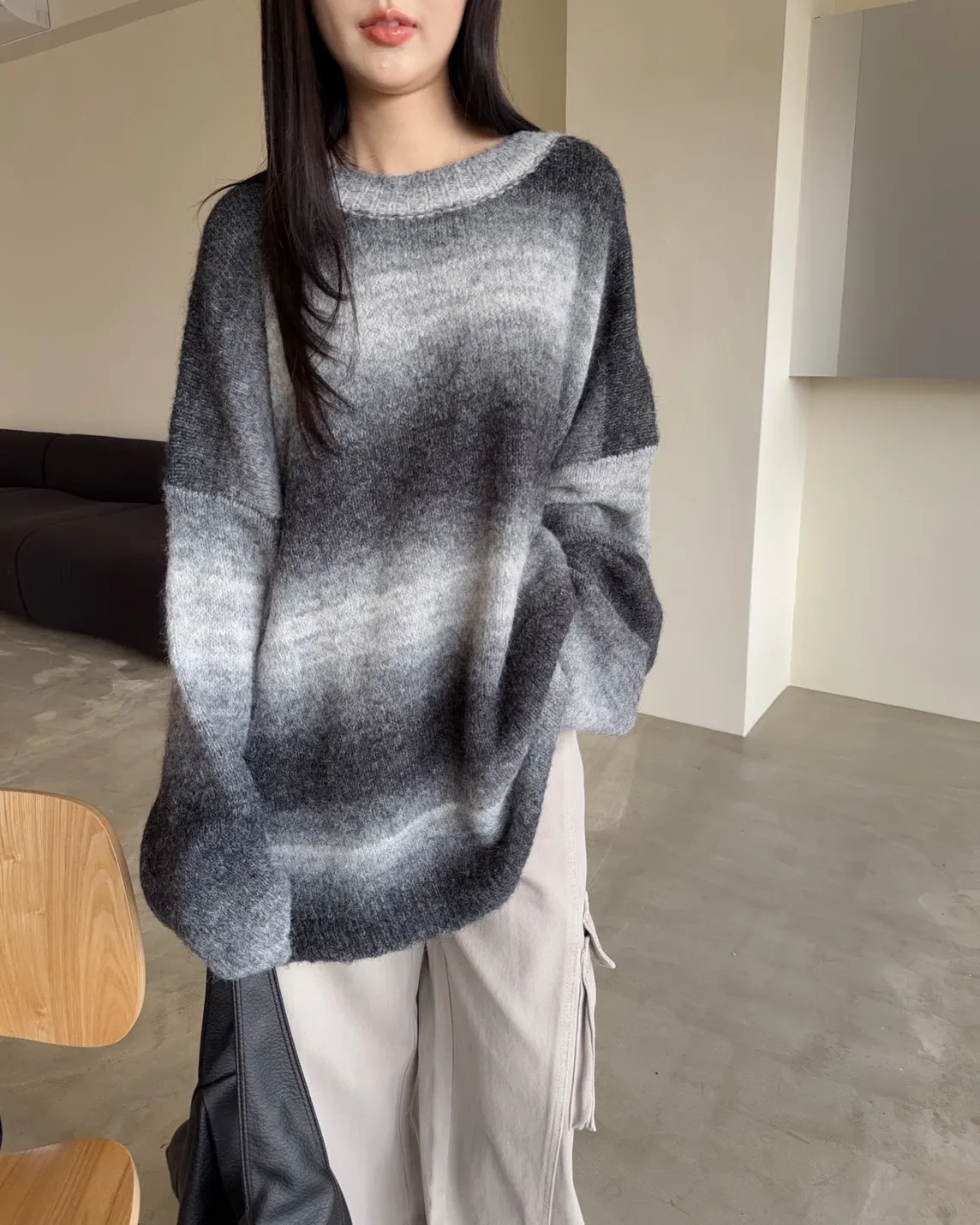 X0032夢幻漸層寬橫條大毛衣(紫/黑)
