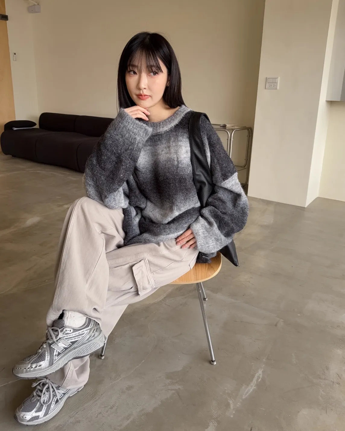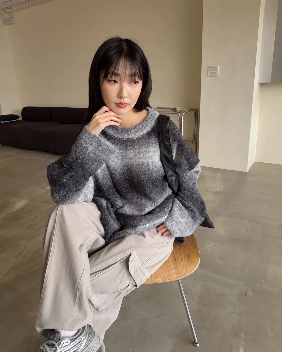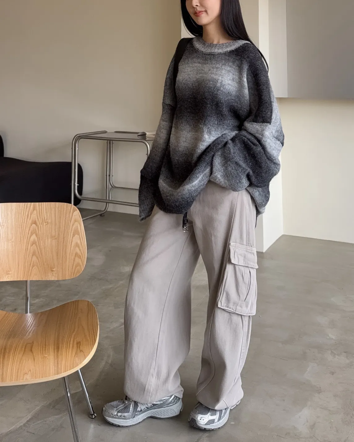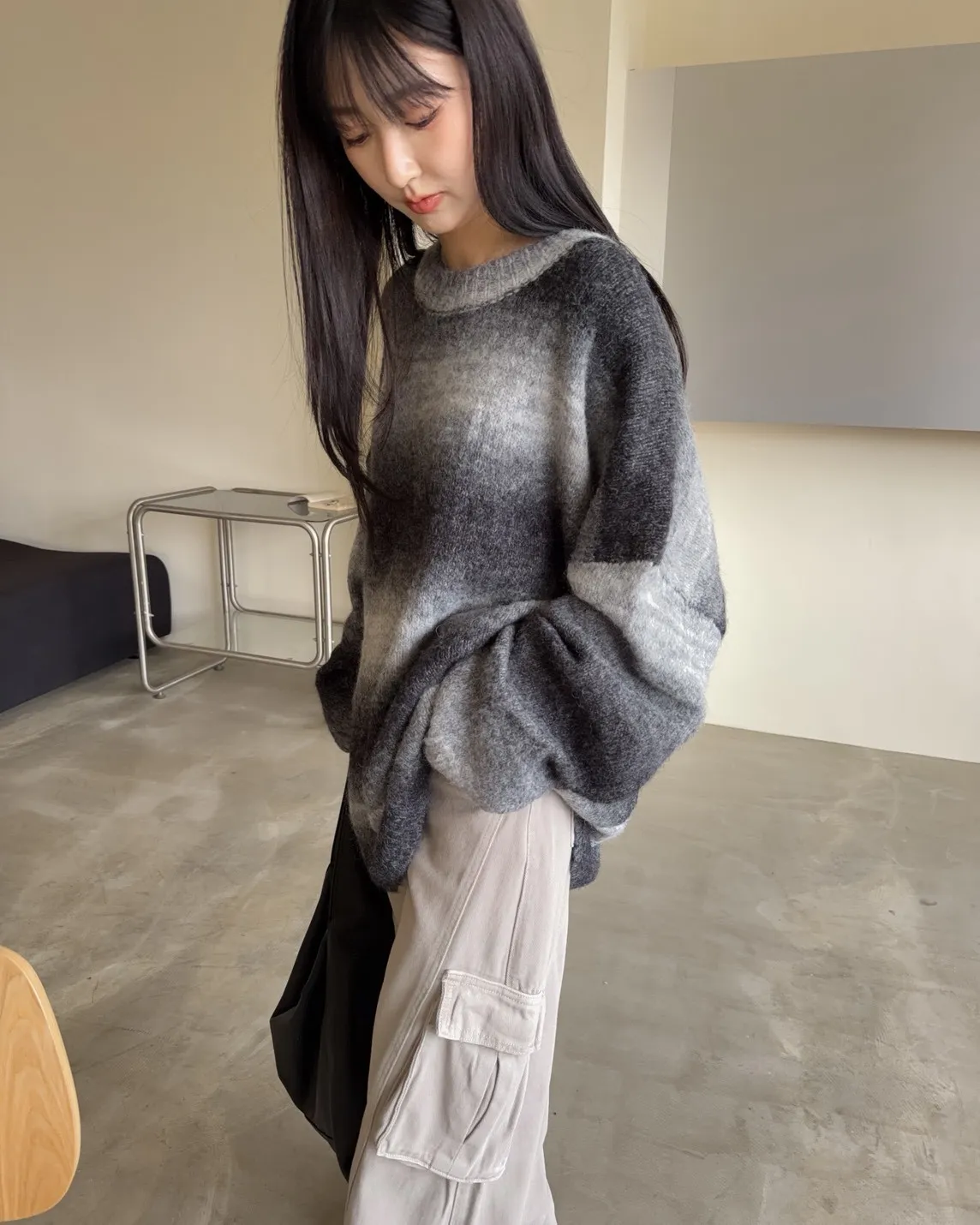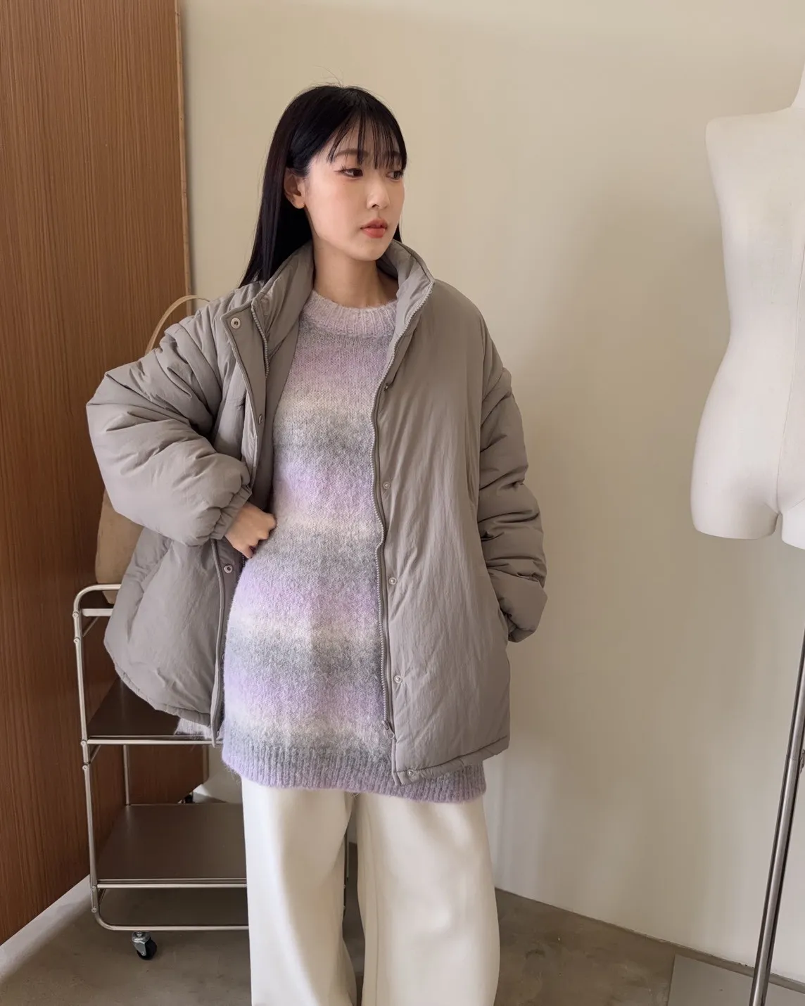 X0032夢幻漸層寬橫條大毛衣(紫/黑)