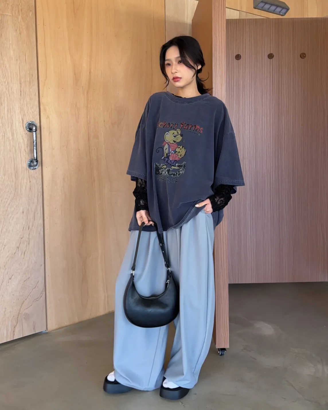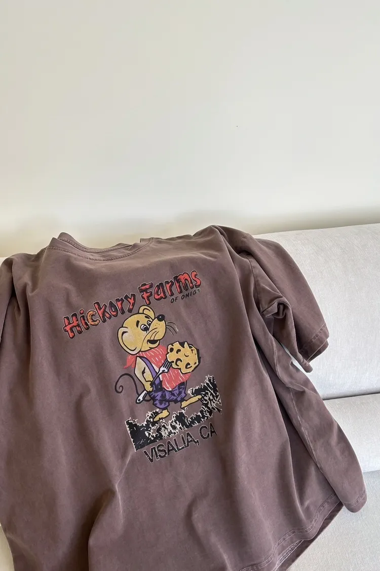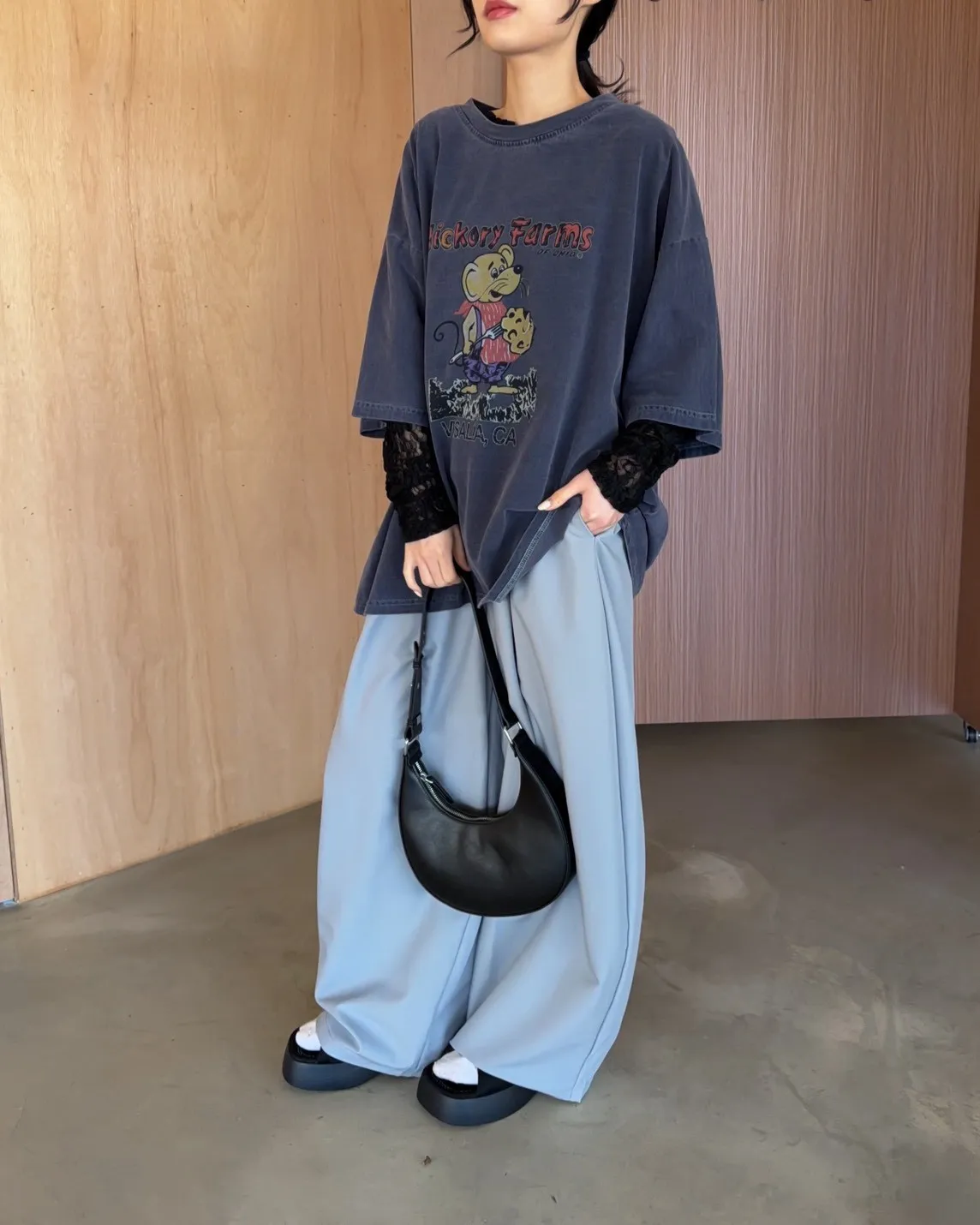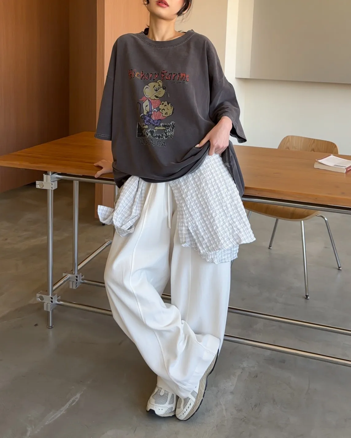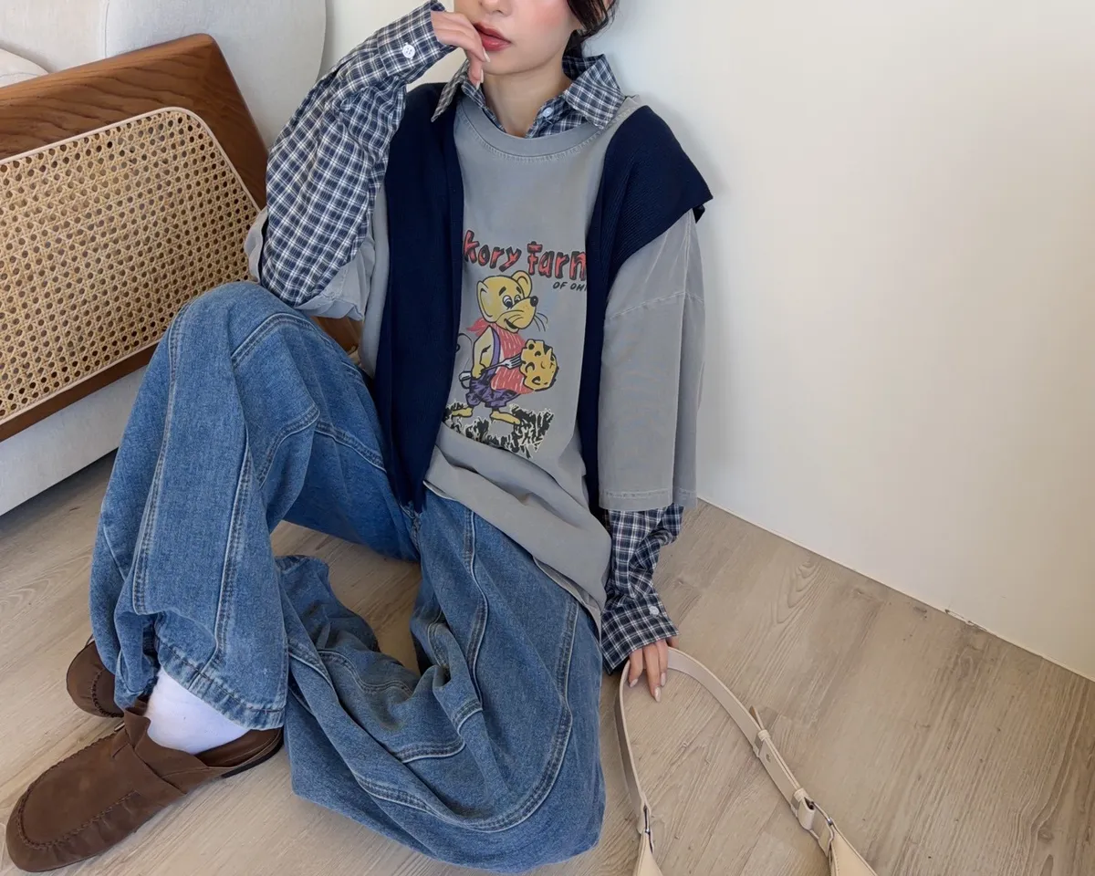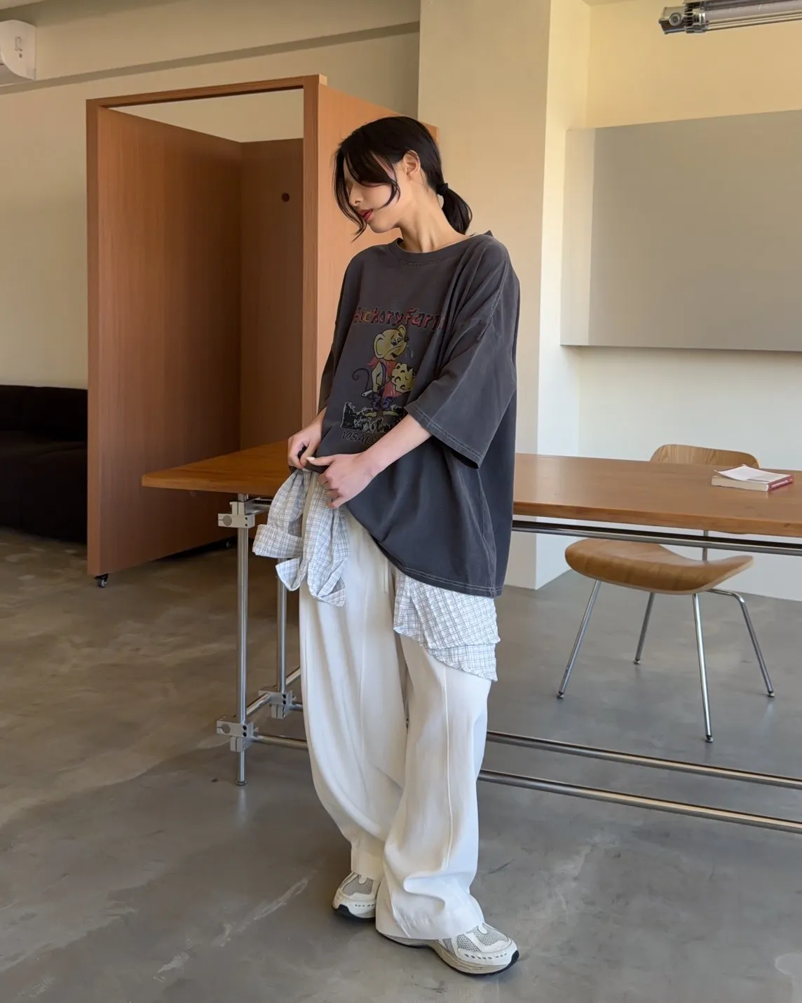 寬鬆落肩 刷白水洗做舊 老鼠起司印花