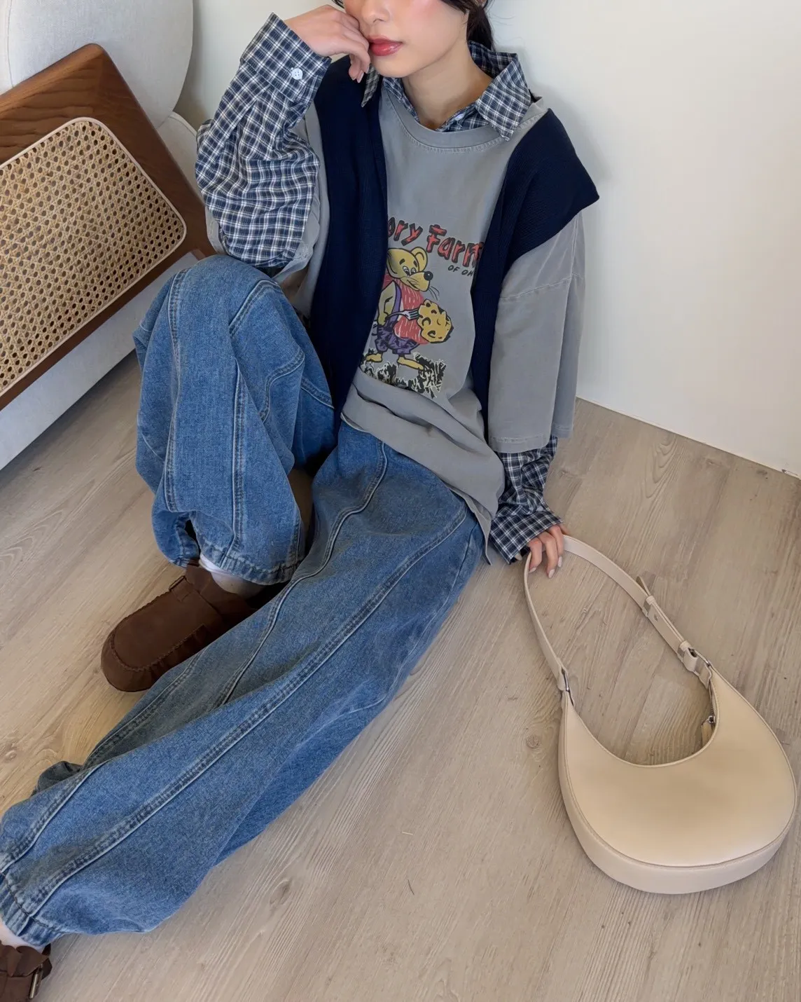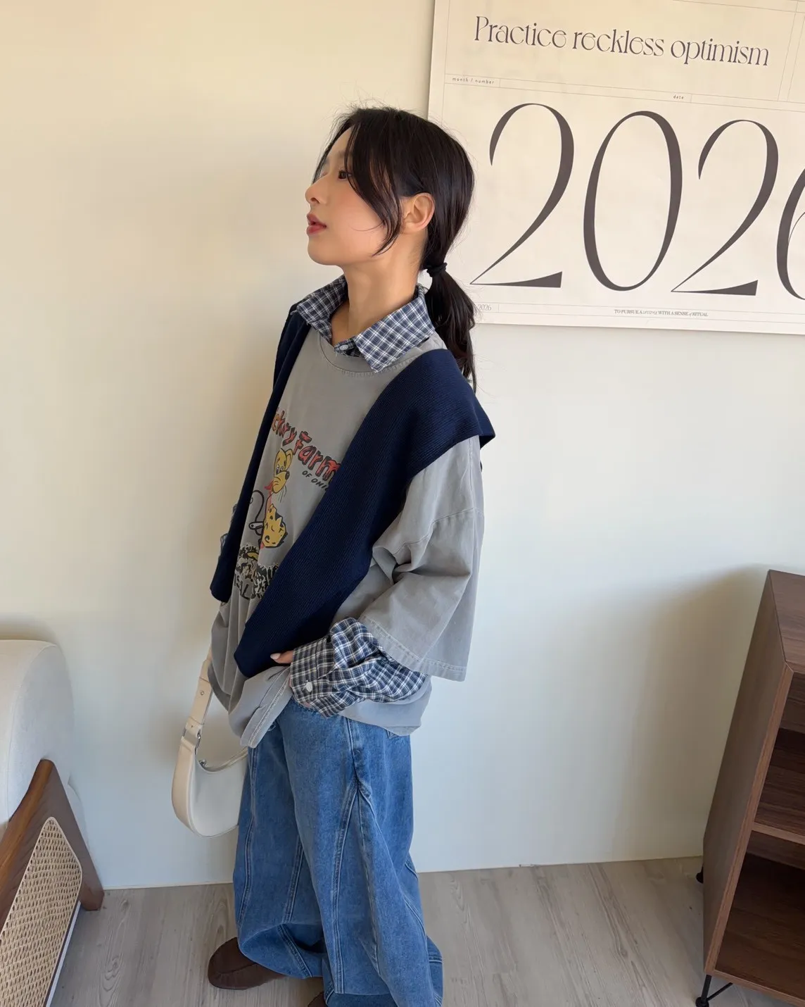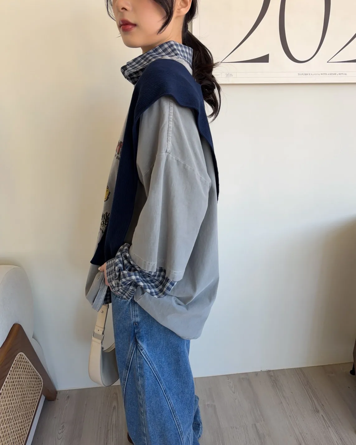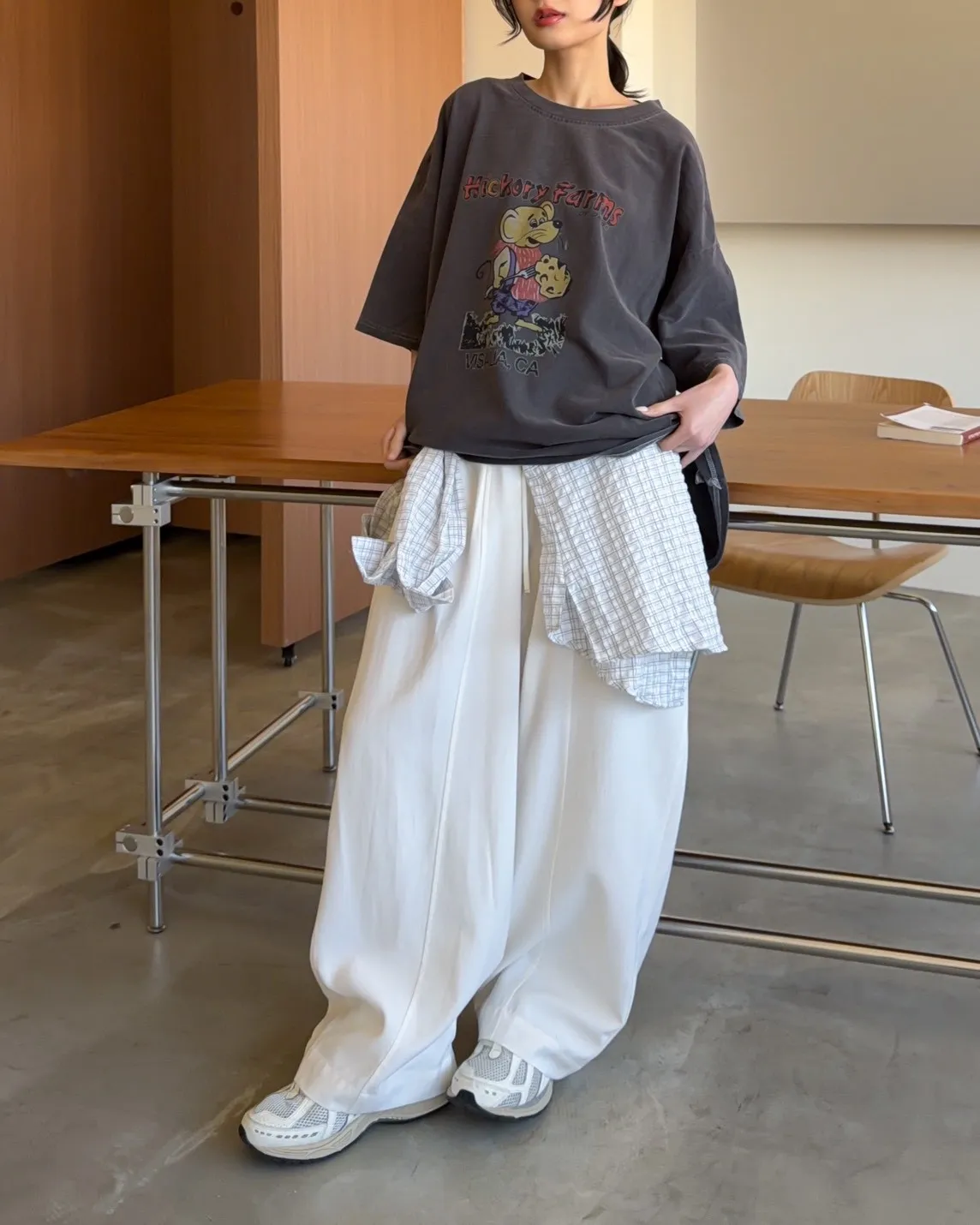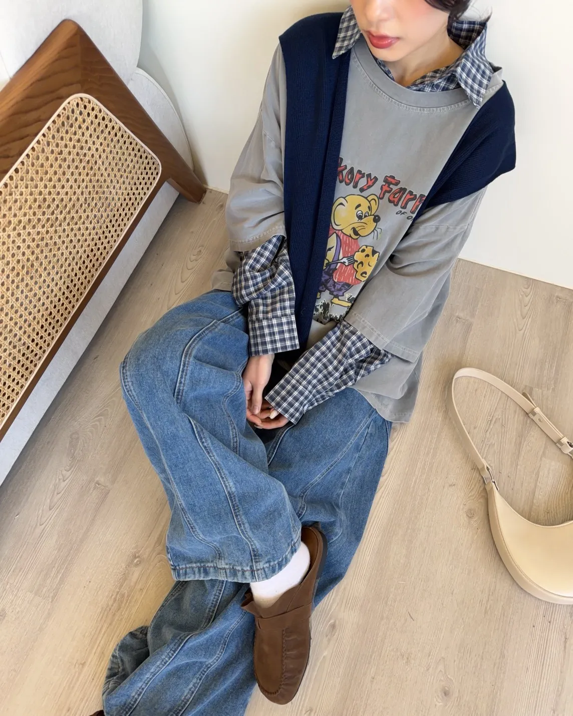 寬鬆落肩 刷白水洗做舊 老鼠起司印花