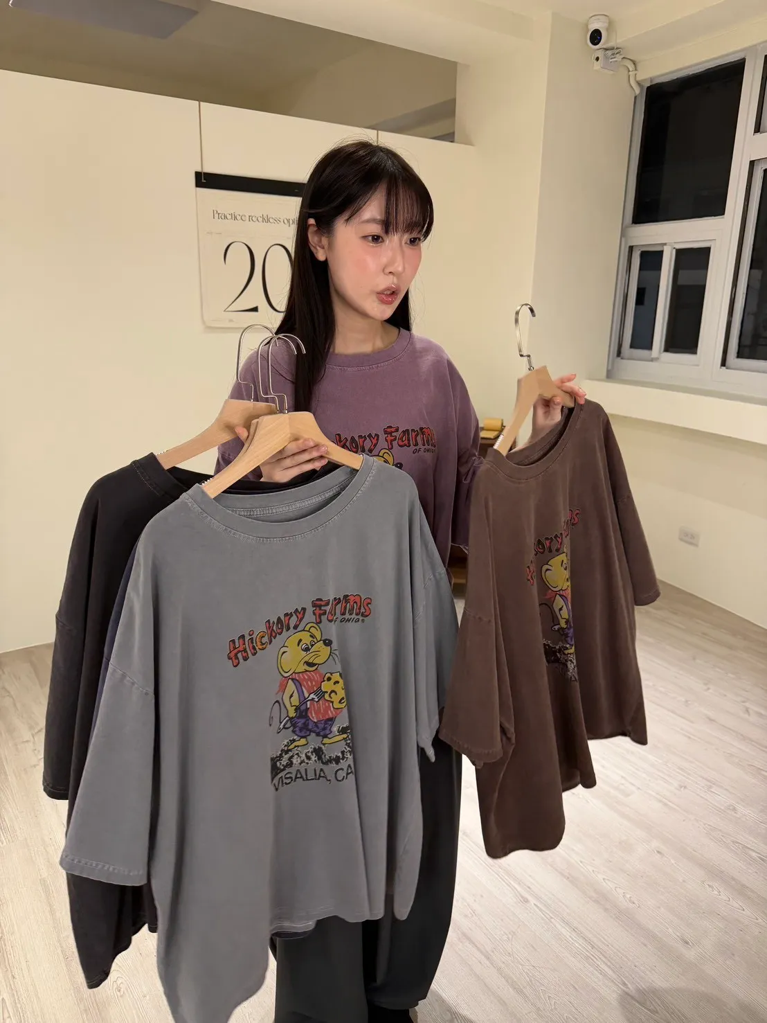 A0038(五色)鼠鼠愛起司寬版水洗T(咖啡/粉紫/淺灰/深灰/深藍)
