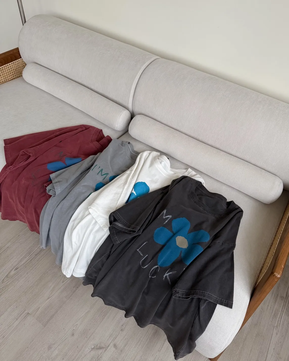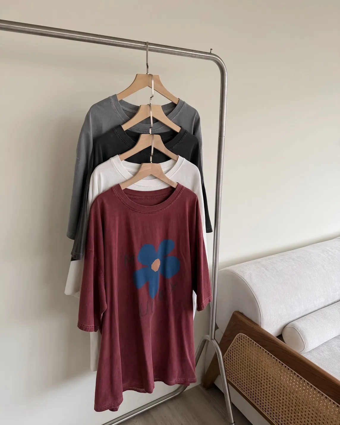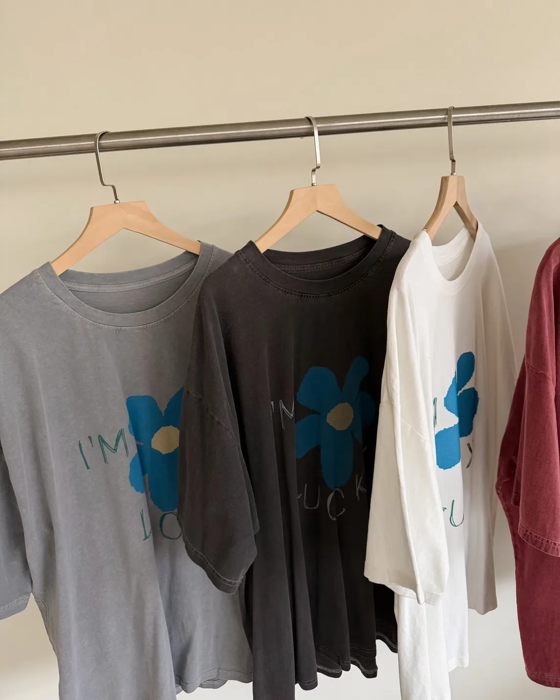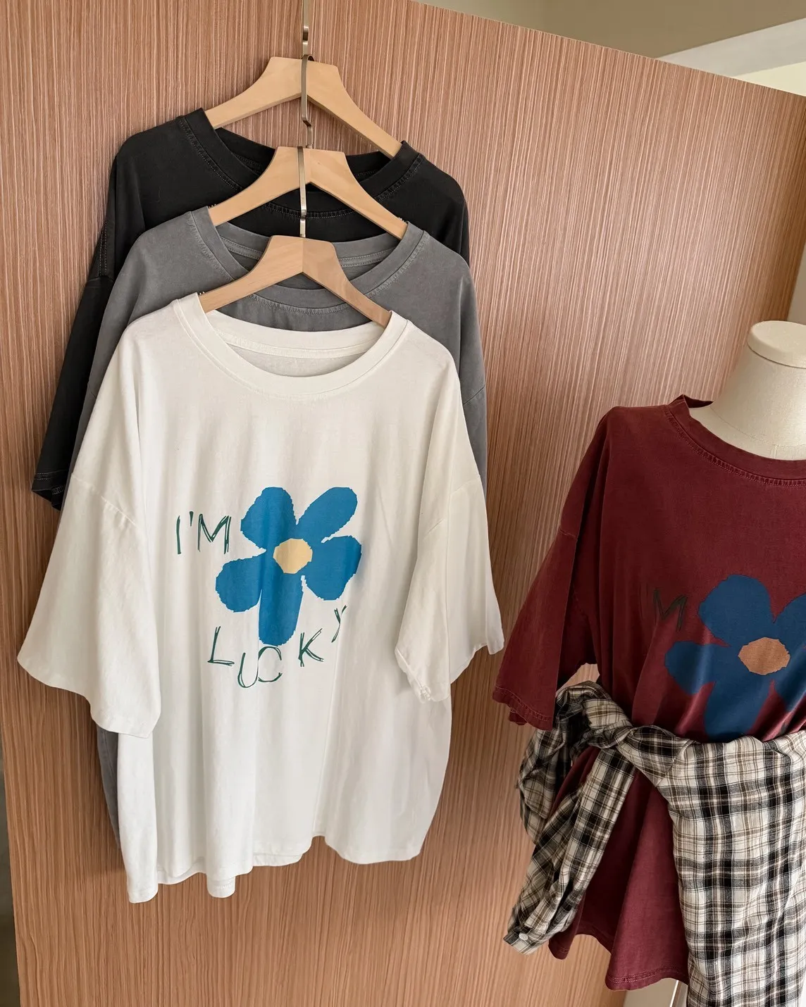 A0008幸運小藍花塗鴉水洗大T(白/紅/灰/深灰)