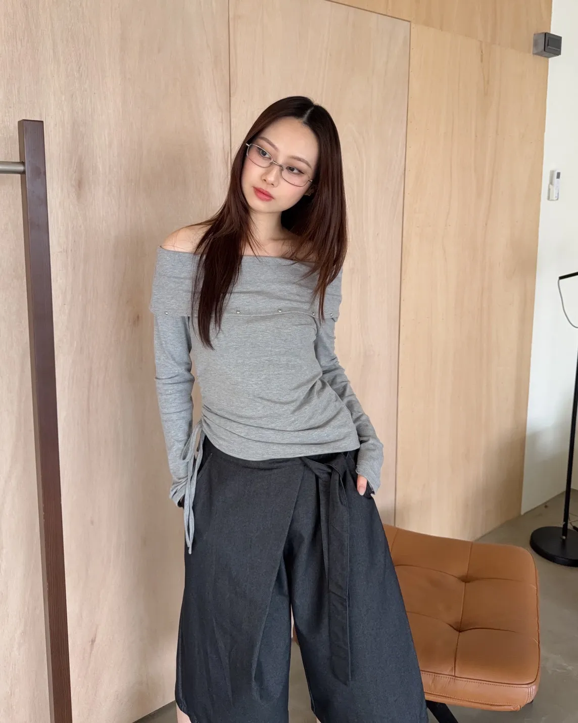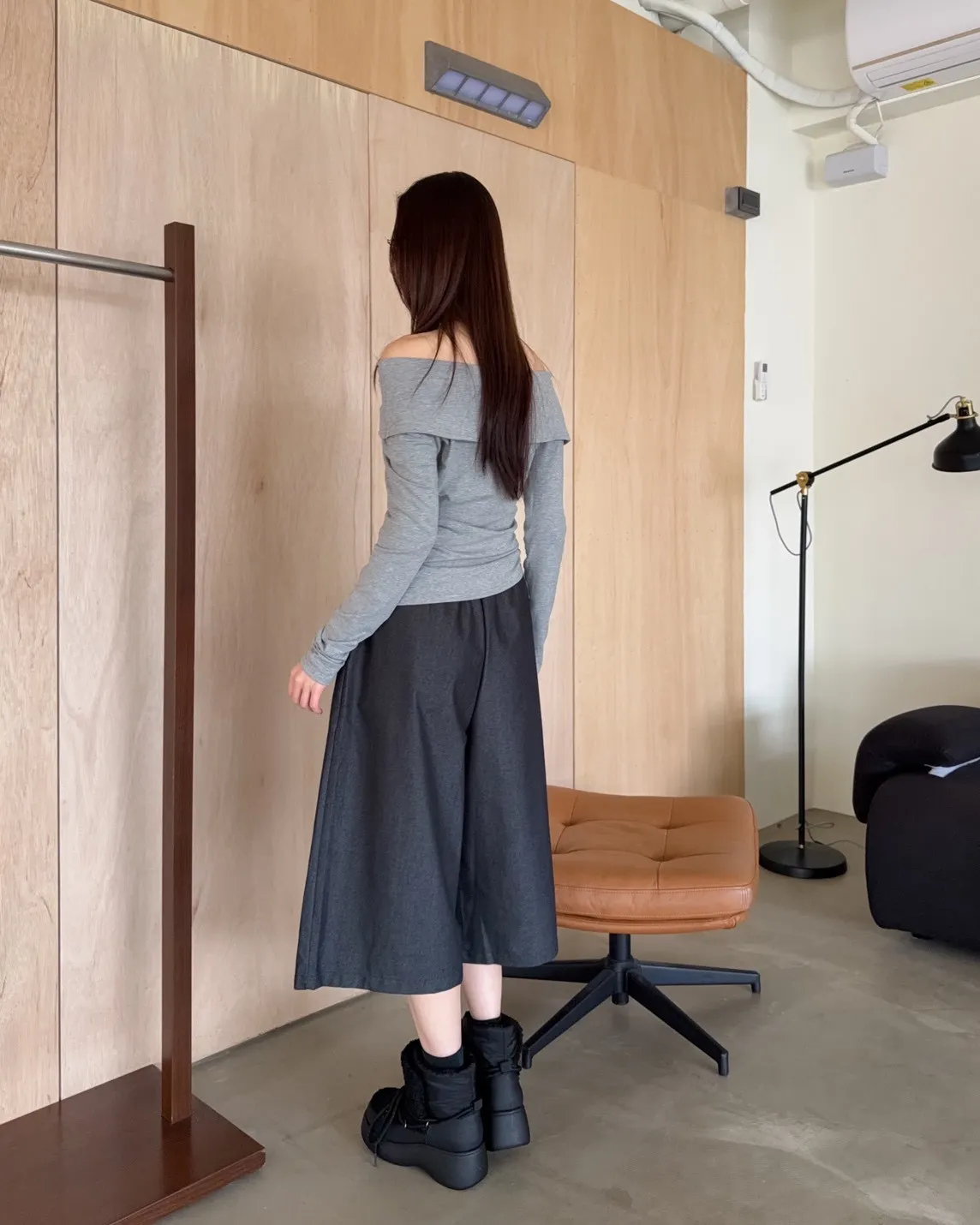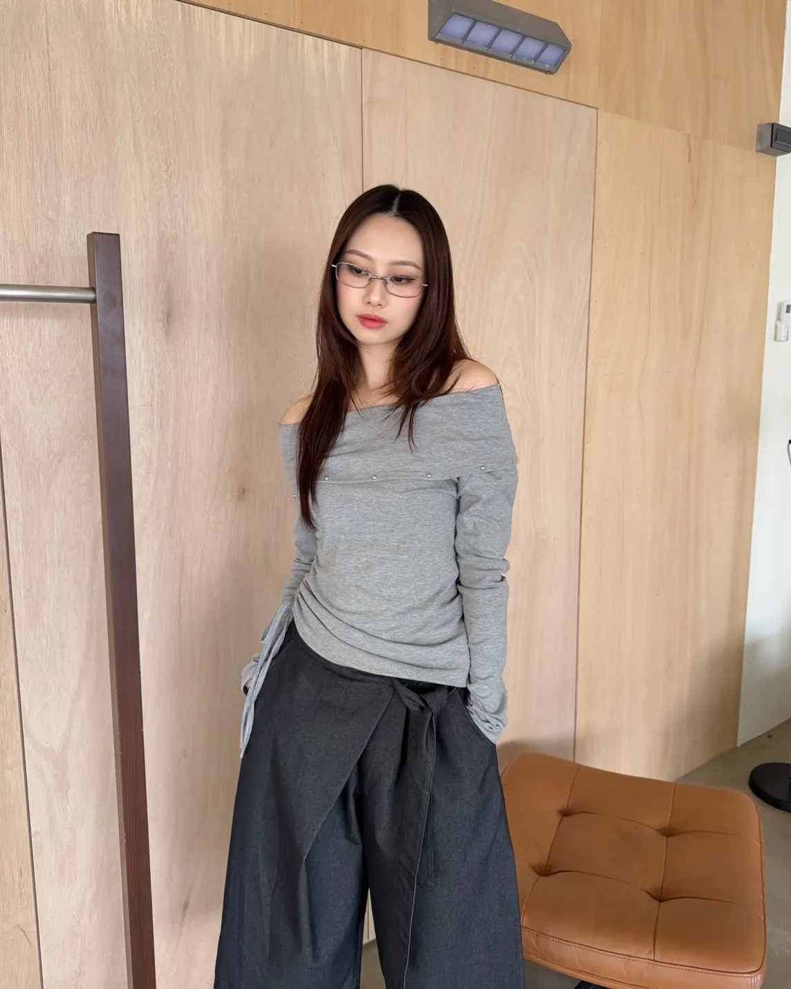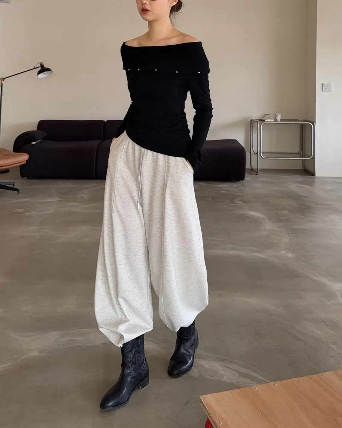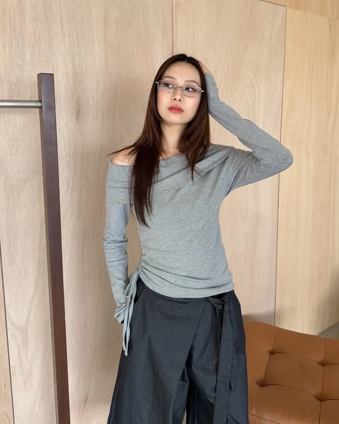 A0018個性鉚釘一字領上衣(白/灰/黑)