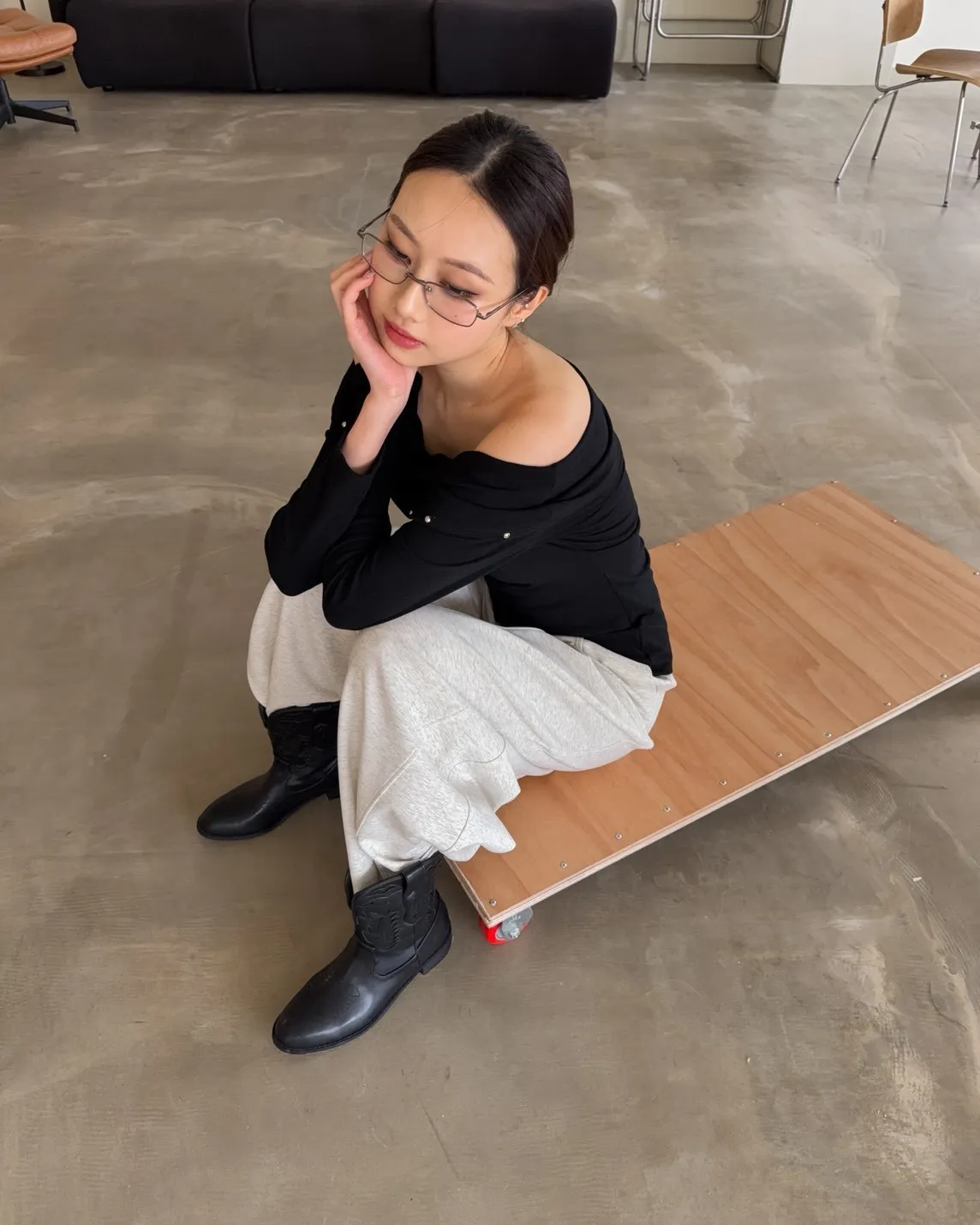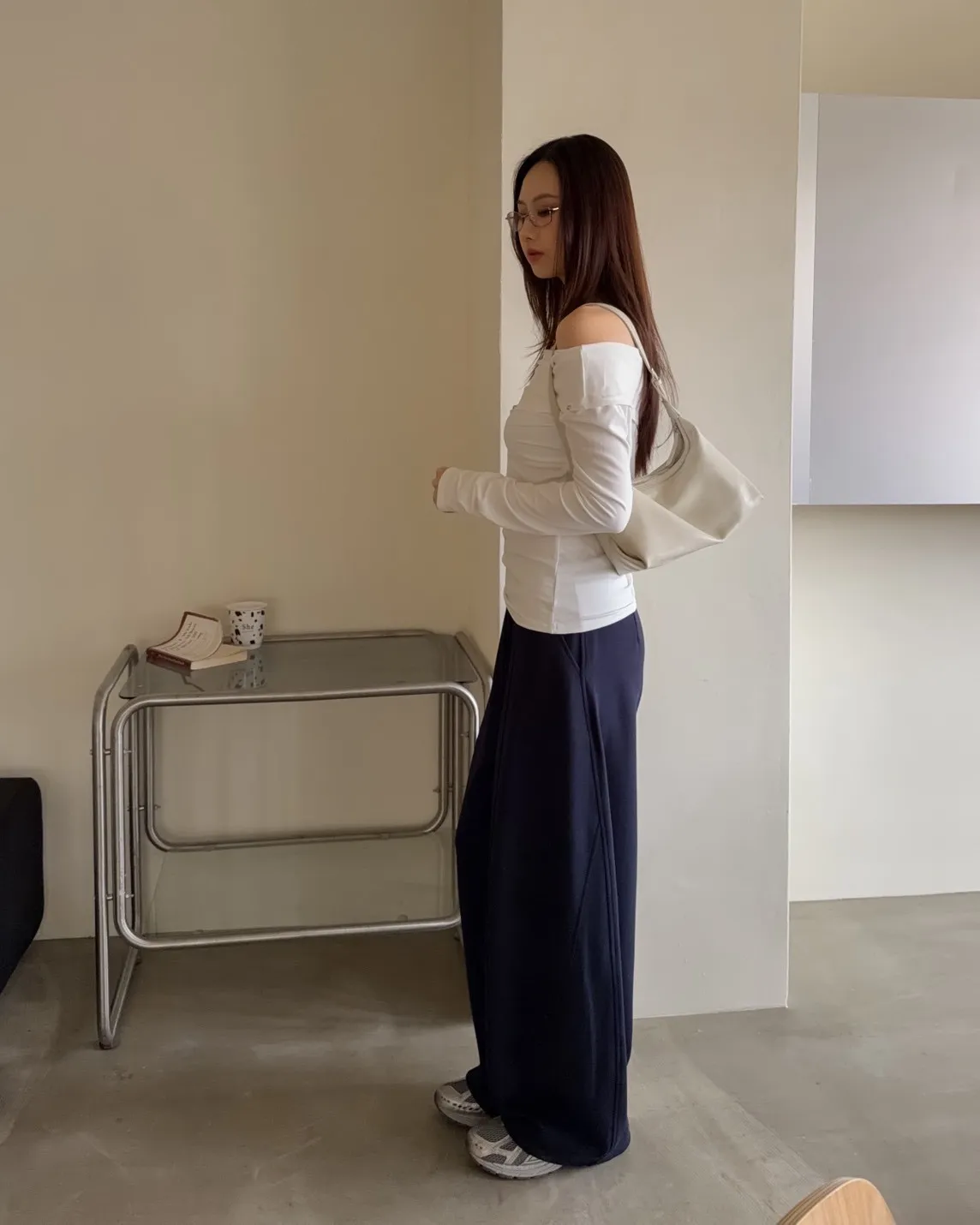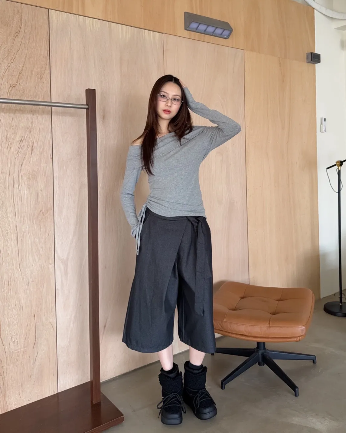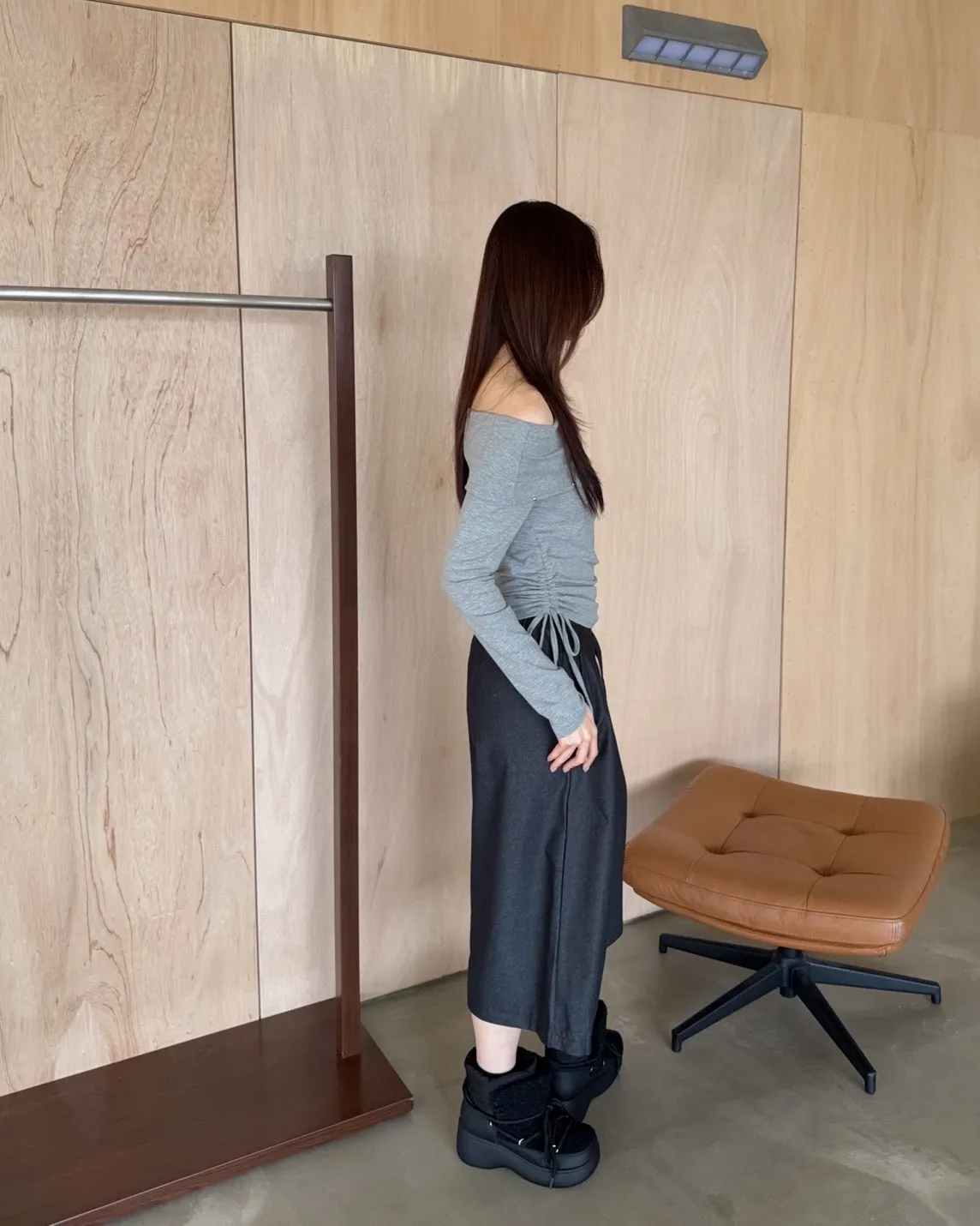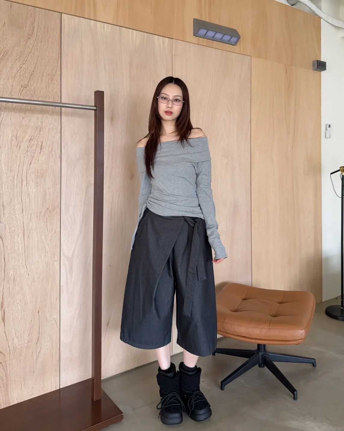 A0018個性鉚釘一字領上衣(白/灰/黑)