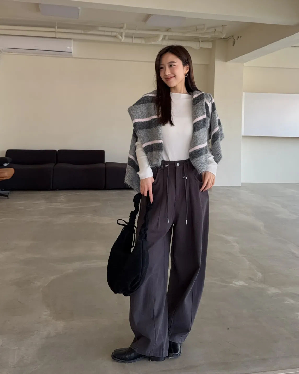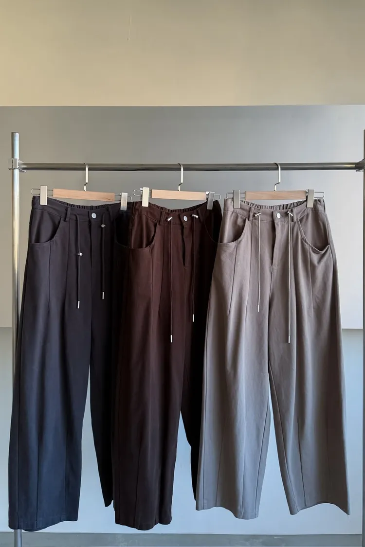 抽繩後鬆緊 建議尺寸S-大M小L 兩側口袋 車線造型 布料本身無彈性 褲襠偏長 微垮褲版型