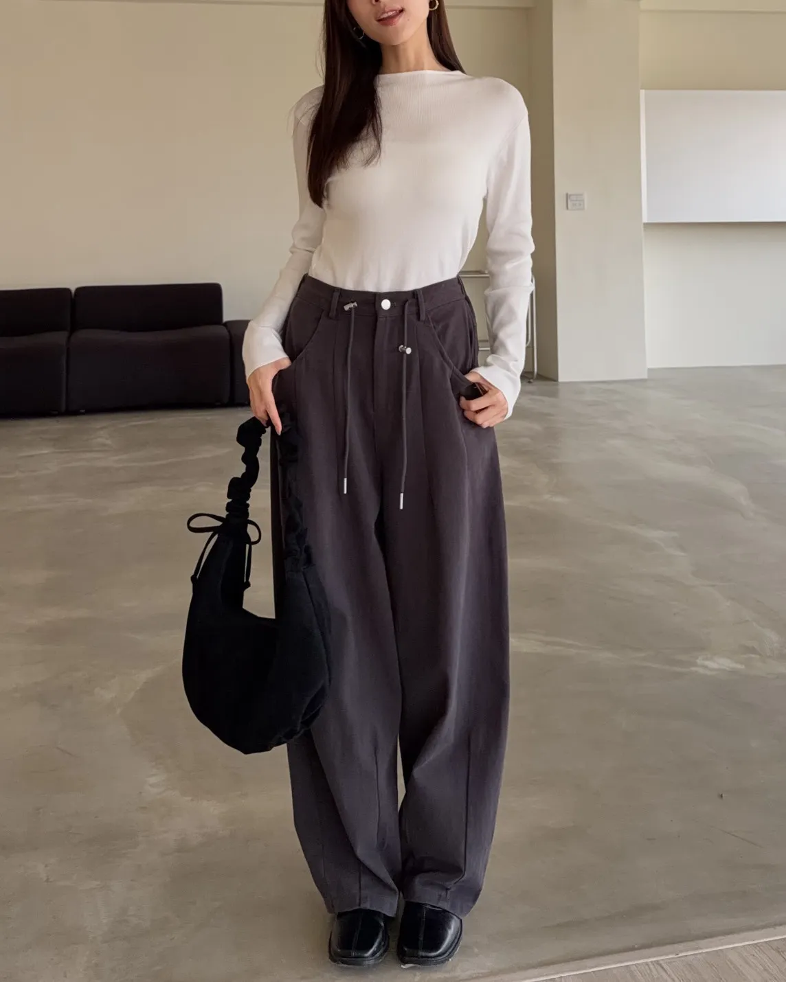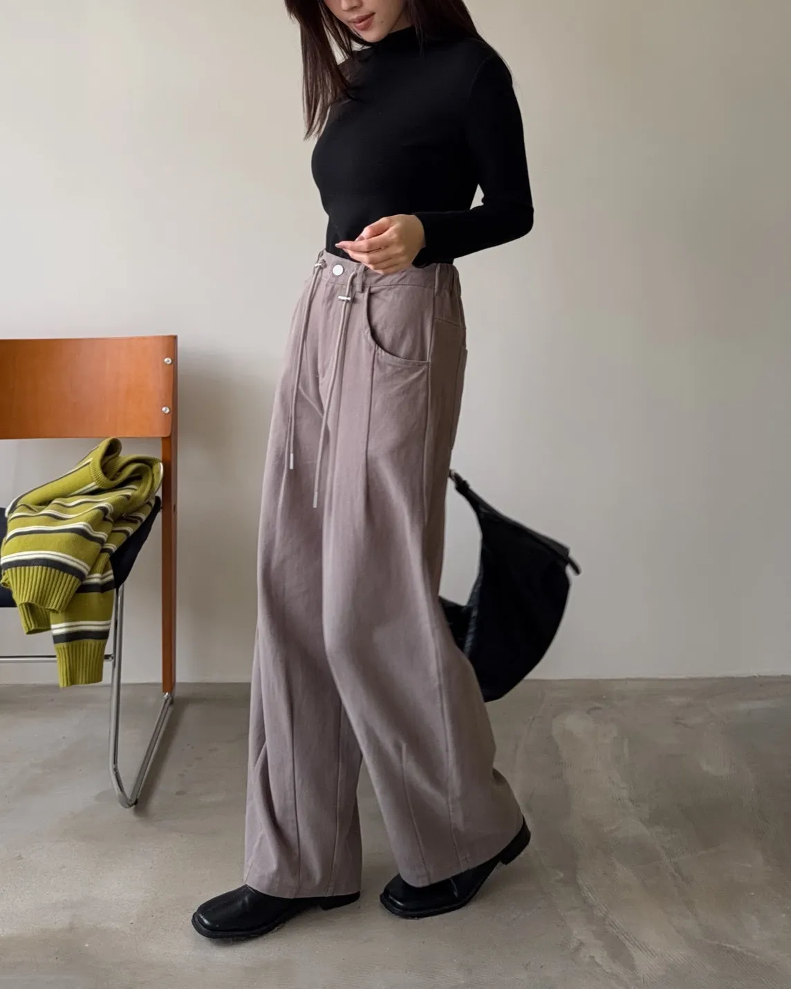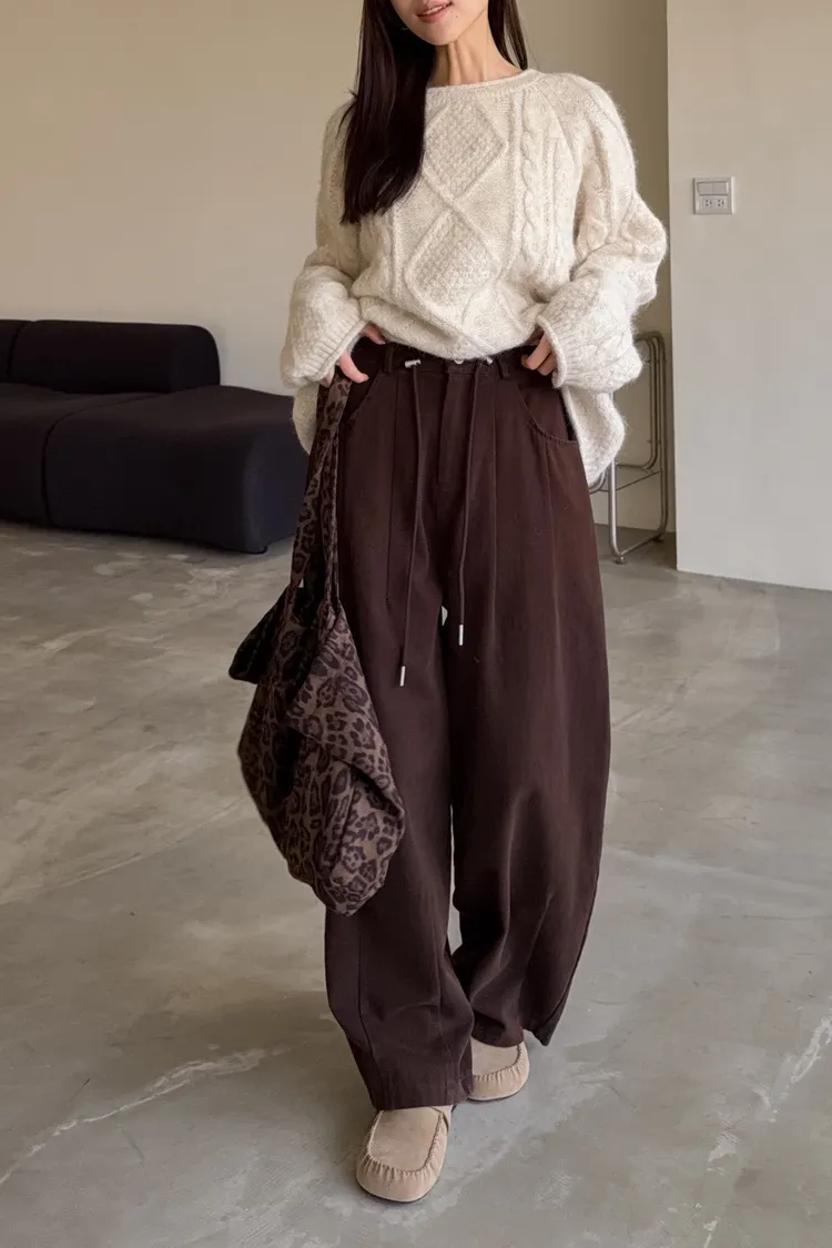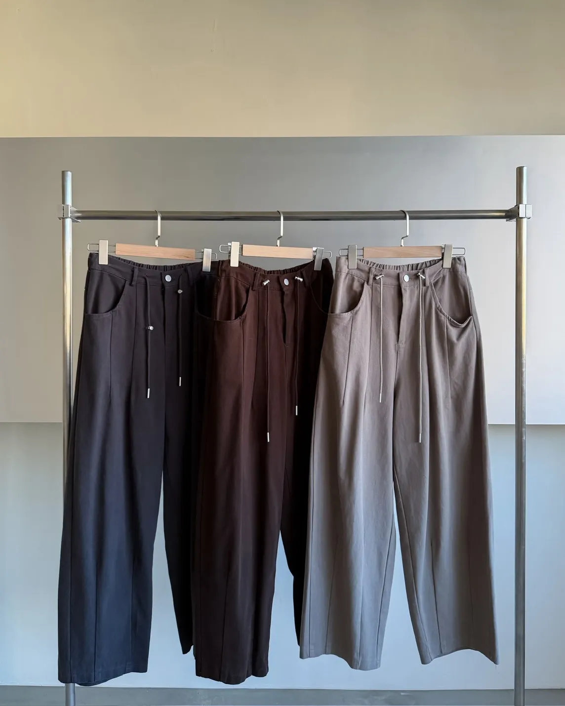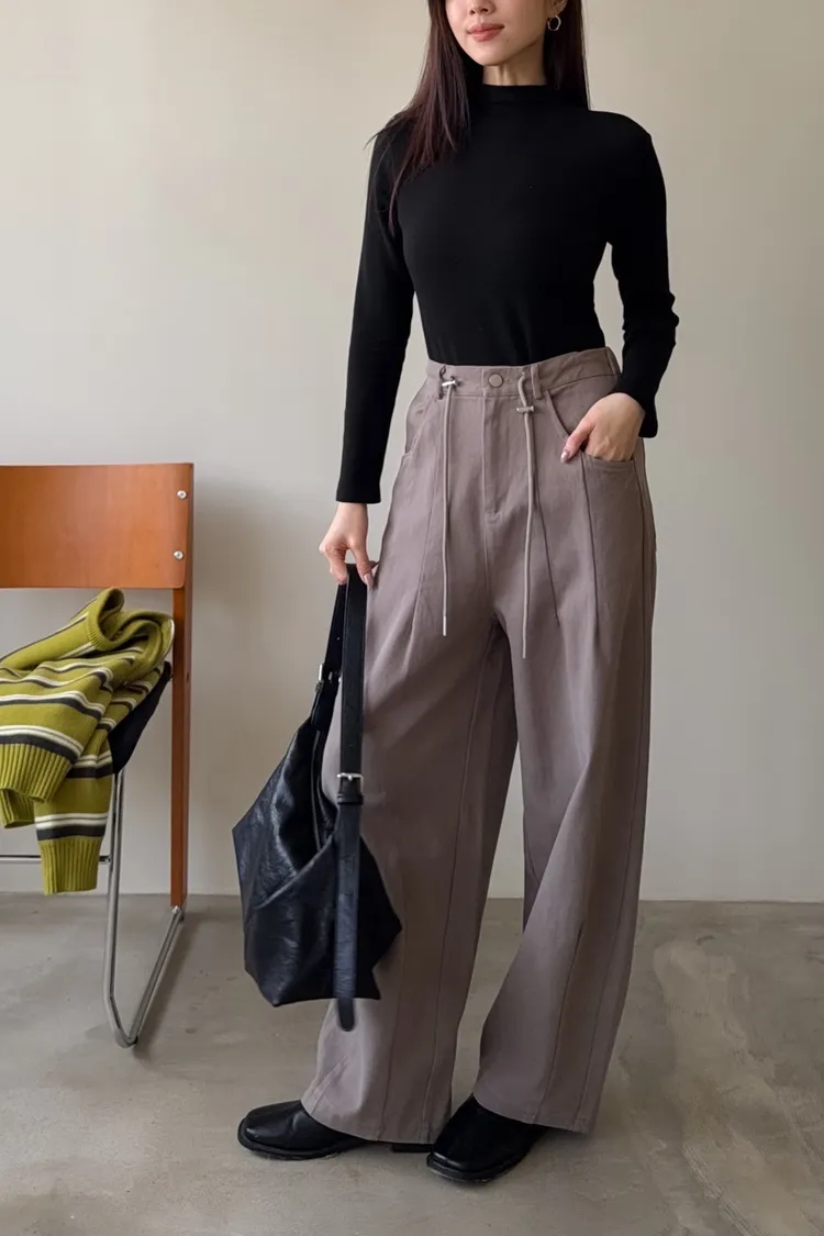 X0041褲襠垮垮抽繩後鬆緊水洗褲(咖啡/灰綠/深灰)