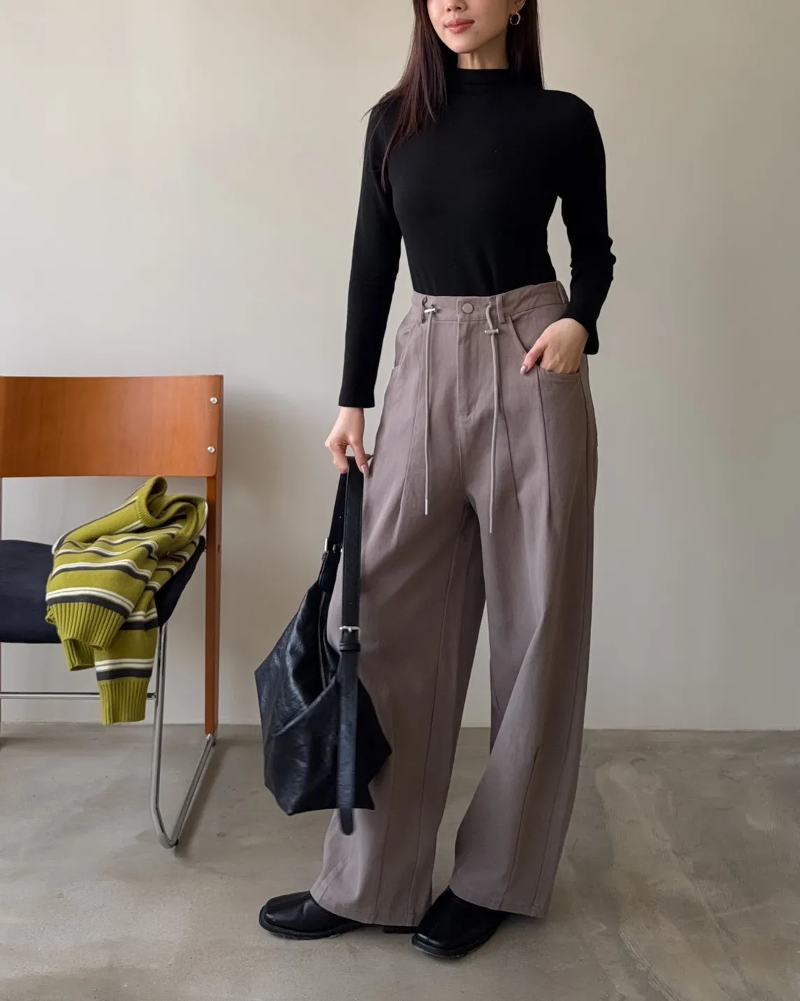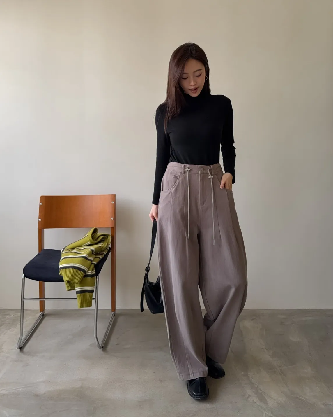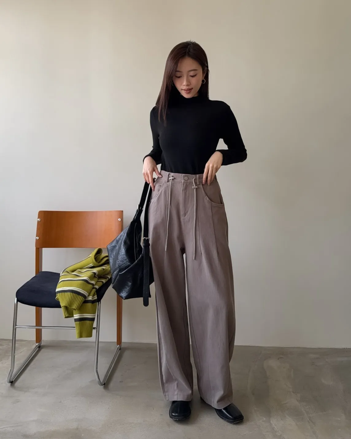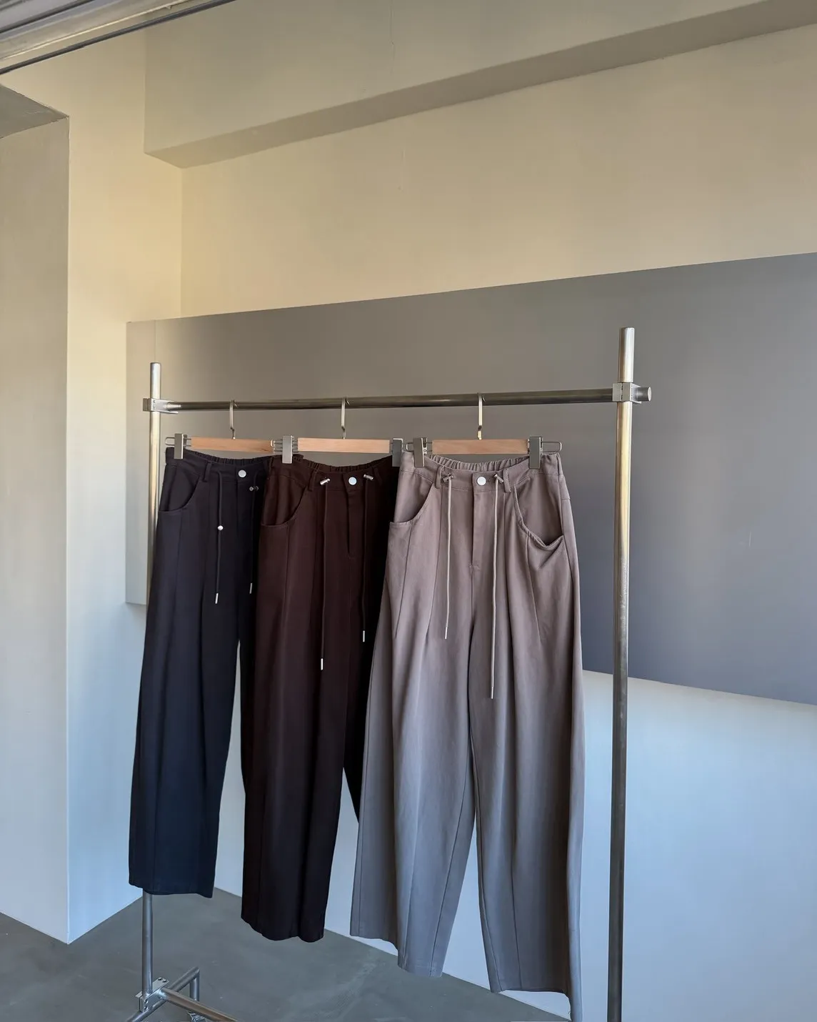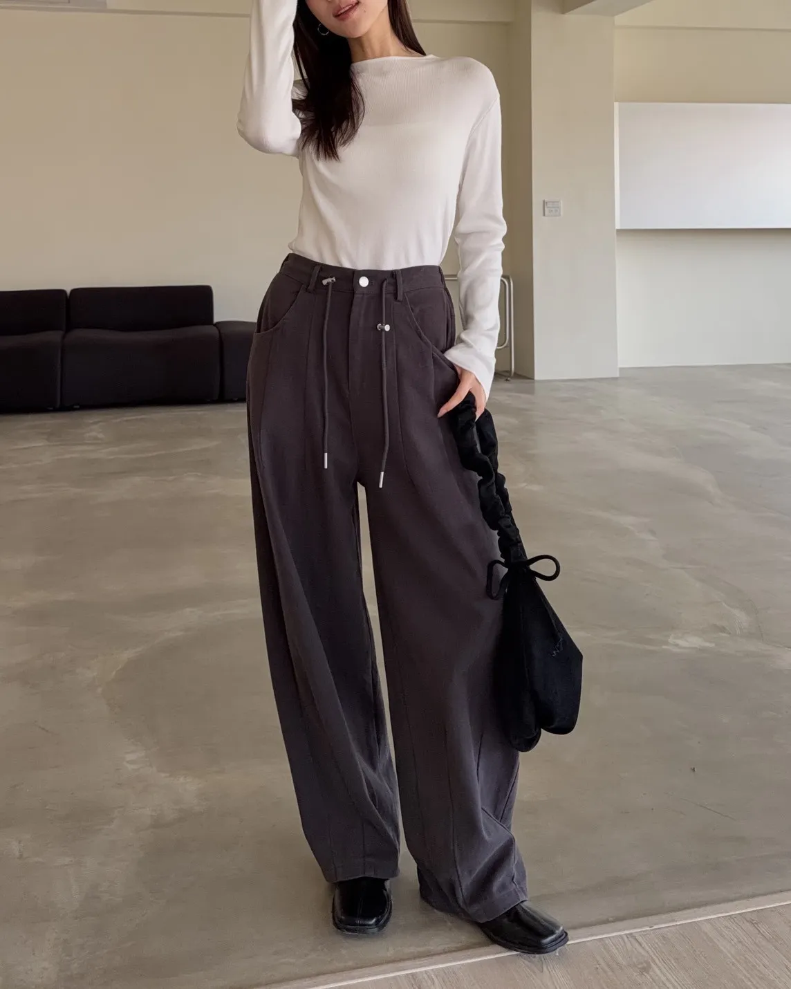 X0041褲襠垮垮抽繩後鬆緊水洗褲(咖啡/灰綠/深灰)