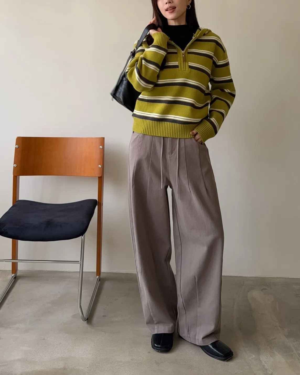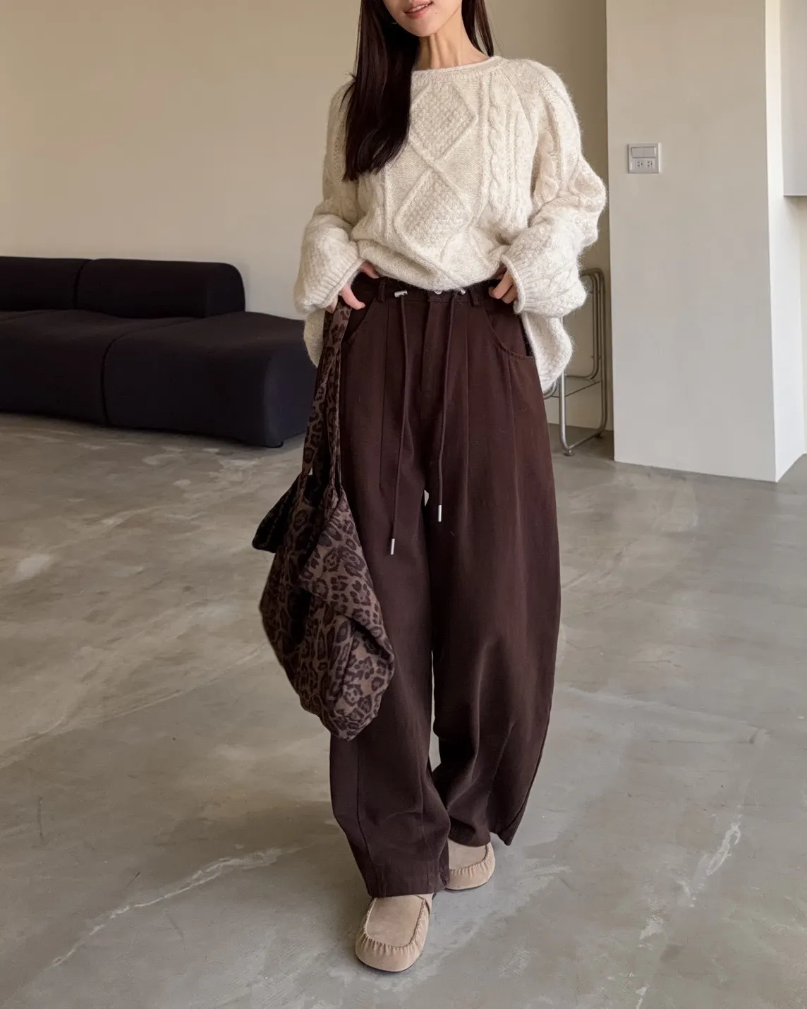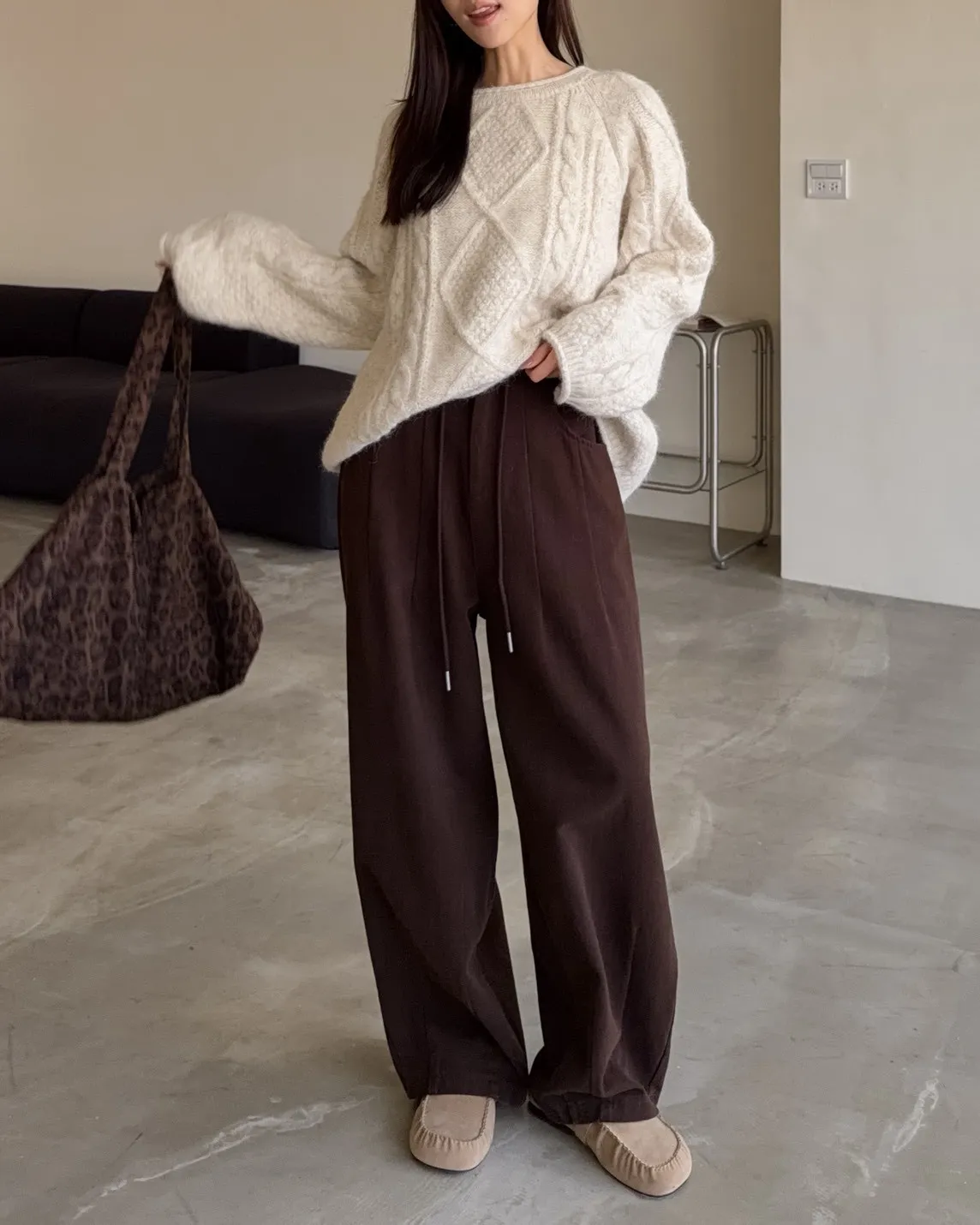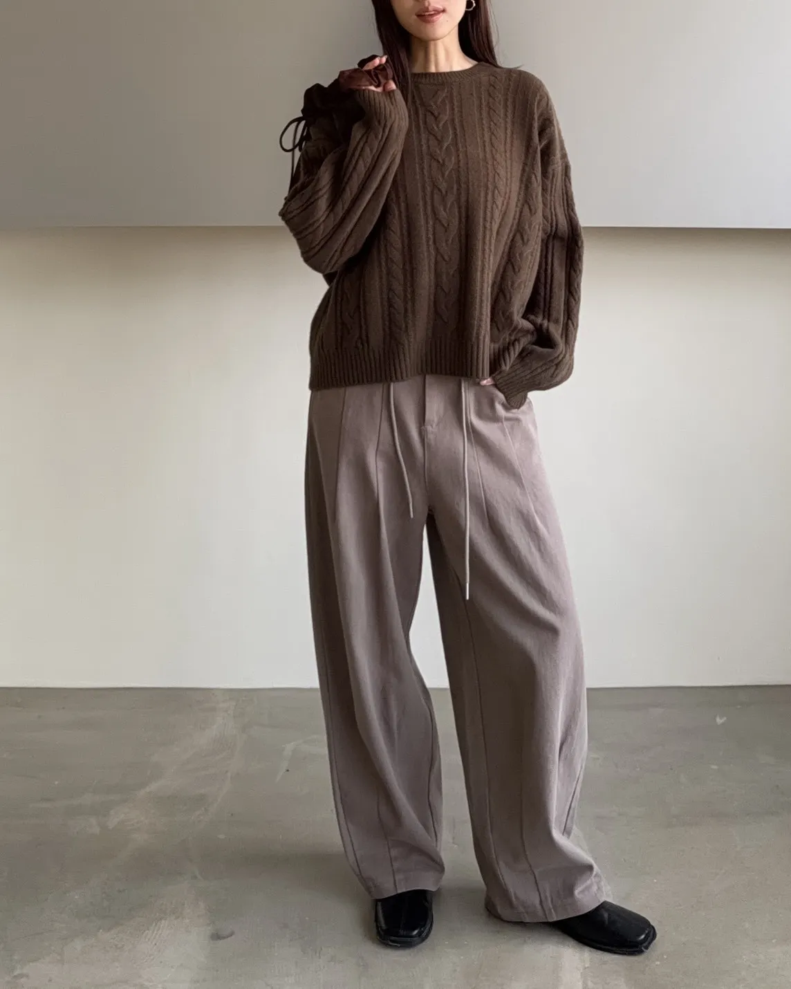 X0041褲襠垮垮抽繩後鬆緊水洗褲(咖啡/灰綠/深灰)