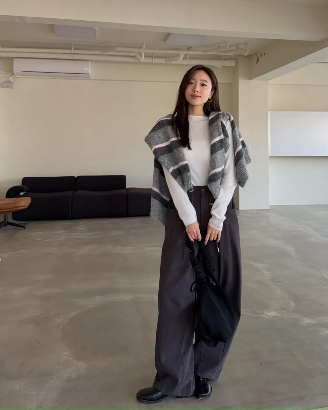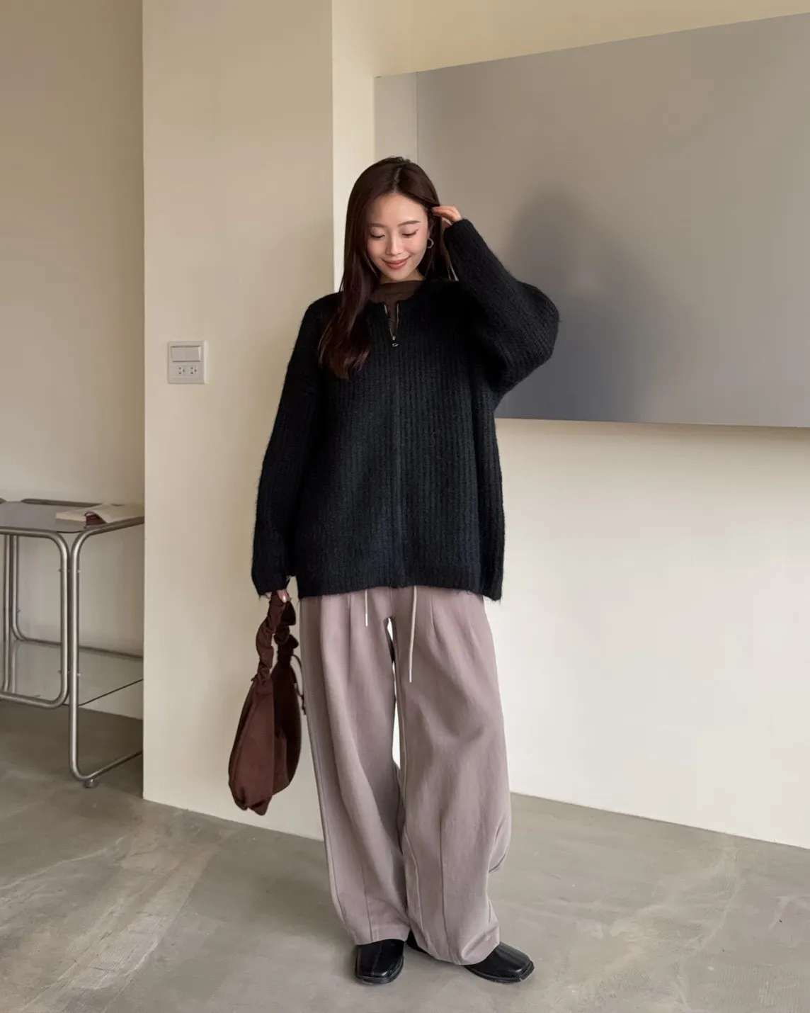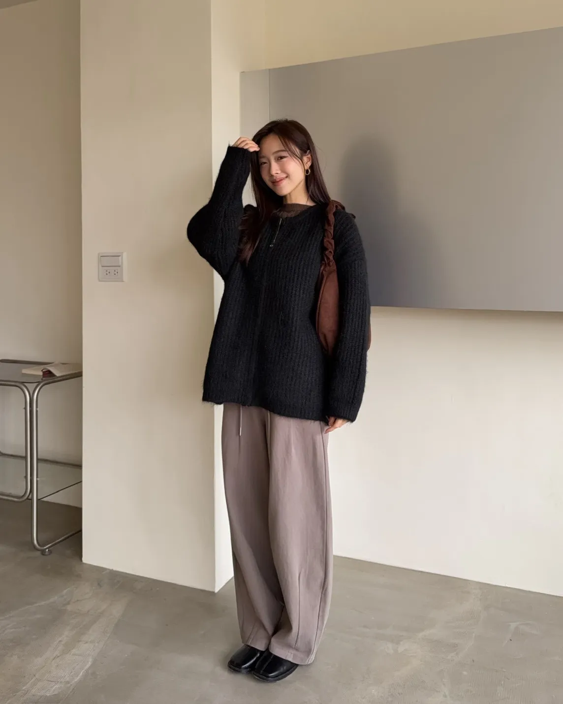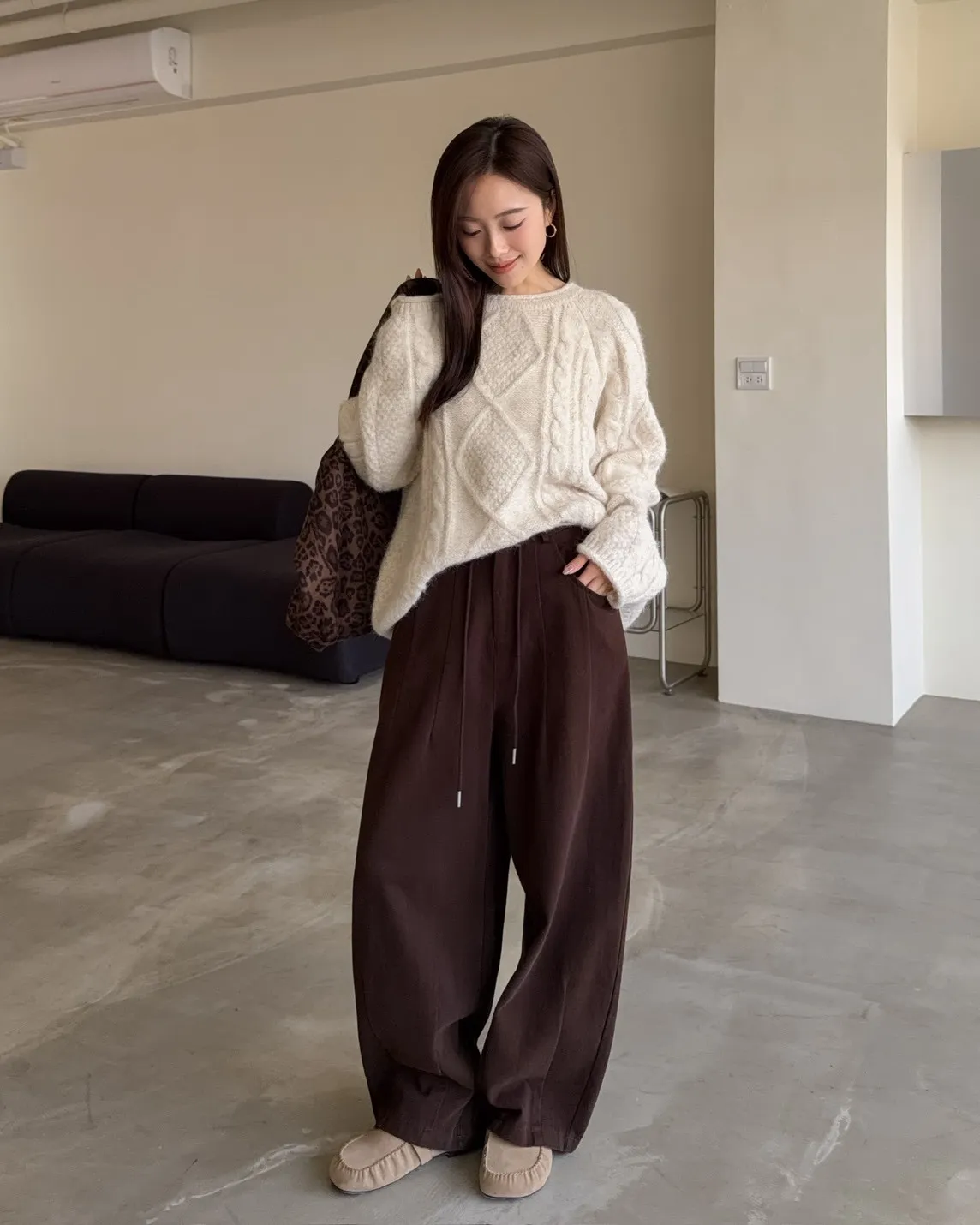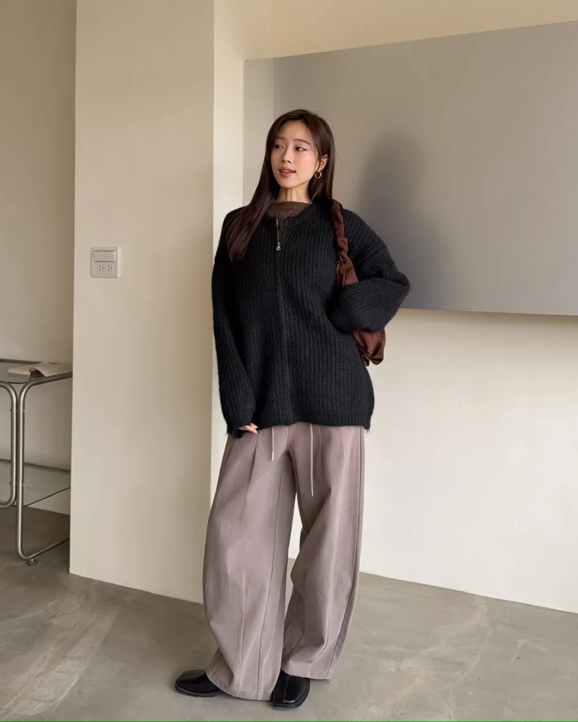 X0041褲襠垮垮抽繩後鬆緊水洗褲(咖啡/灰綠/深灰)