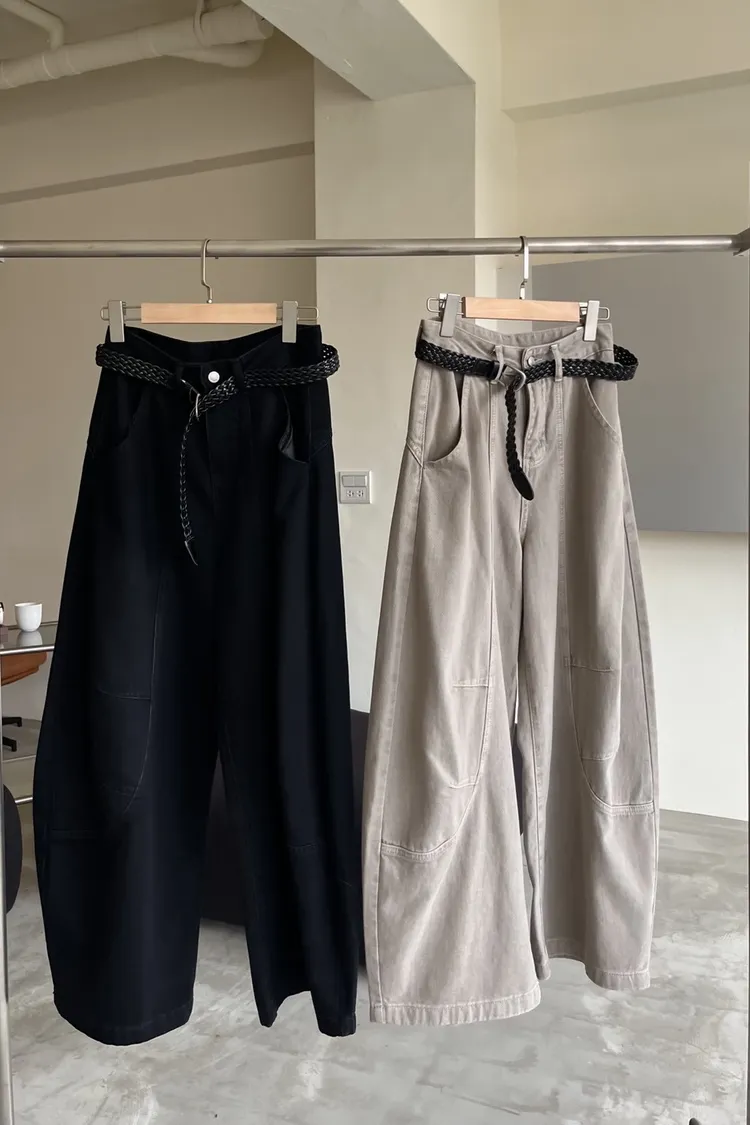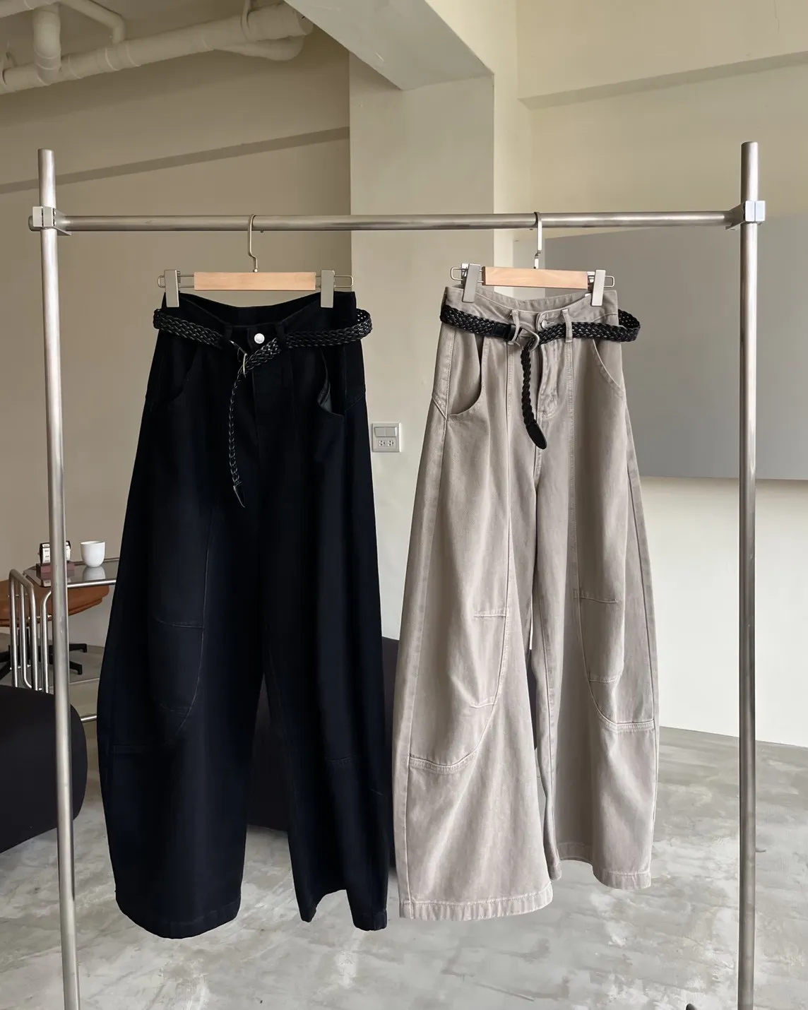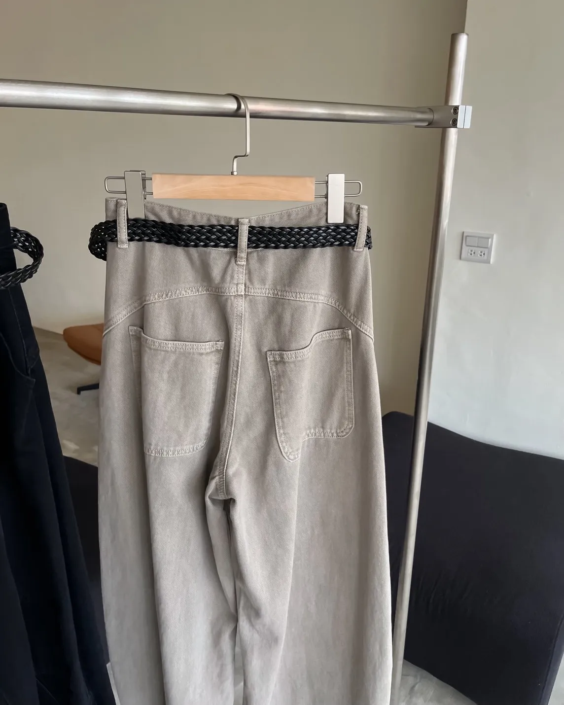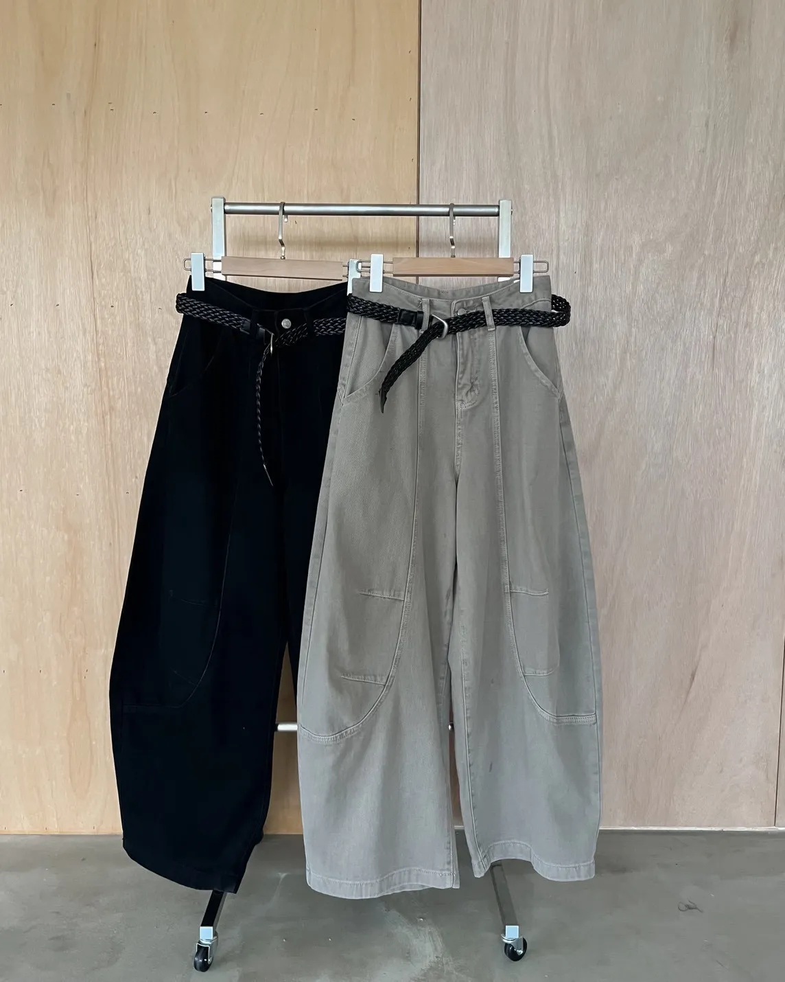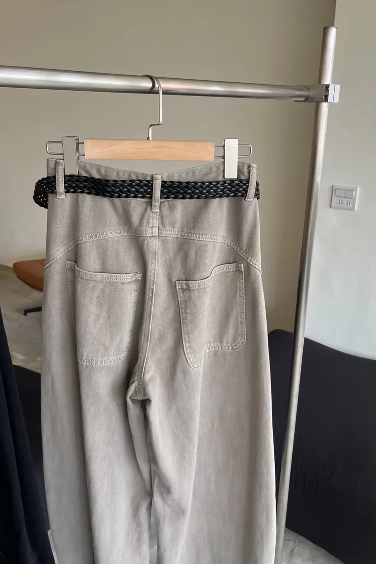 W0034(附編織皮帶)妳要的夢中情褲!!彎刀落地褲(灰綠/黑)