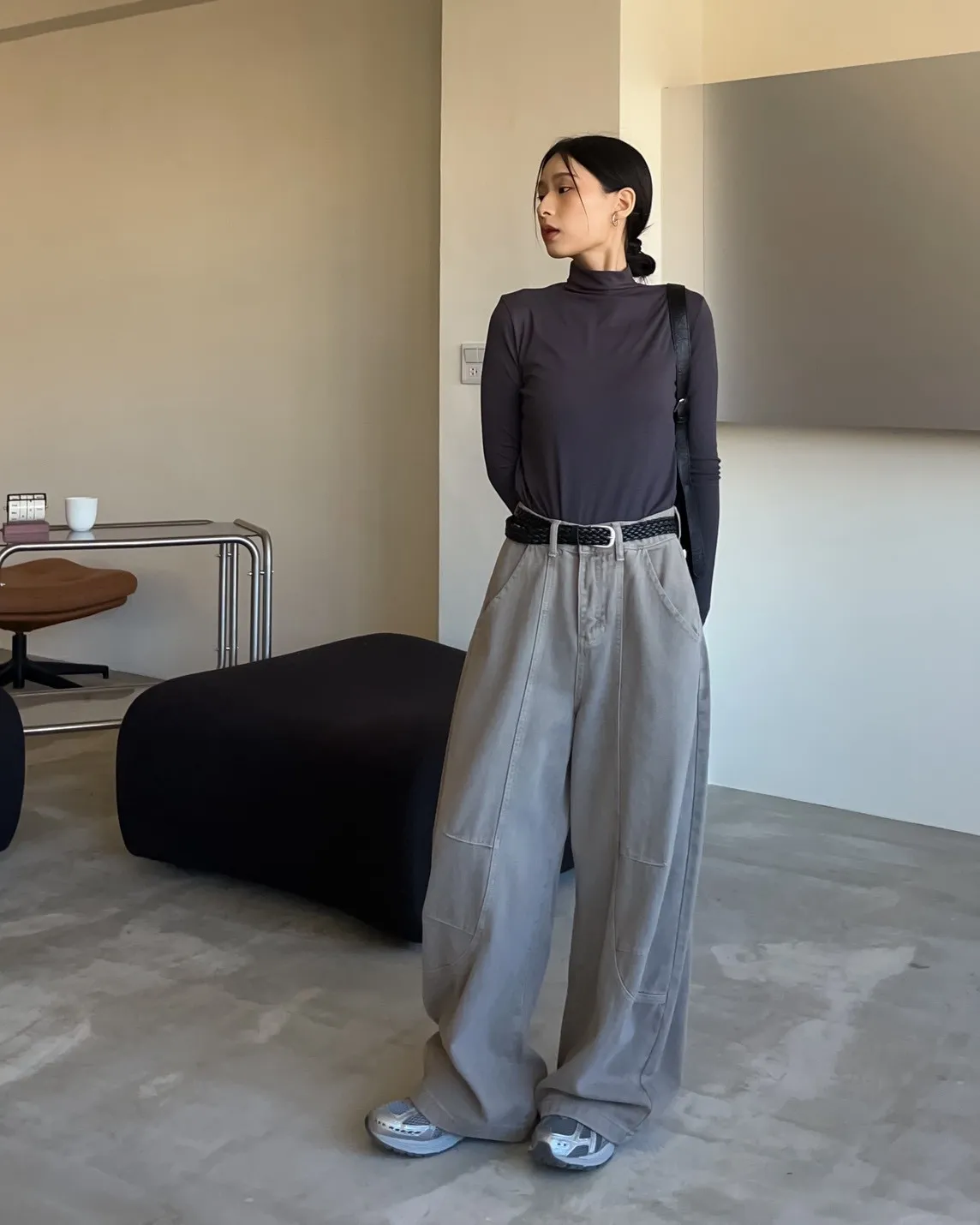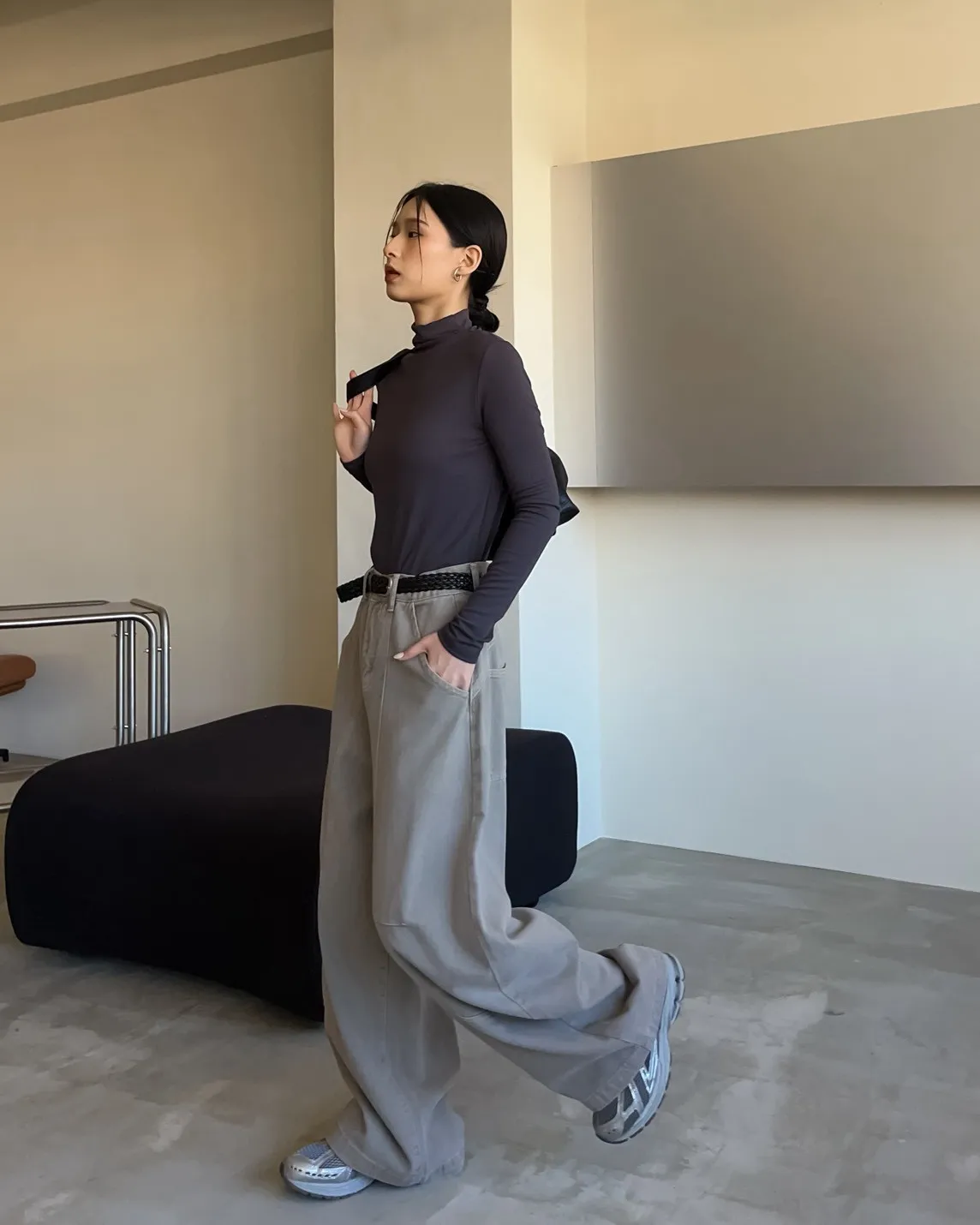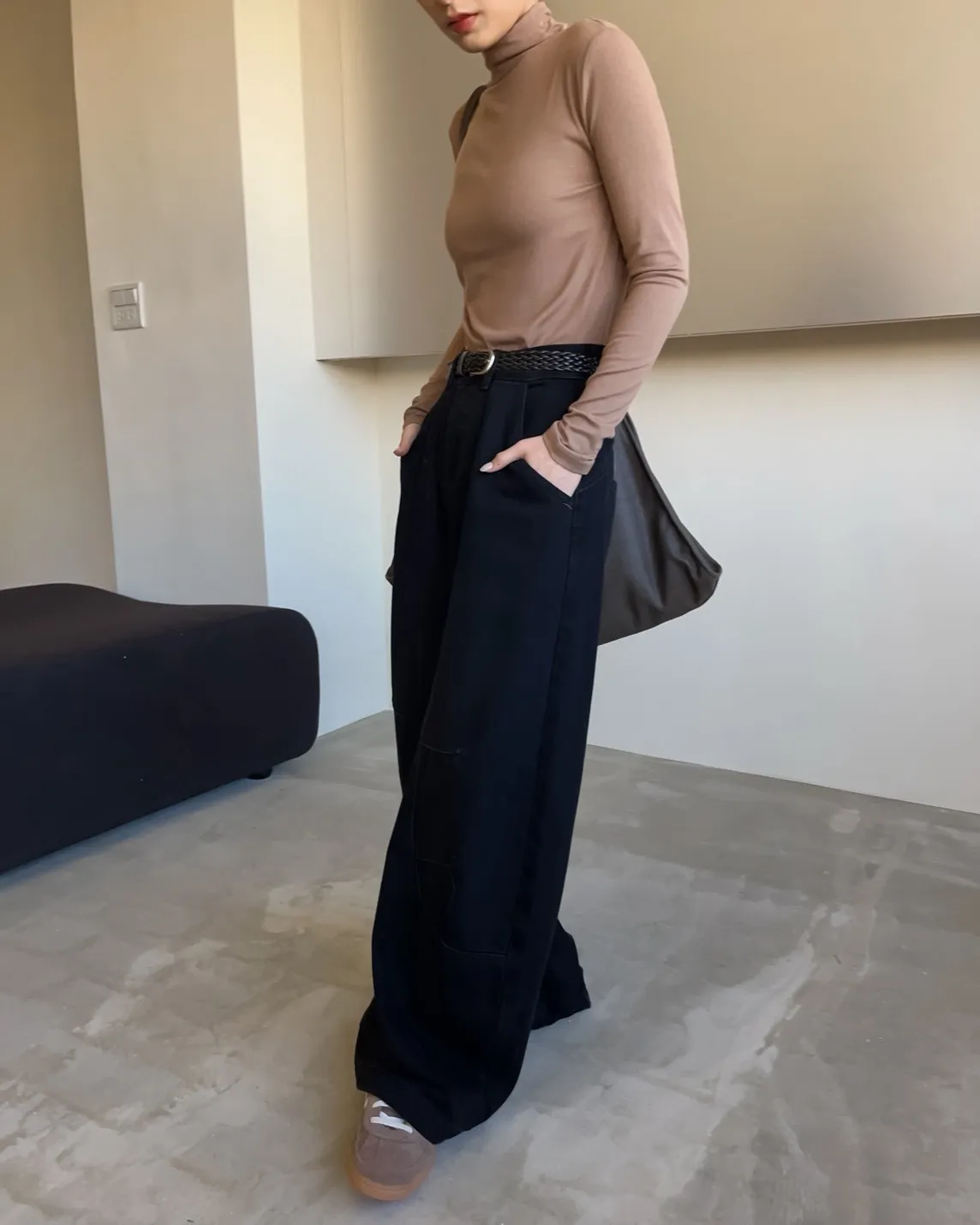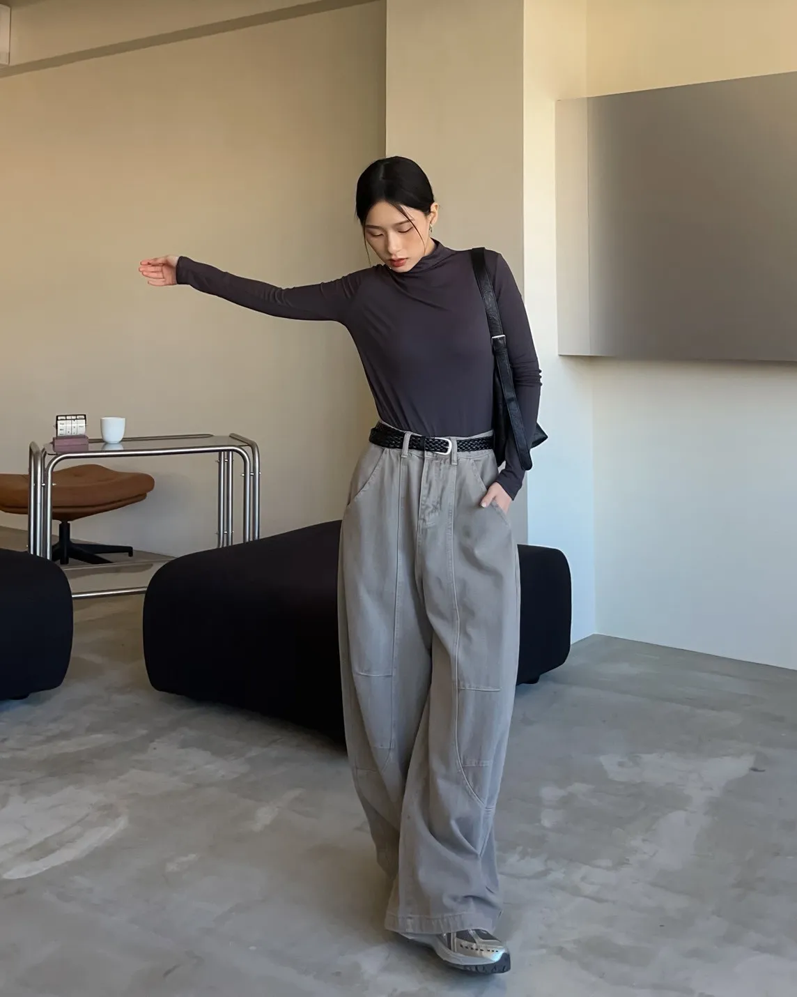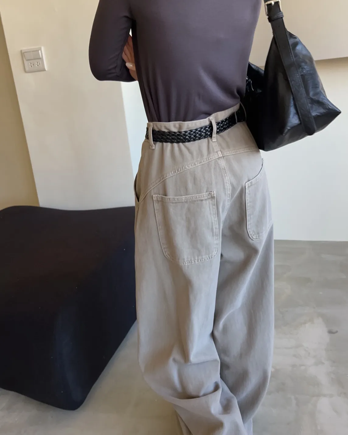 W0034(附編織皮帶)妳要的夢中情褲!!彎刀落地褲(灰綠/黑)