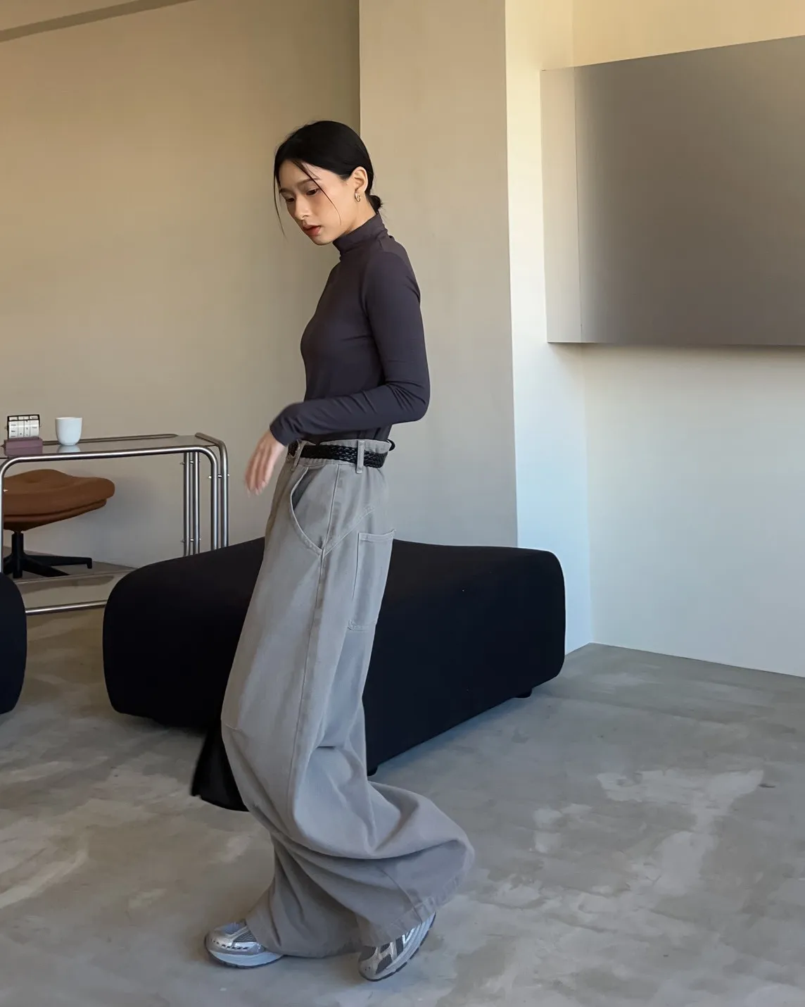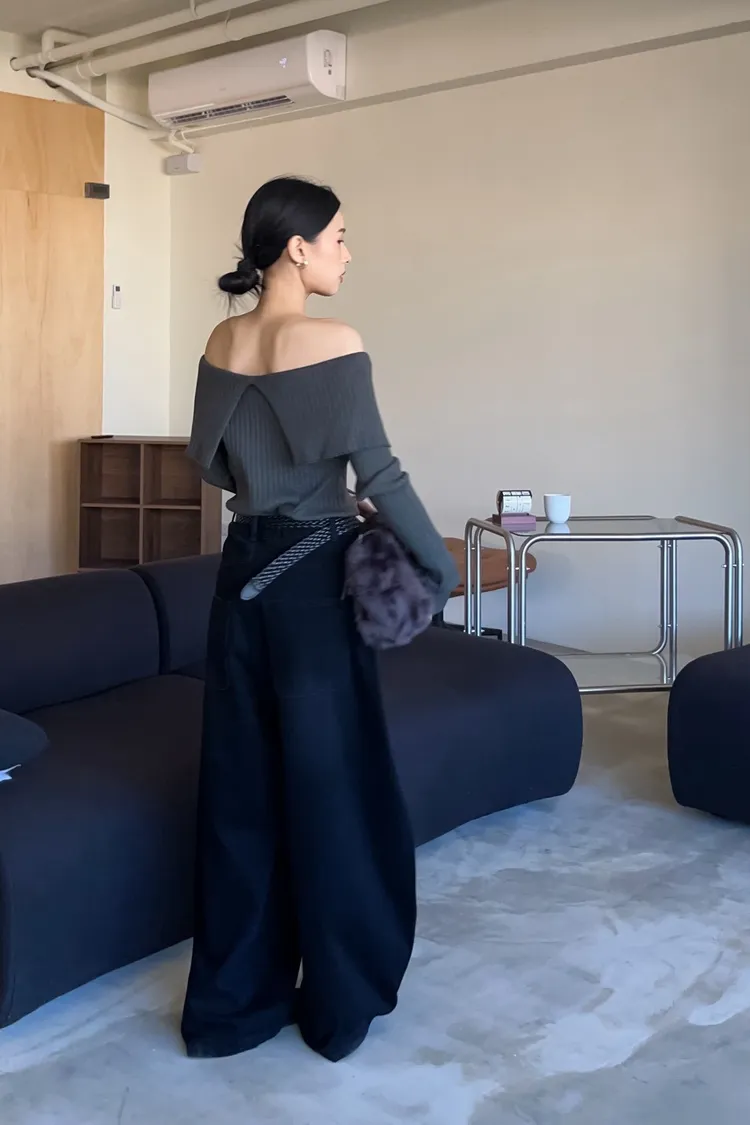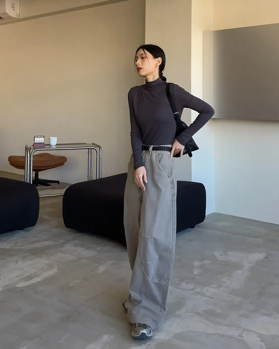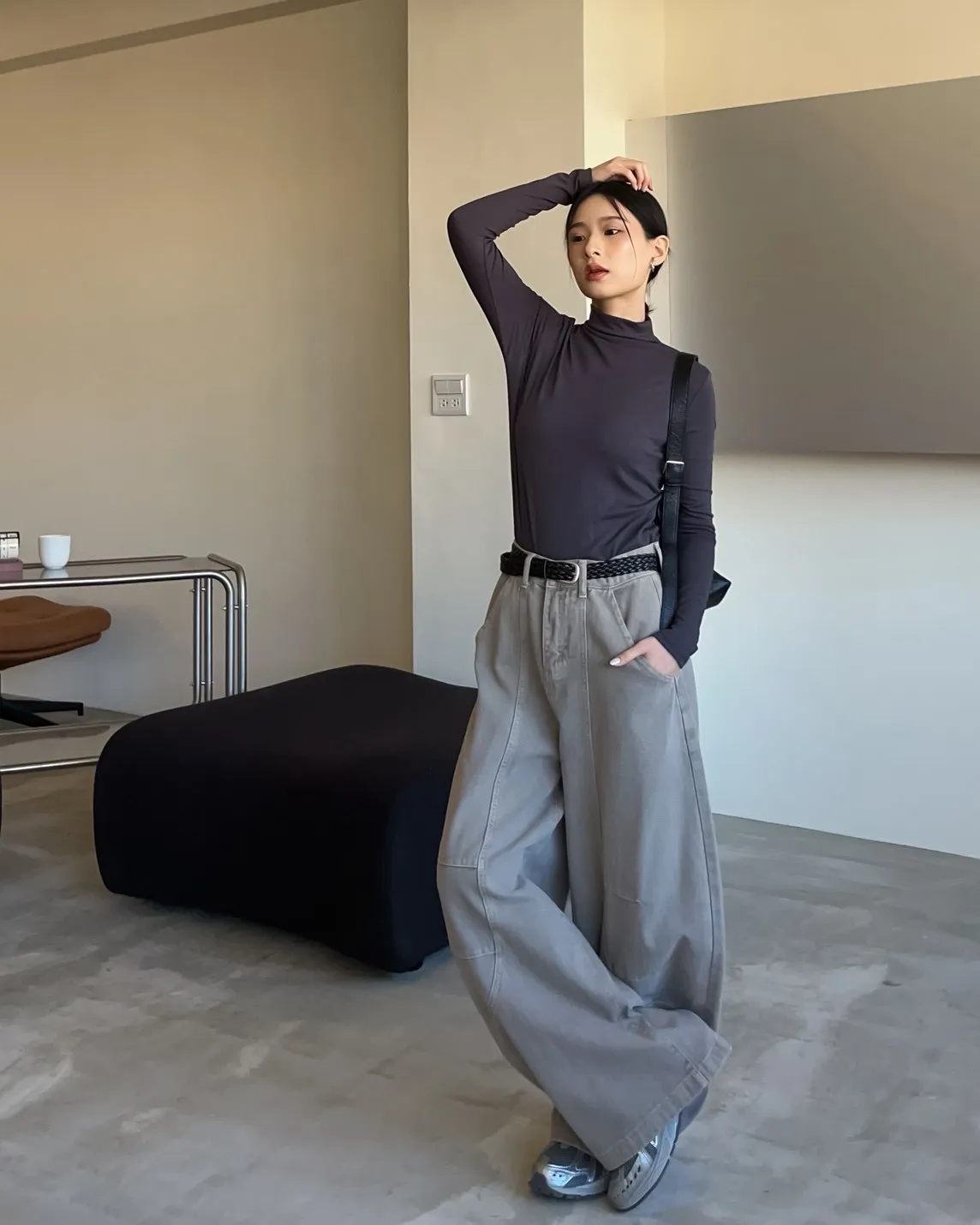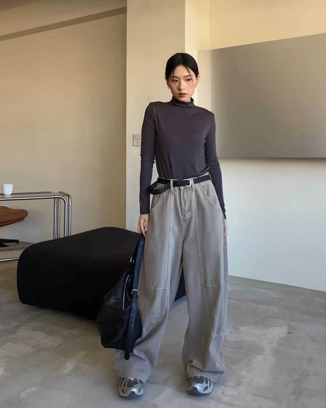 W0034(附編織皮帶)妳要的夢中情褲!!彎刀落地褲(灰綠/黑)