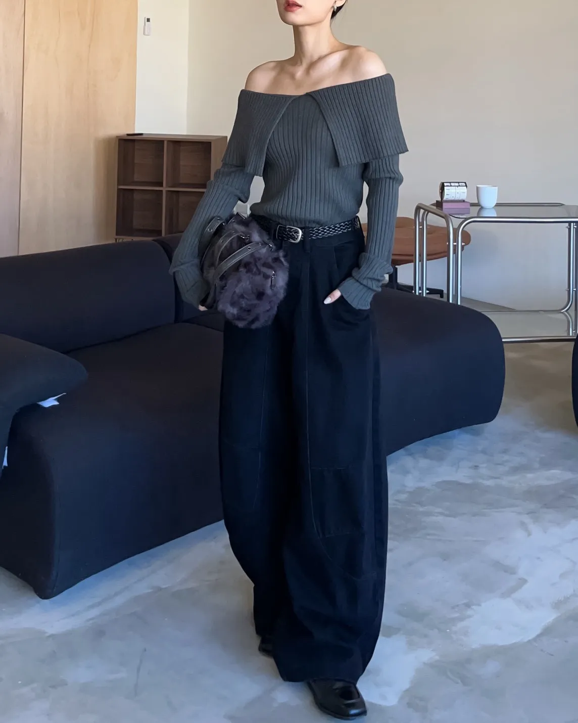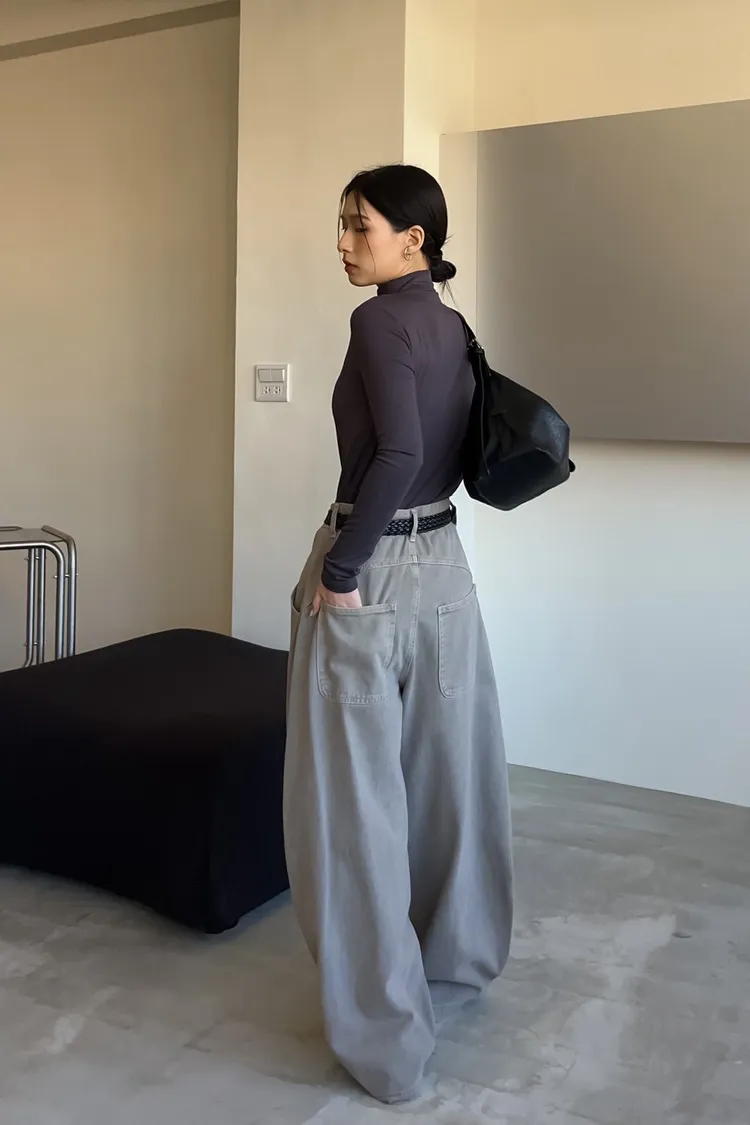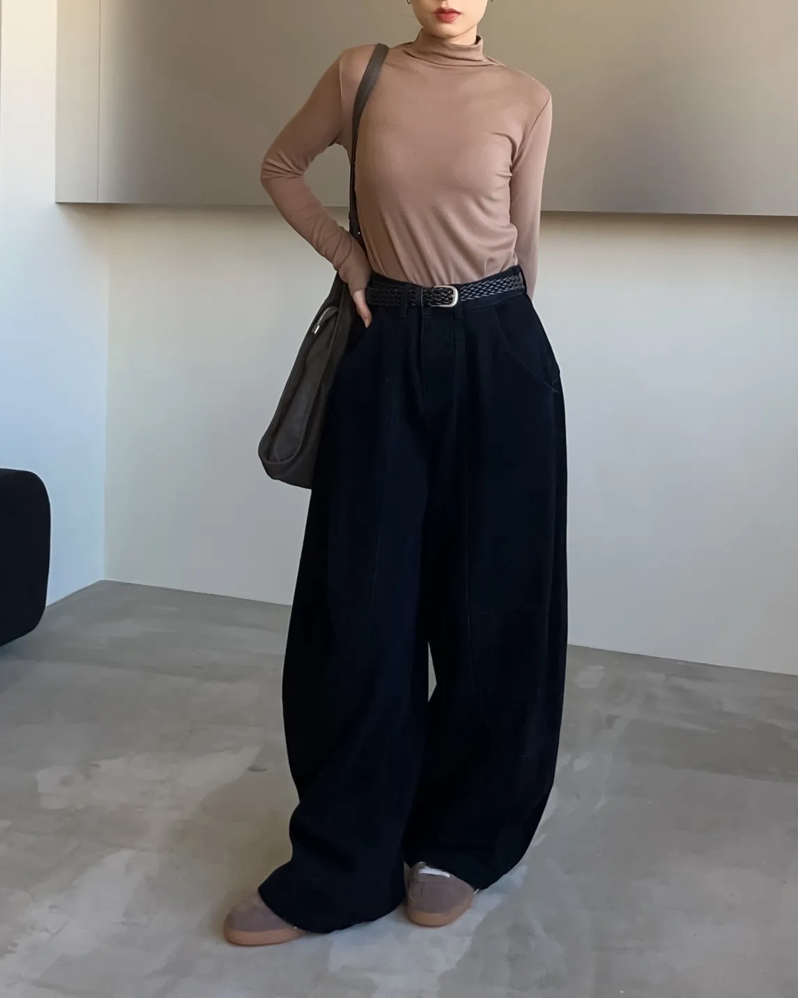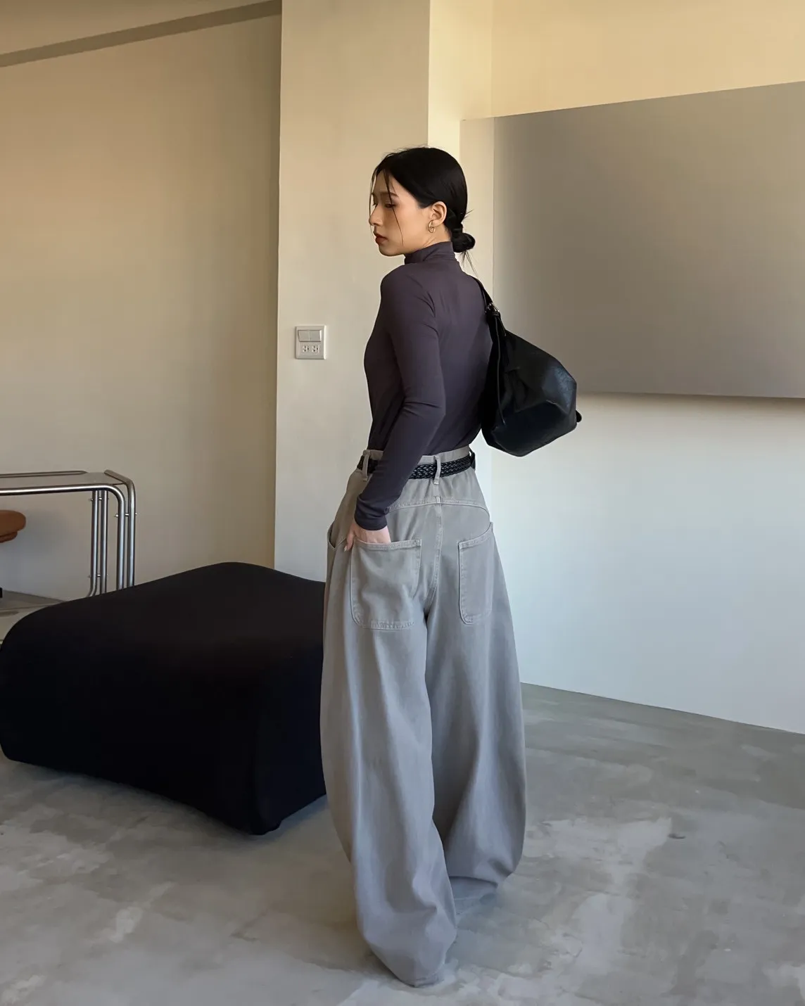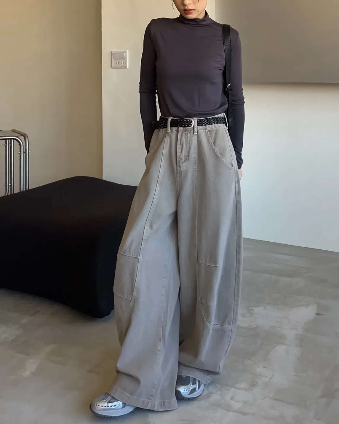 W0034(附編織皮帶)妳要的夢中情褲!!彎刀落地褲(灰綠/黑)