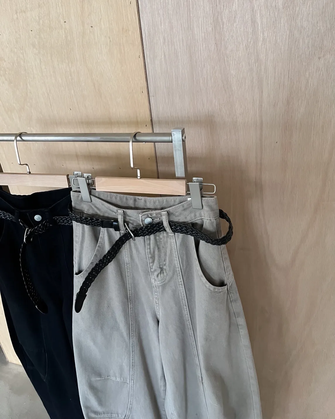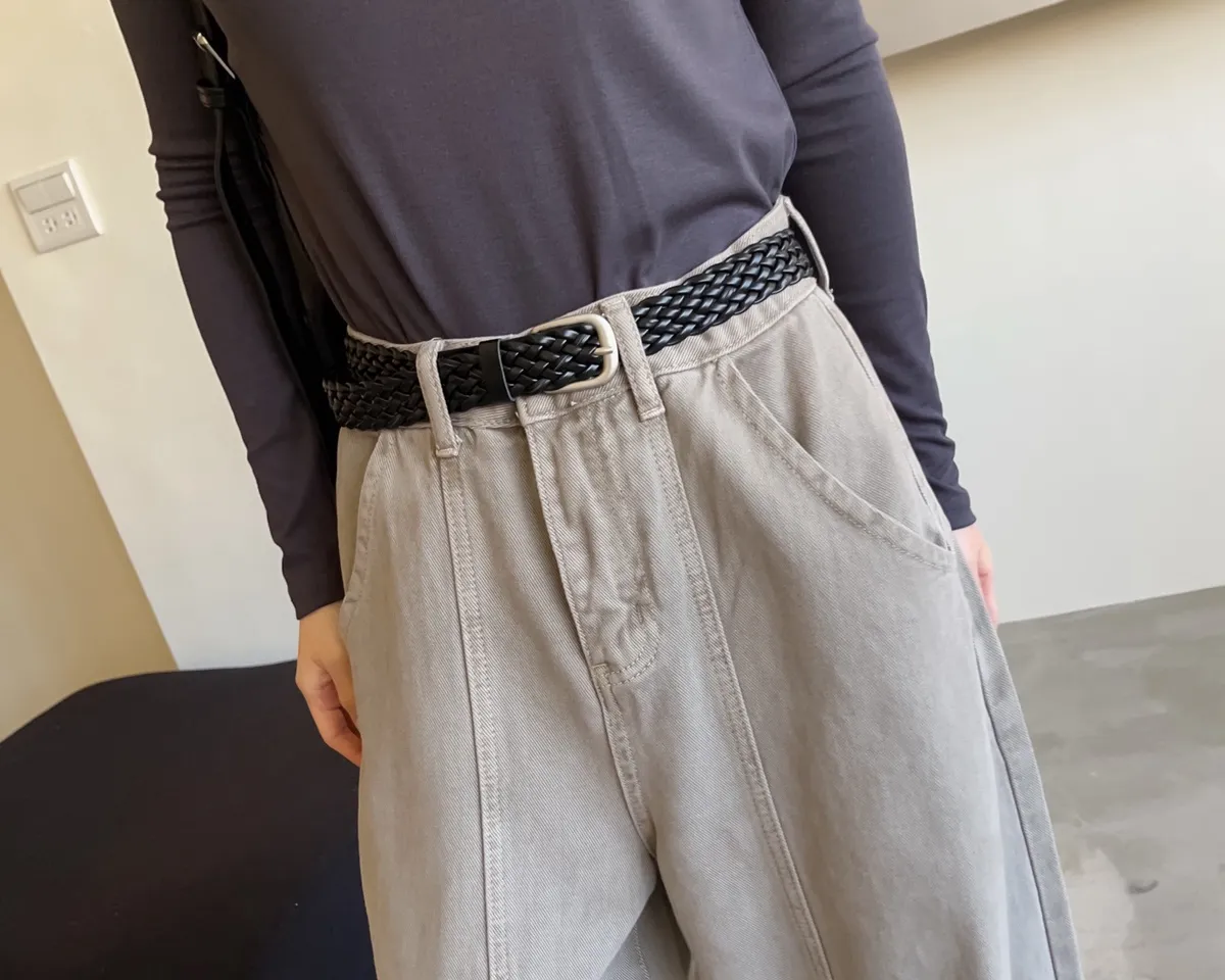 版型正常 兩側口袋 附編織造型皮帶 車線設計 彎刀版型 布料本身無彈性