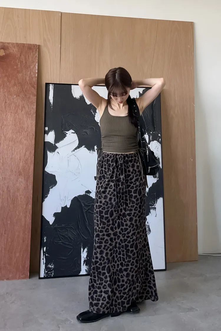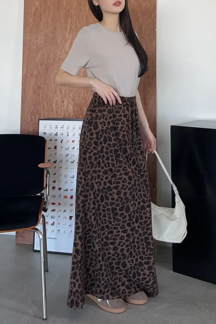U0072野性美時髦豹紋長裙(咖啡/灰)