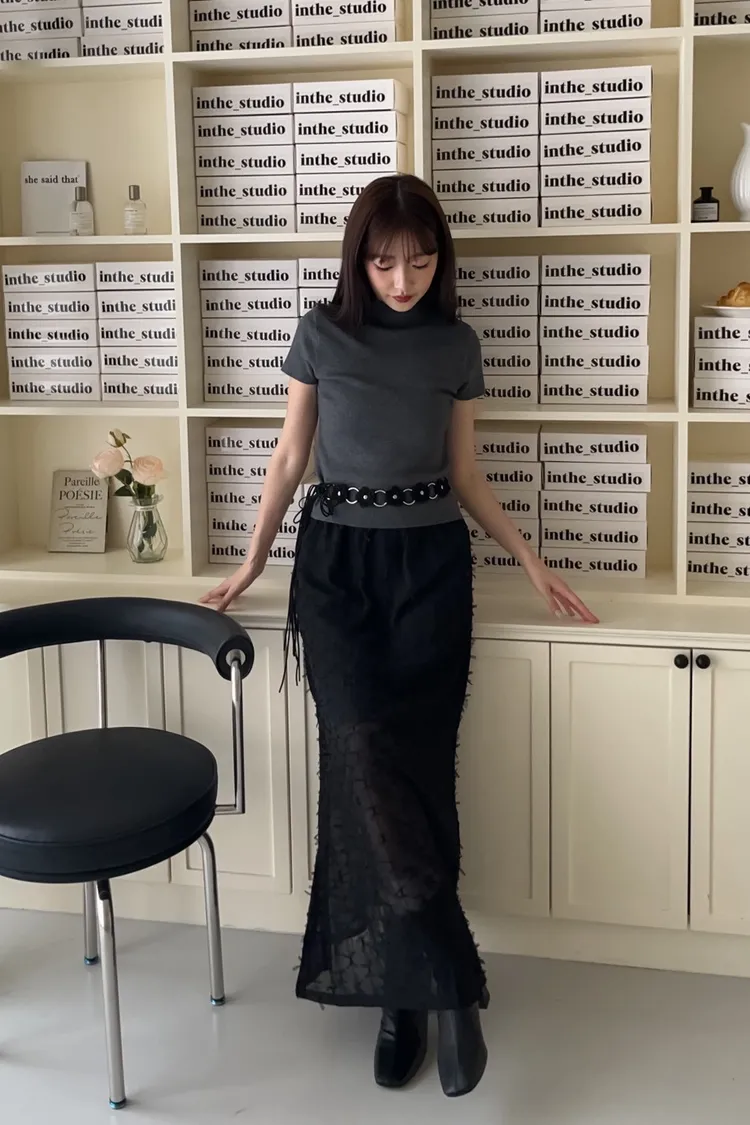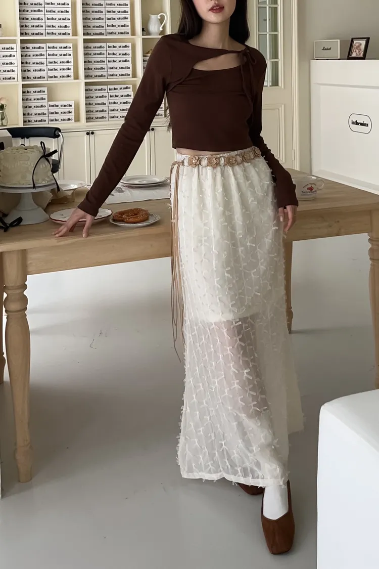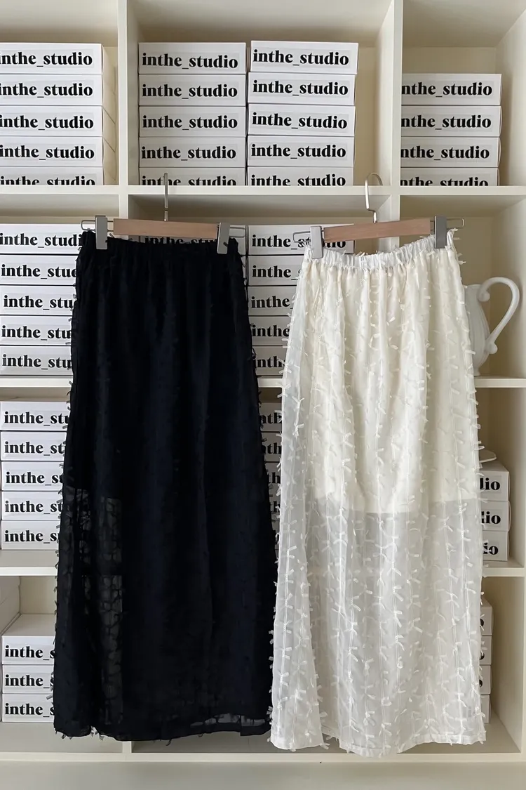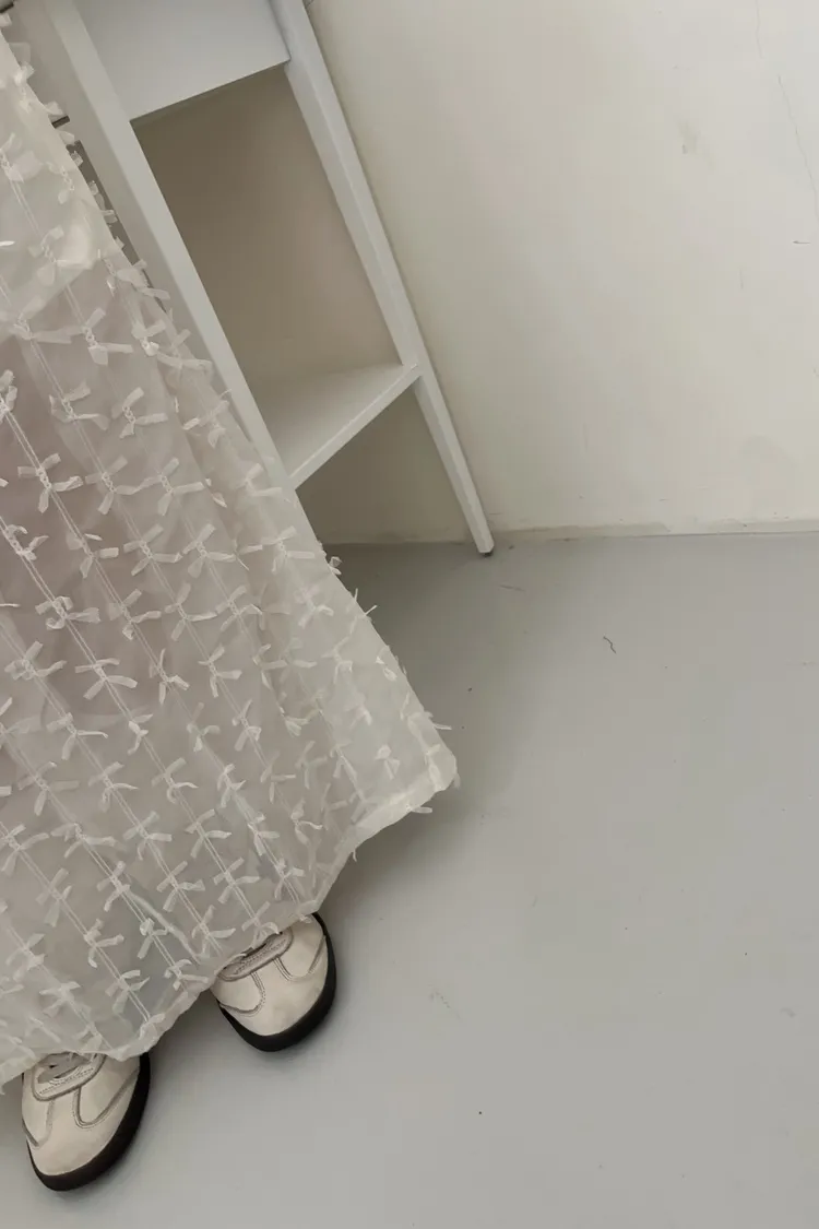 V0002甜美蝴蝶結透視魚尾裙(米/黑)