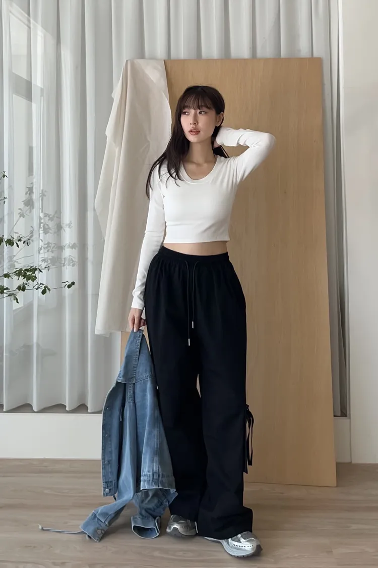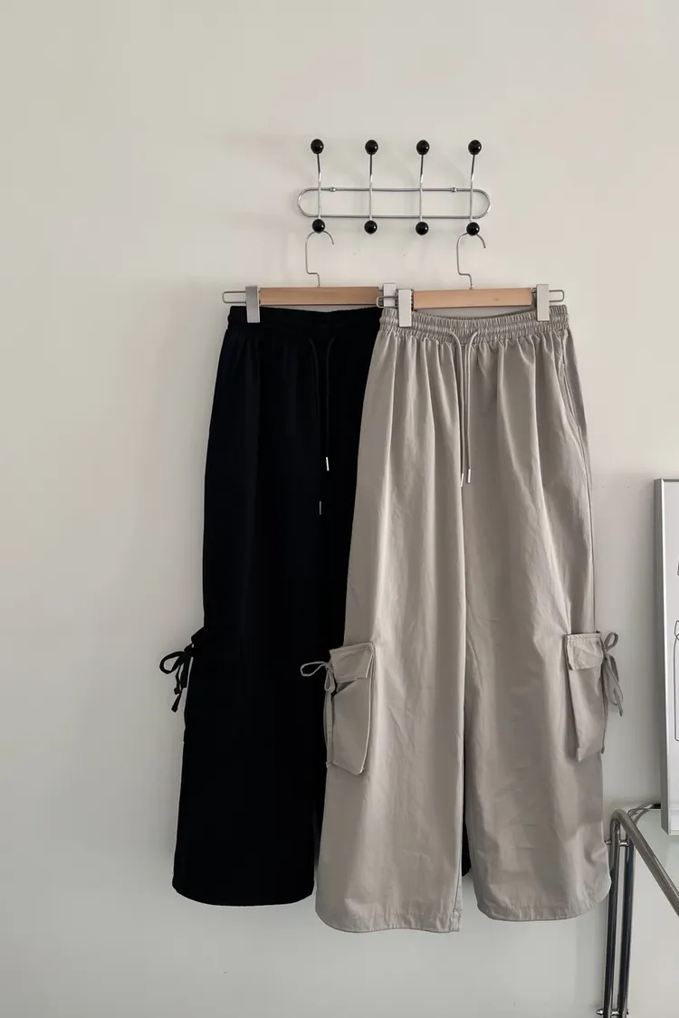 抽繩全鬆緊 建議尺寸S-大L 兩側口袋 兩邊下擺蝴蝶結口袋 穿大踢也能露出細節! 褲腳有抽繩可以縮口