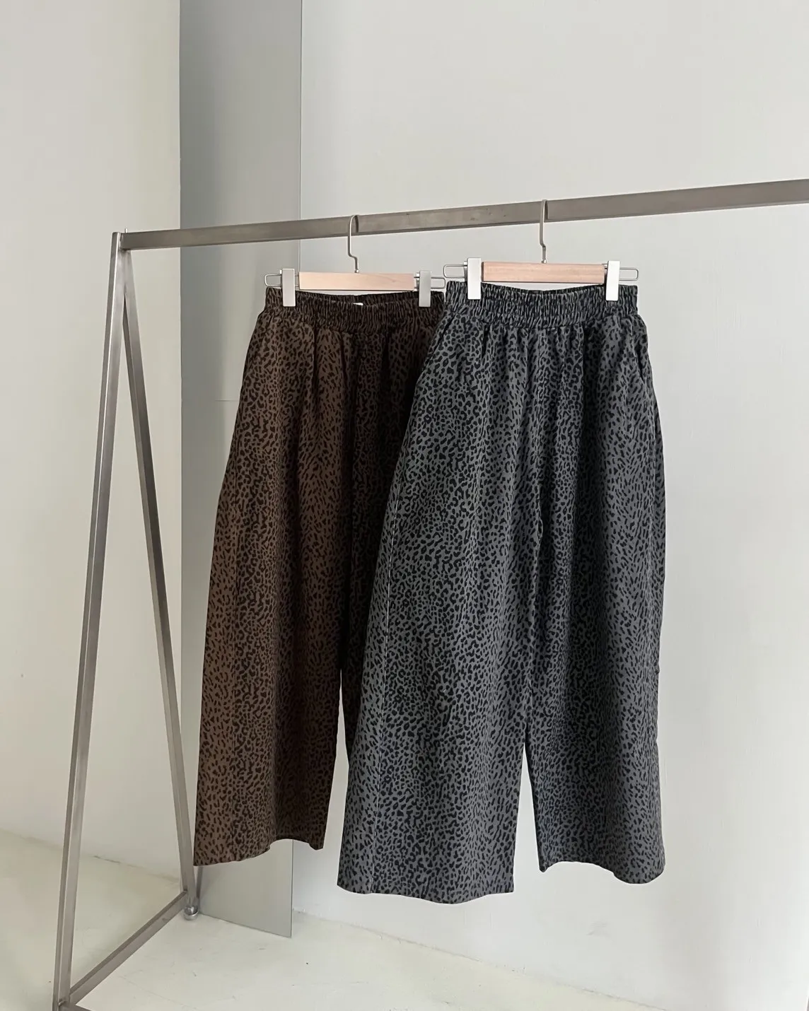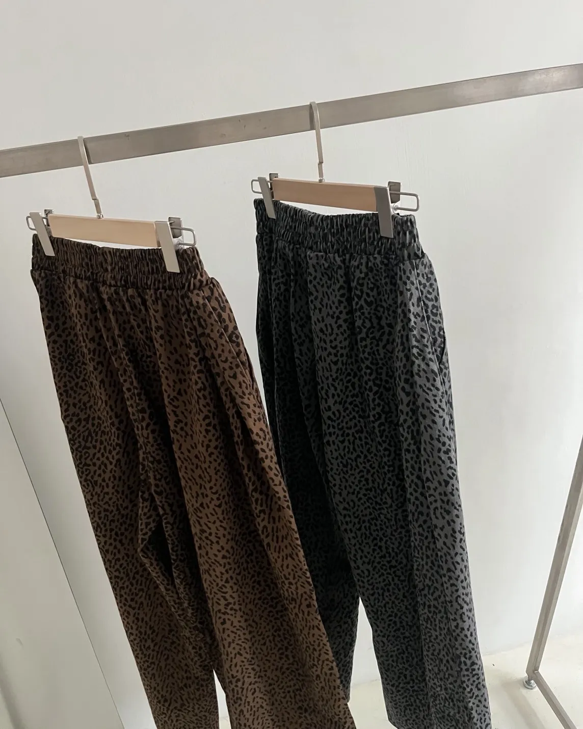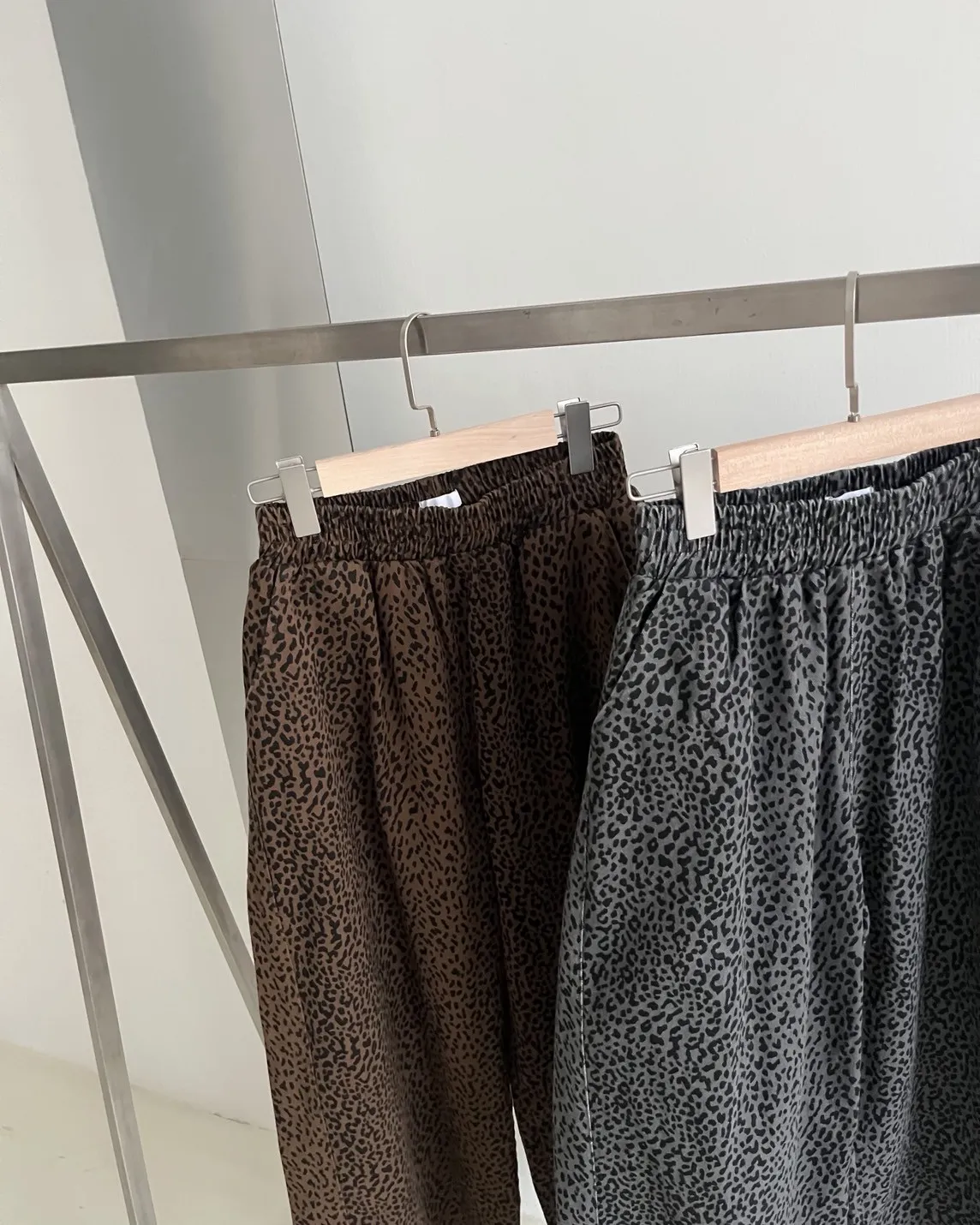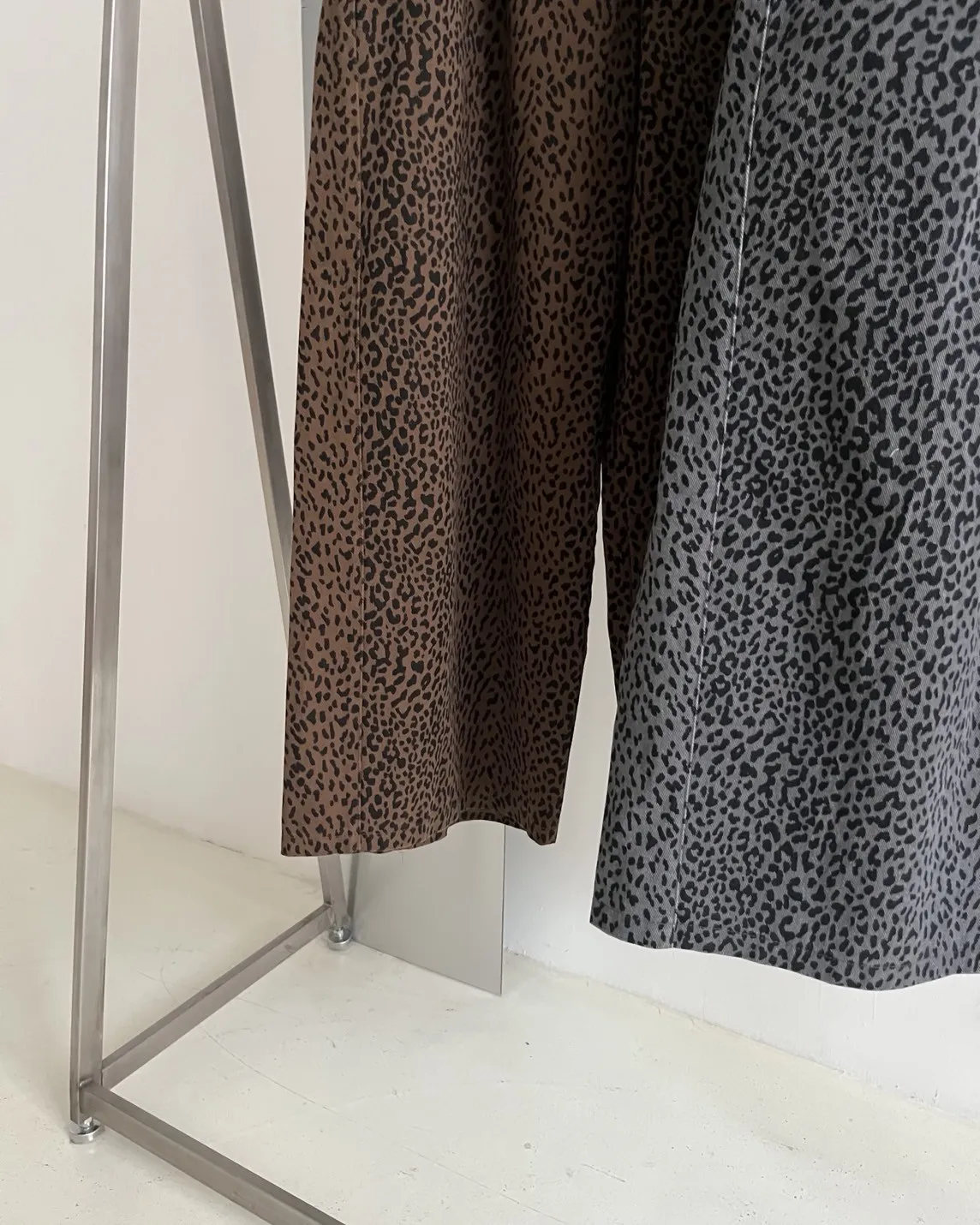 U0043挺版豹紋鬆緊寬褲(咖啡/灰)