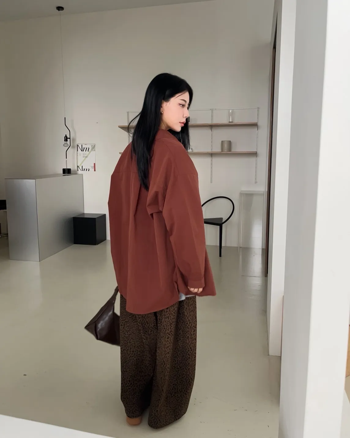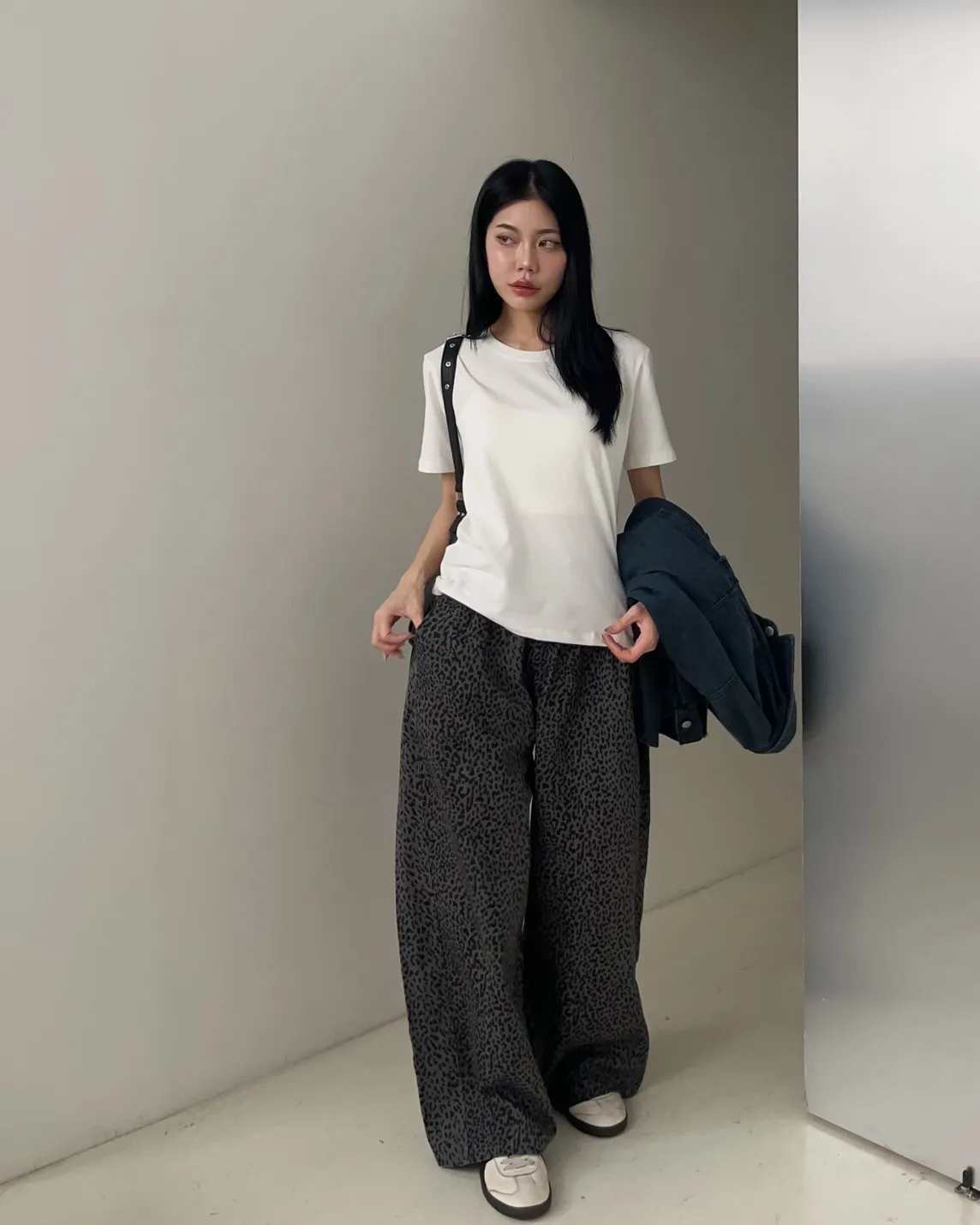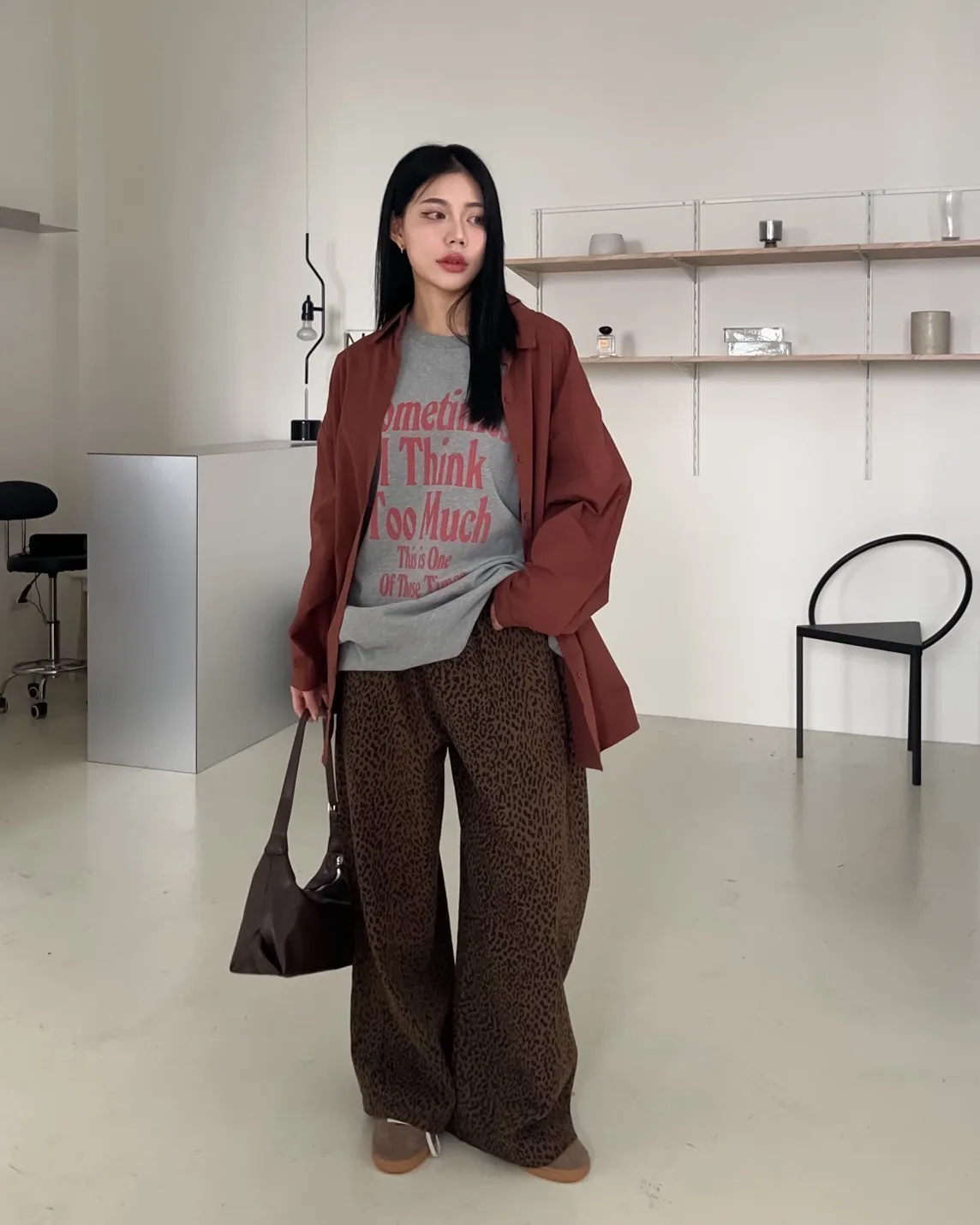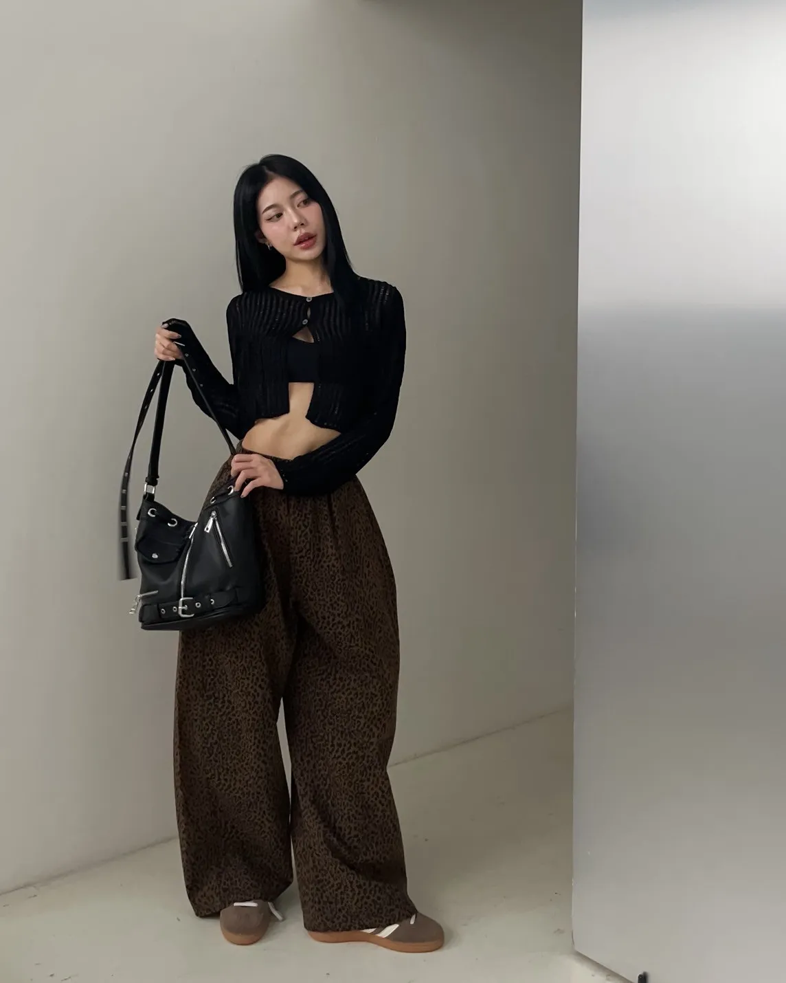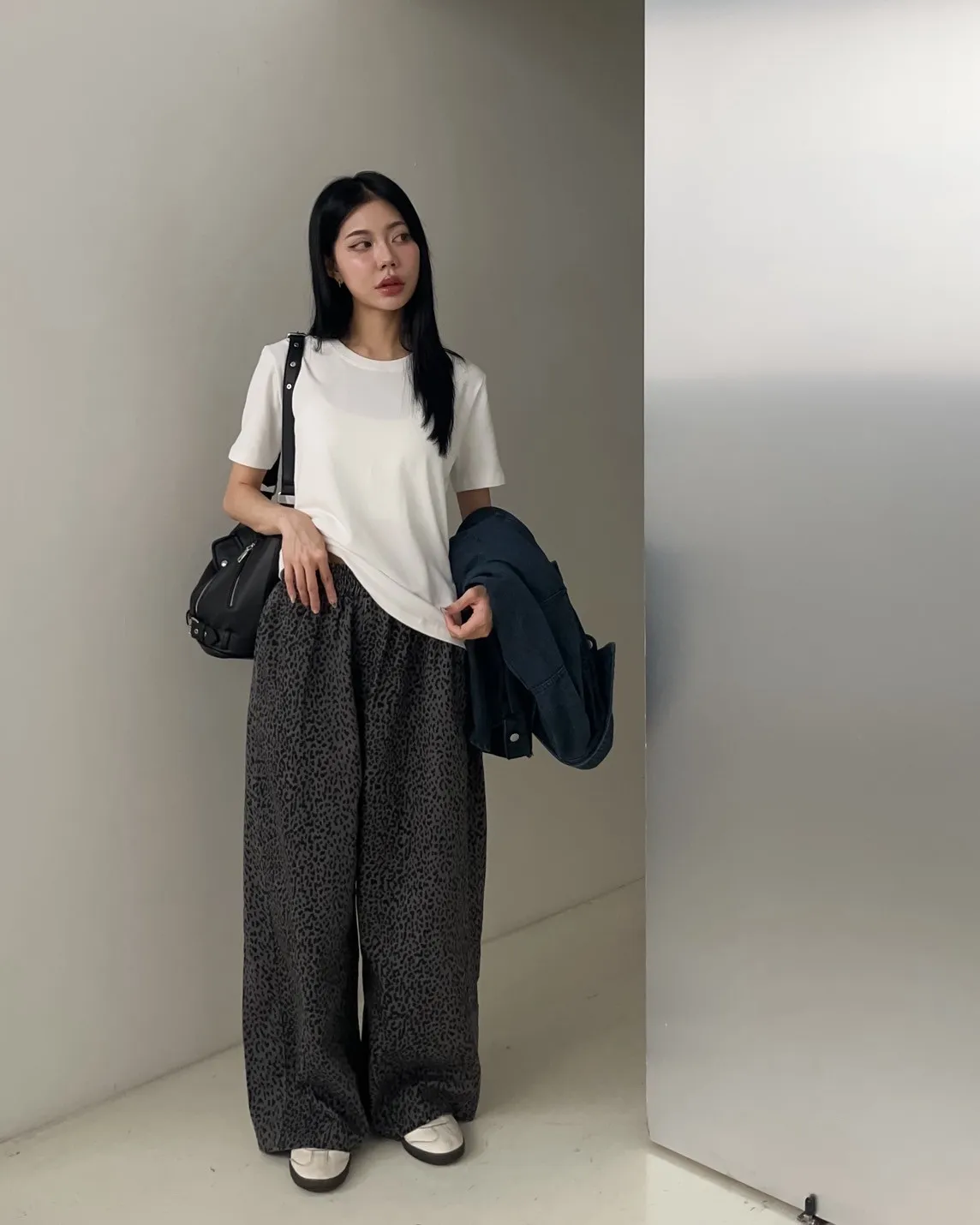 U0043挺版豹紋鬆緊寬褲(咖啡/灰)