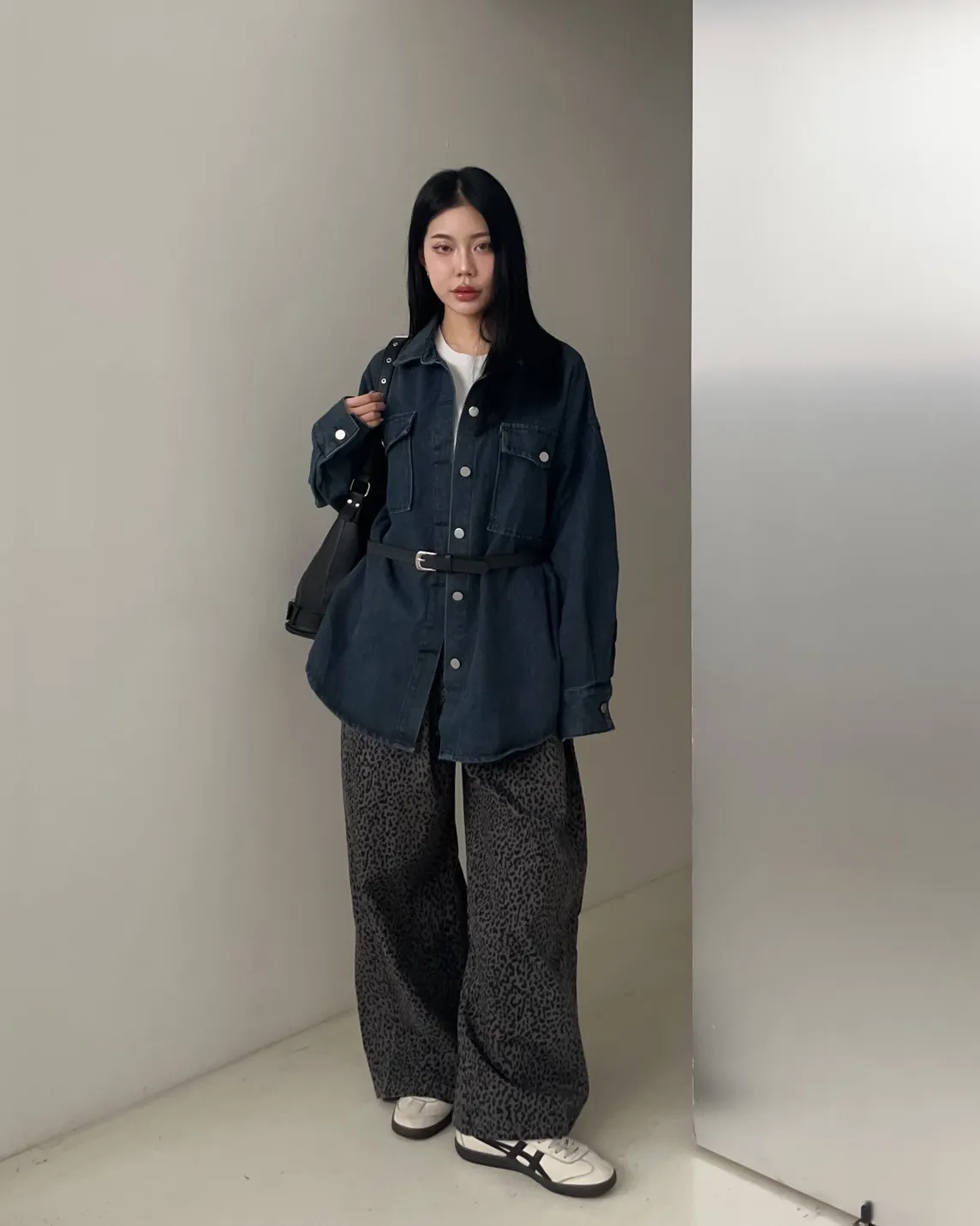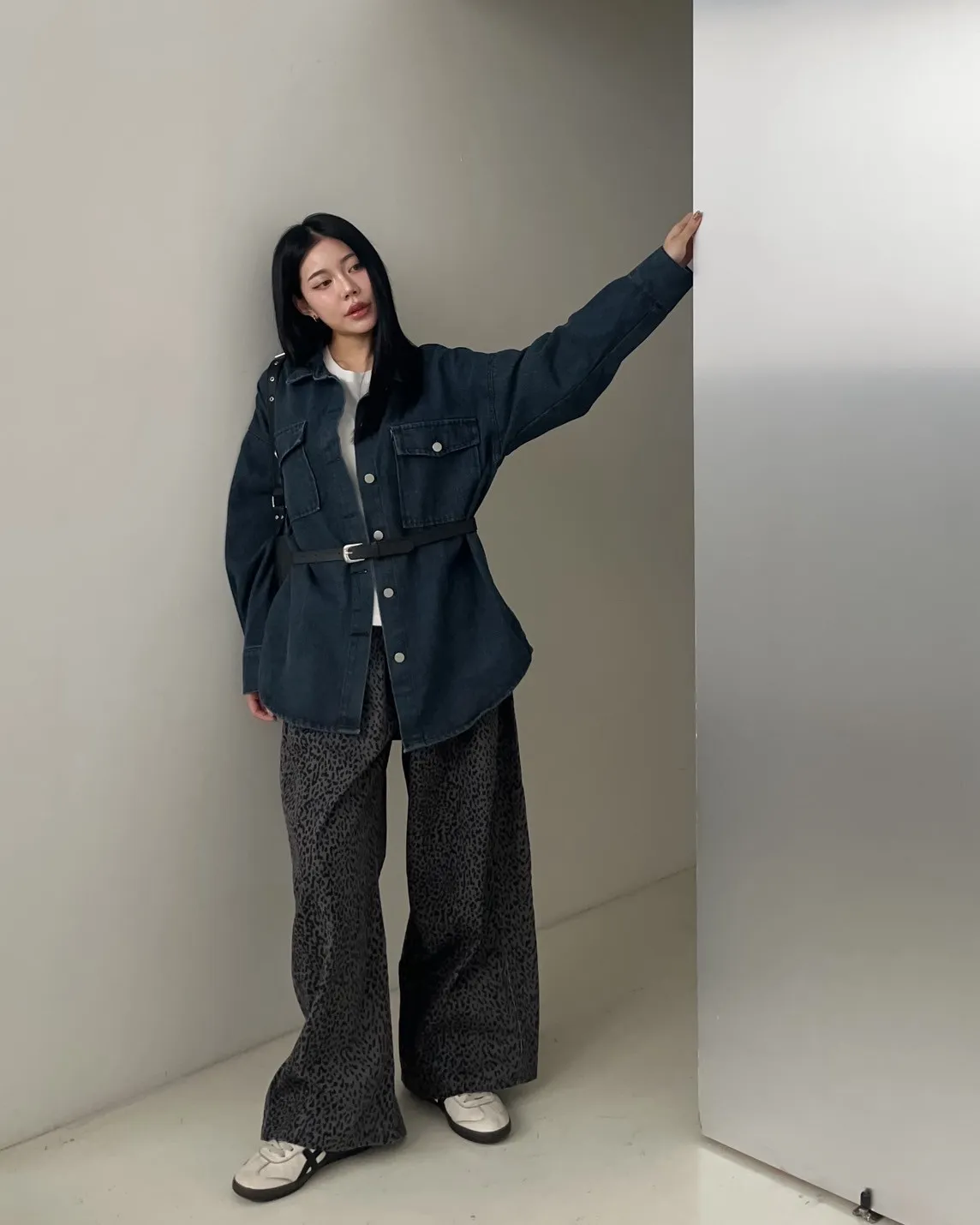 全鬆緊 建議尺寸S-L 兩側口袋 豹紋 寬版 布料偏硬挺 無彈性