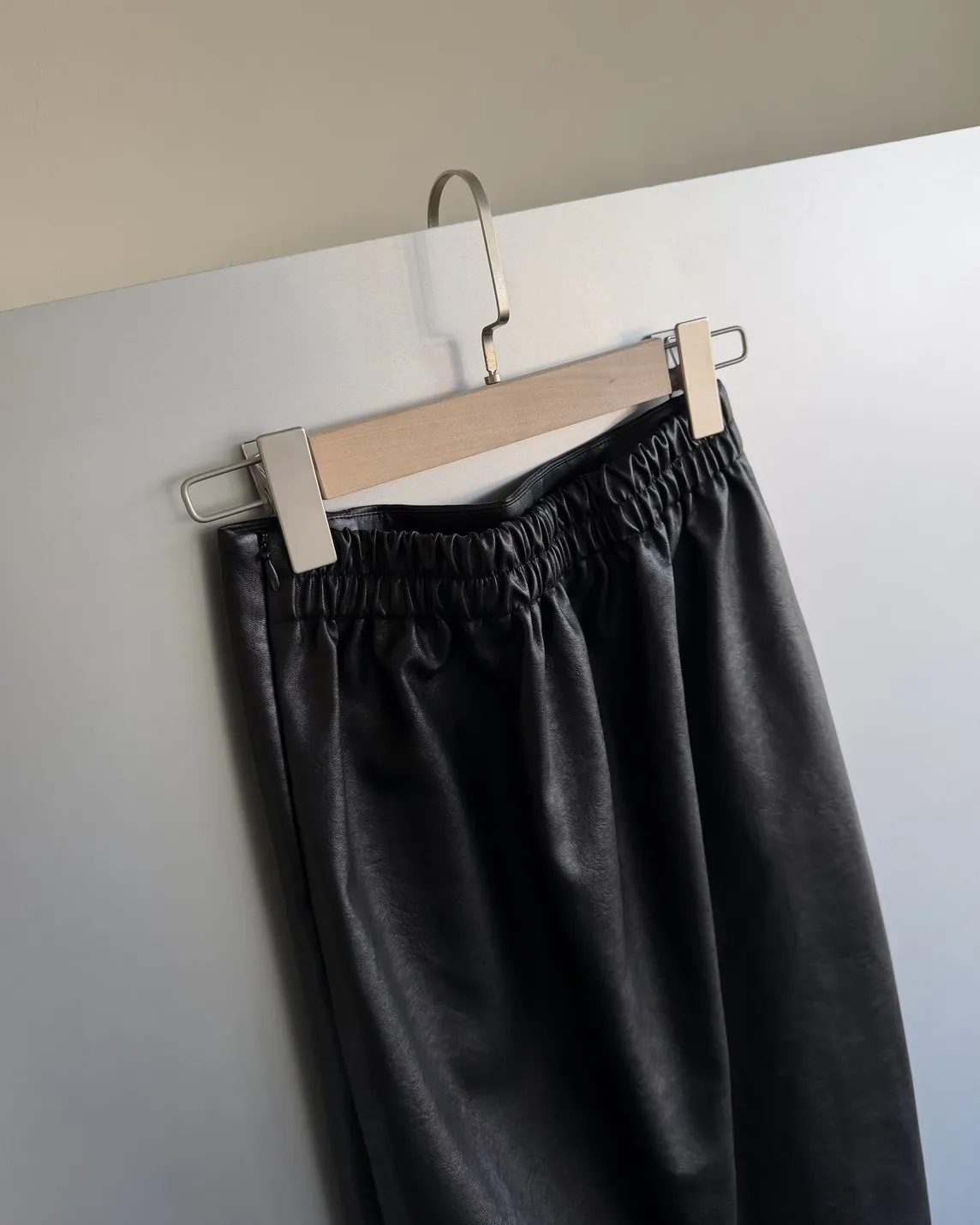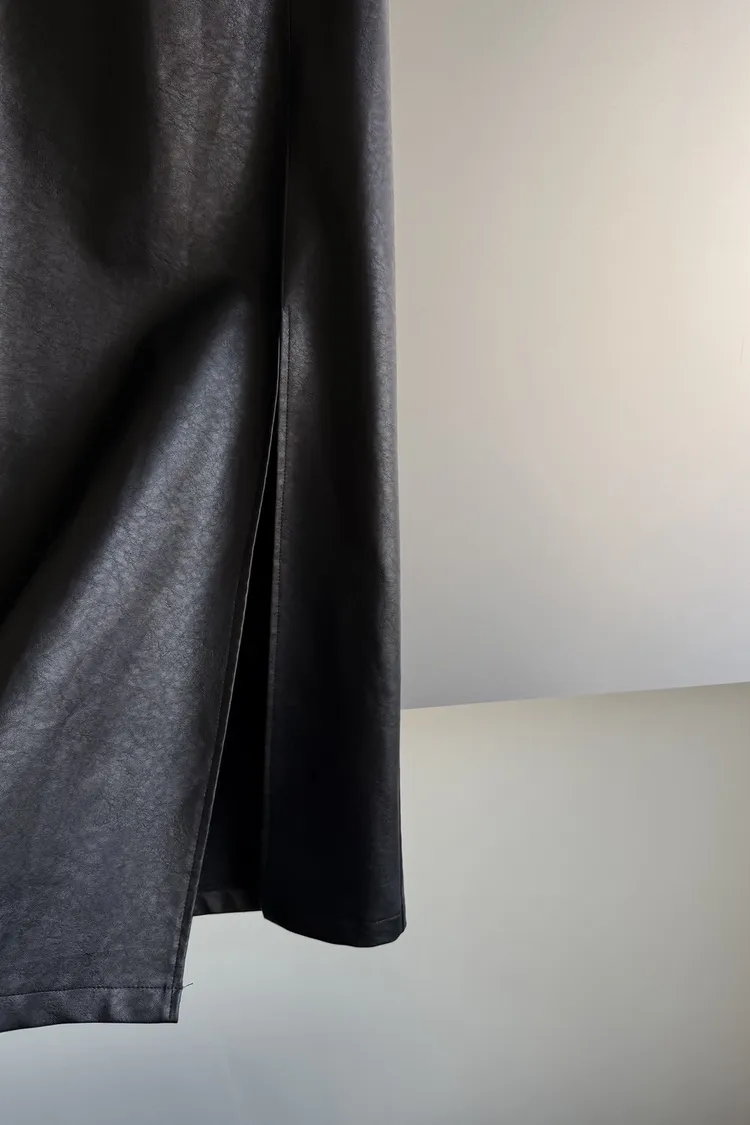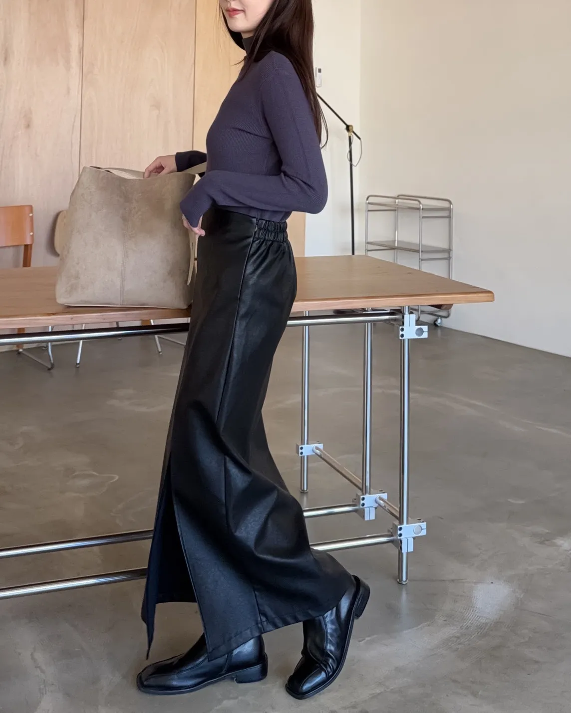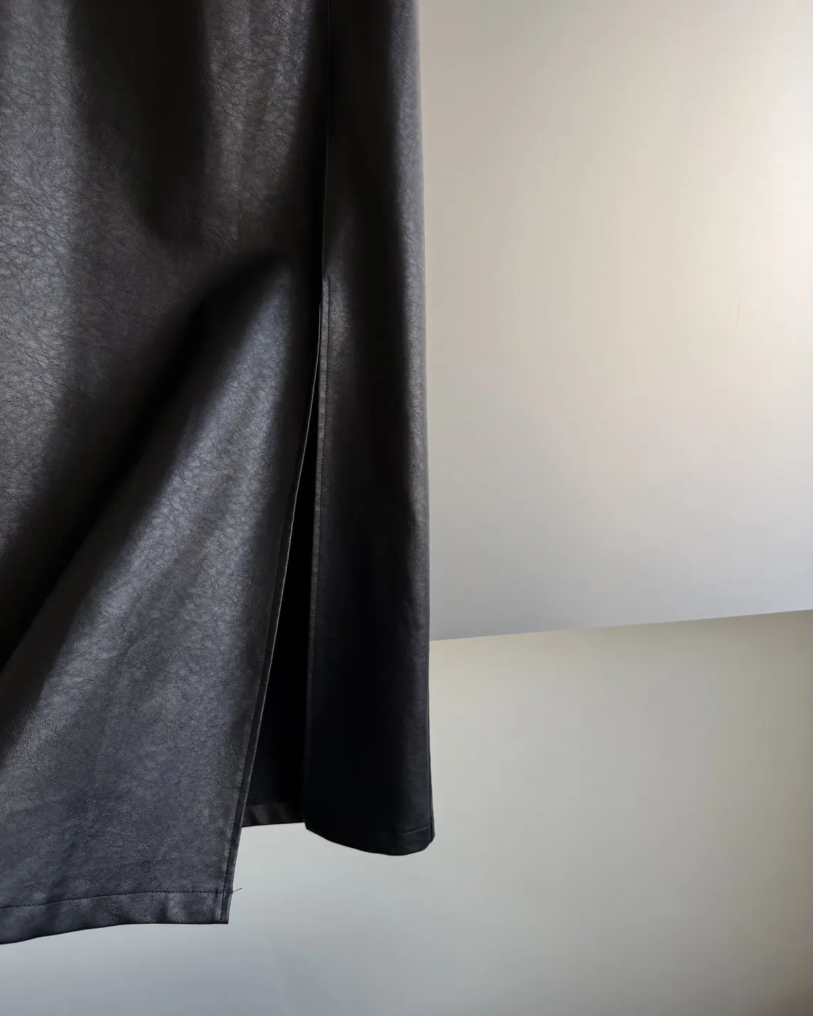 後鬆緊 建議尺寸S-大M 無口袋 無內裡 前側高開衩 皮革無彈性