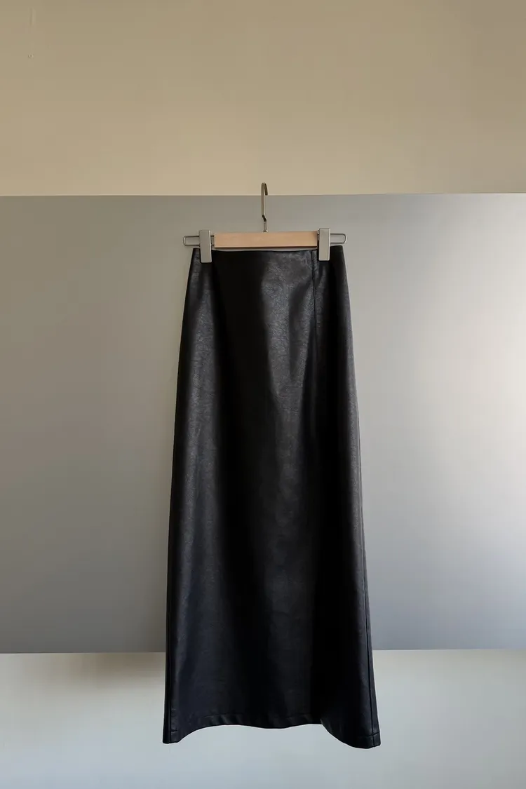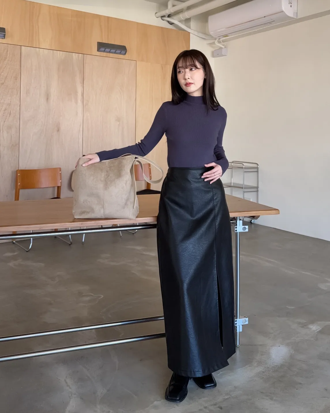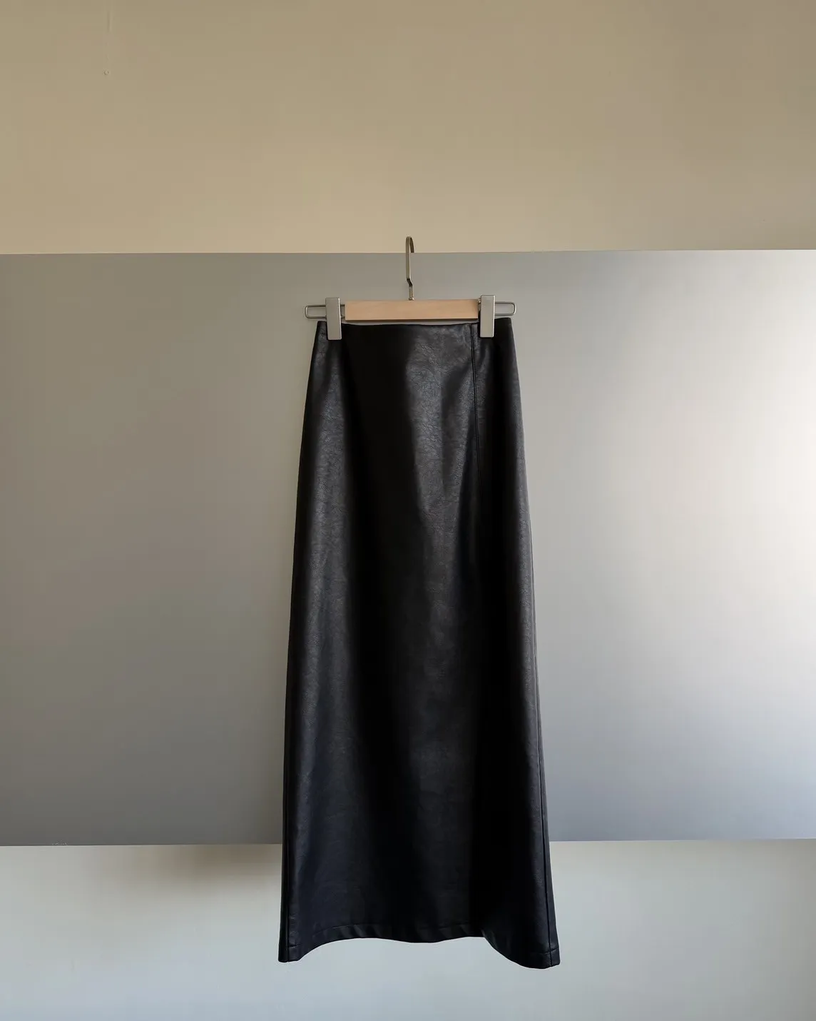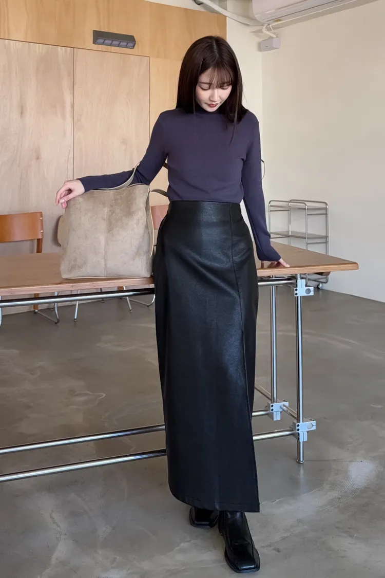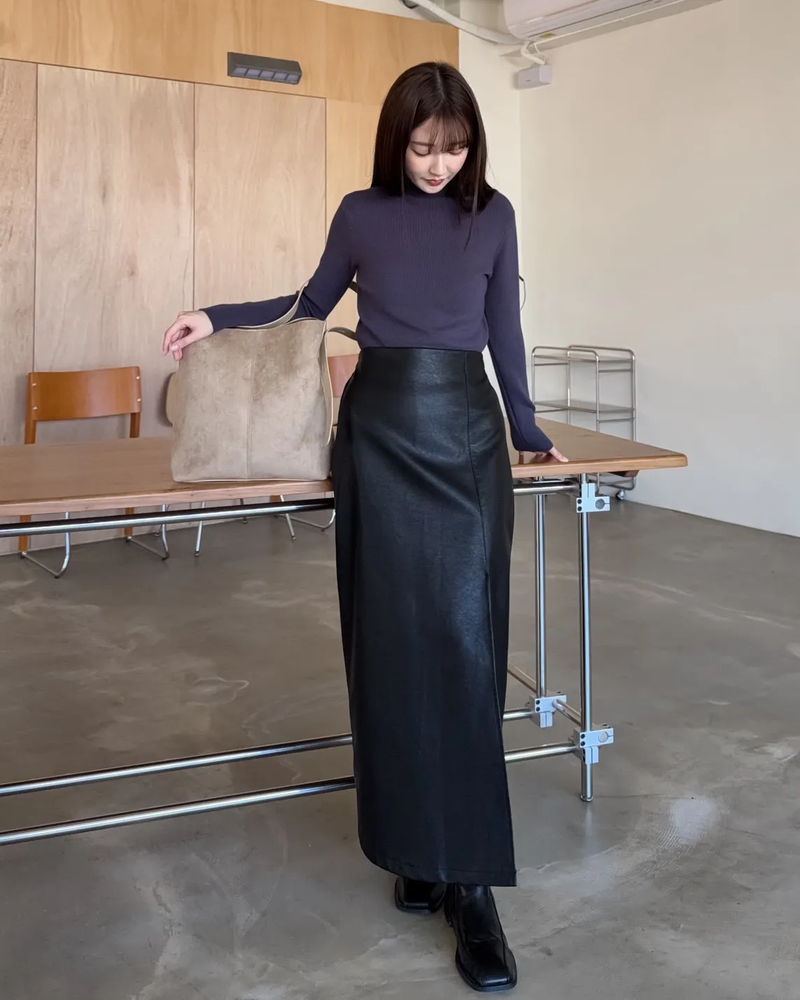 後鬆緊 建議尺寸S-大M 無口袋 無內裡 前側高開衩 皮革無彈性
