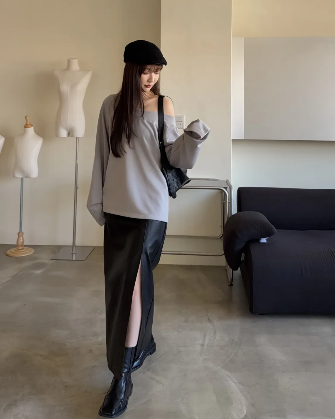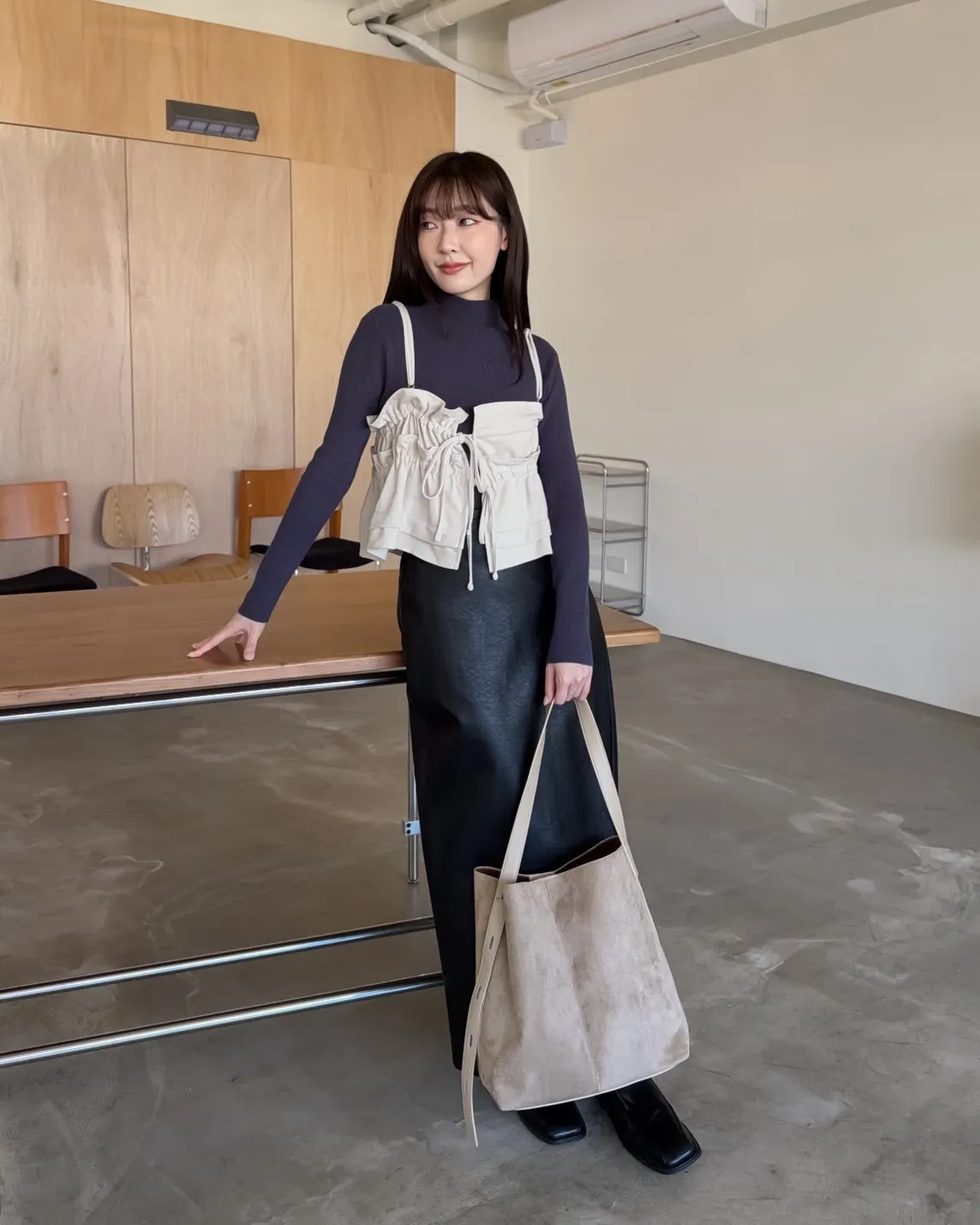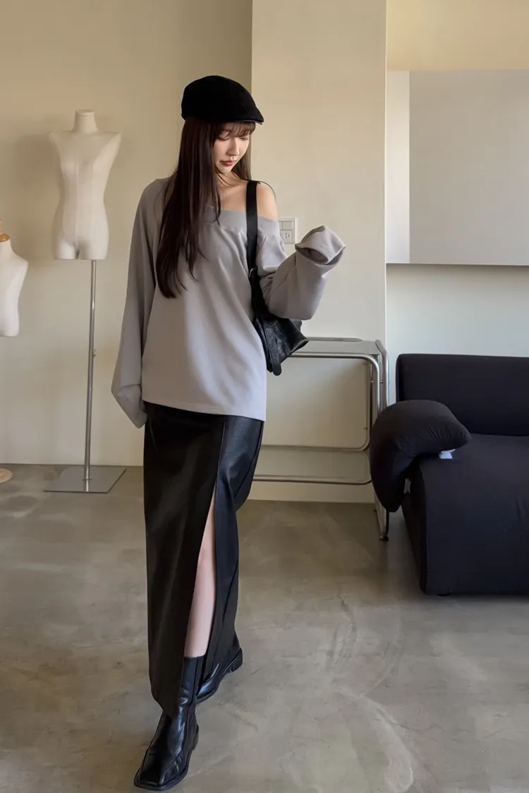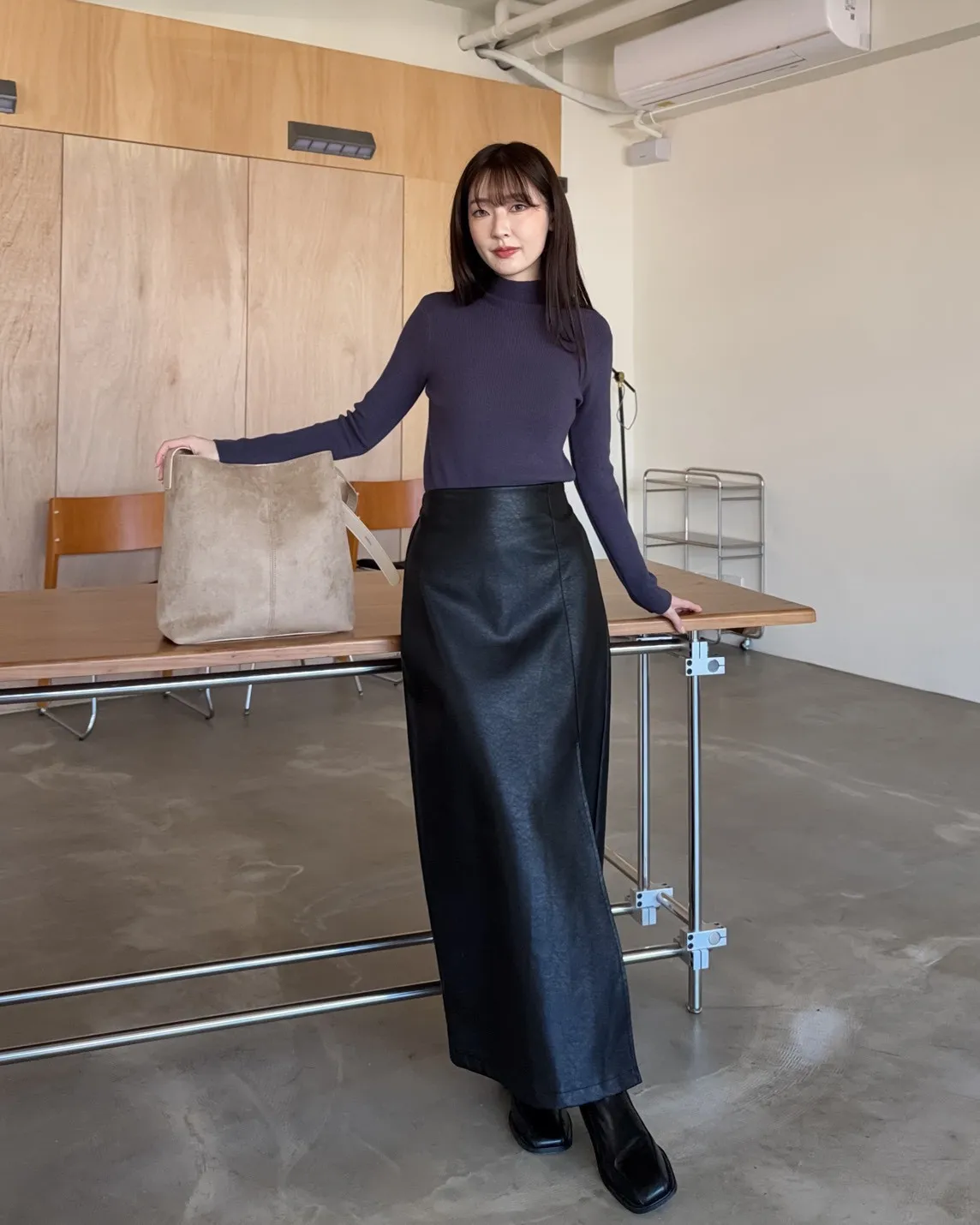 後鬆緊 建議尺寸S-大M 無口袋 無內裡 前側高開衩 皮革無彈性