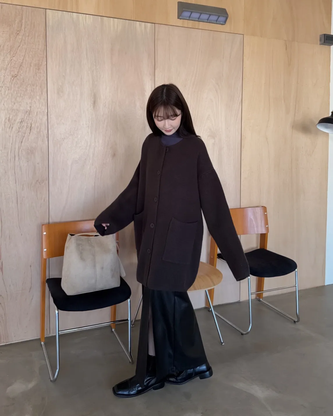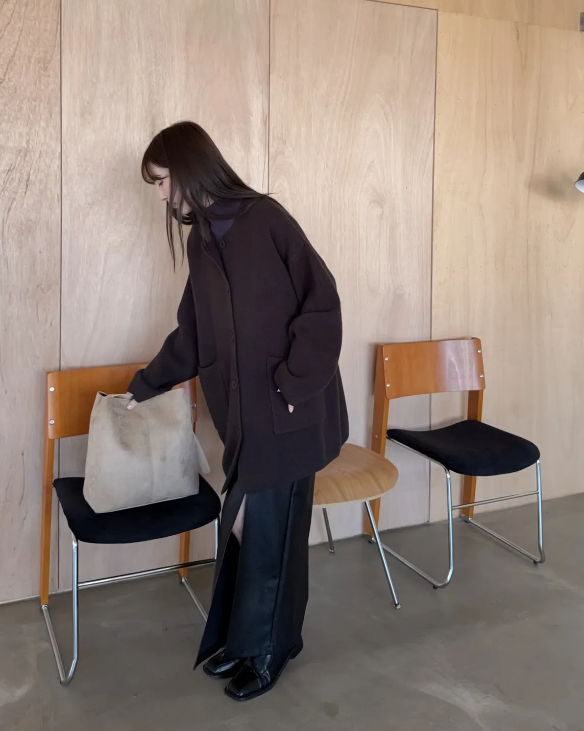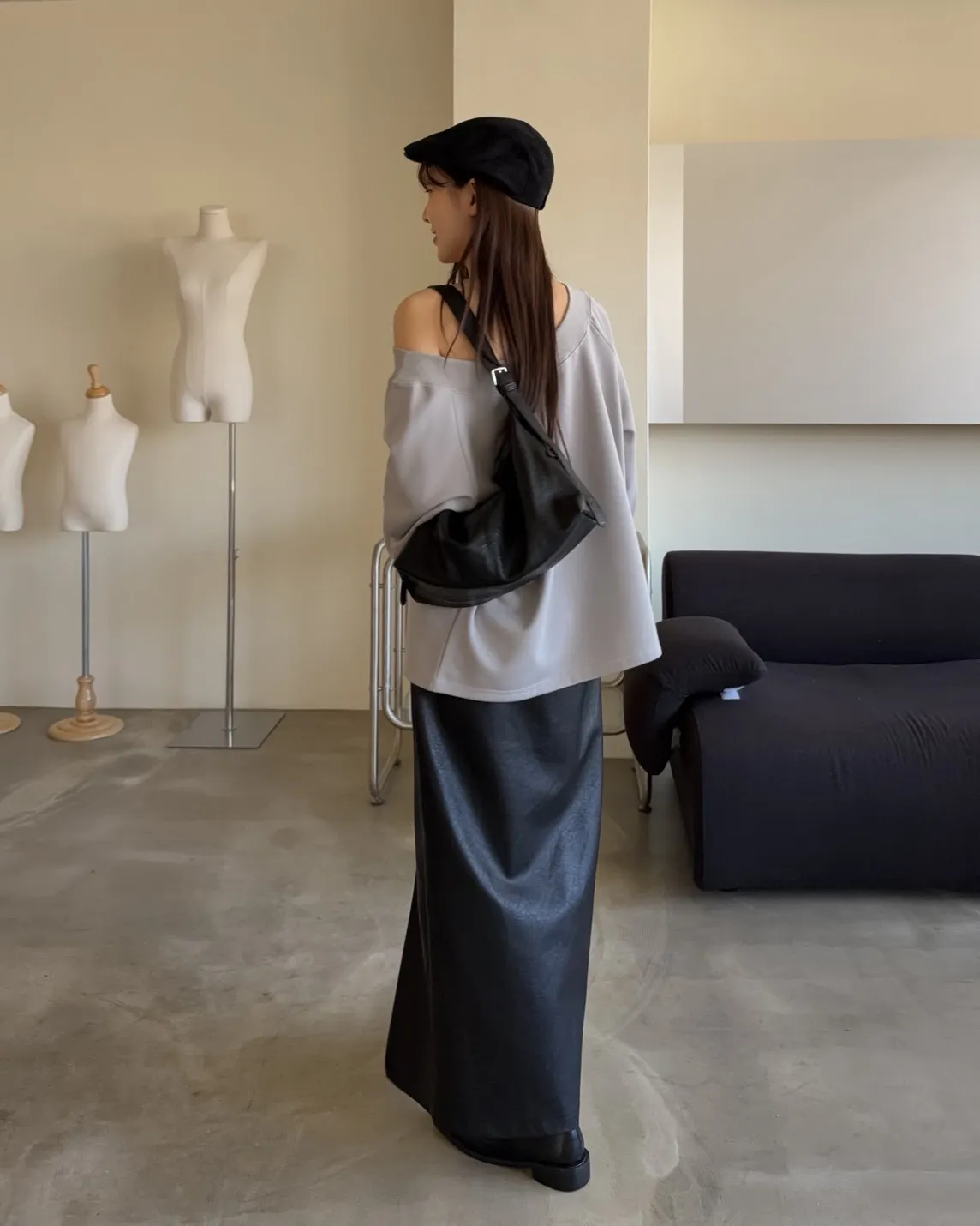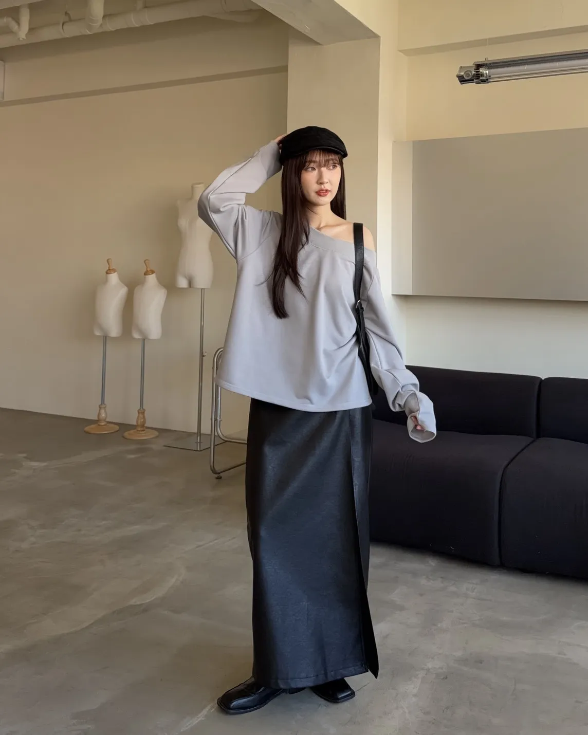 後鬆緊 建議尺寸S-大M 無口袋 無內裡 前側高開衩 皮革無彈性