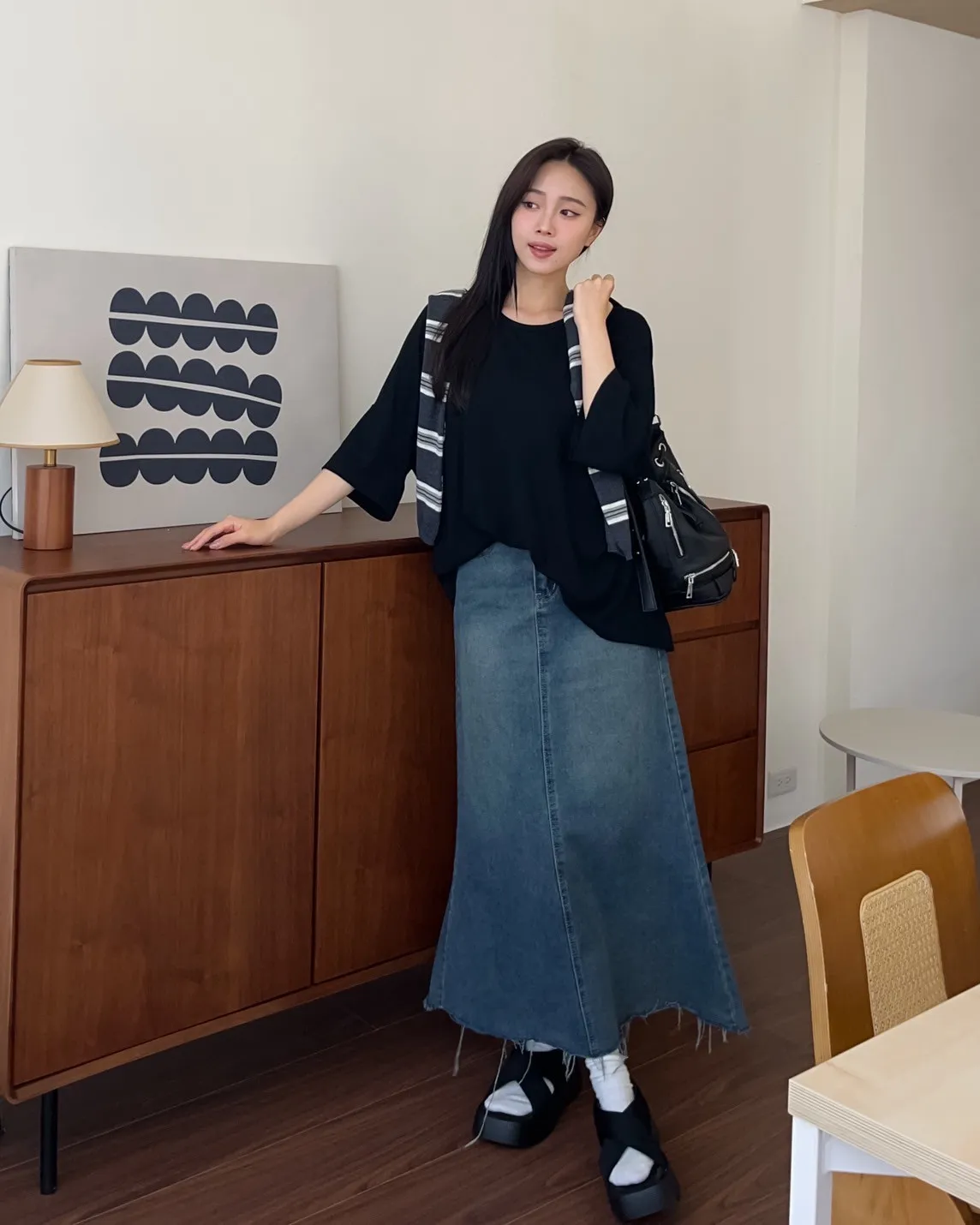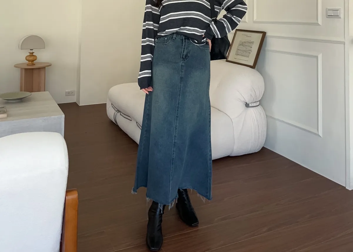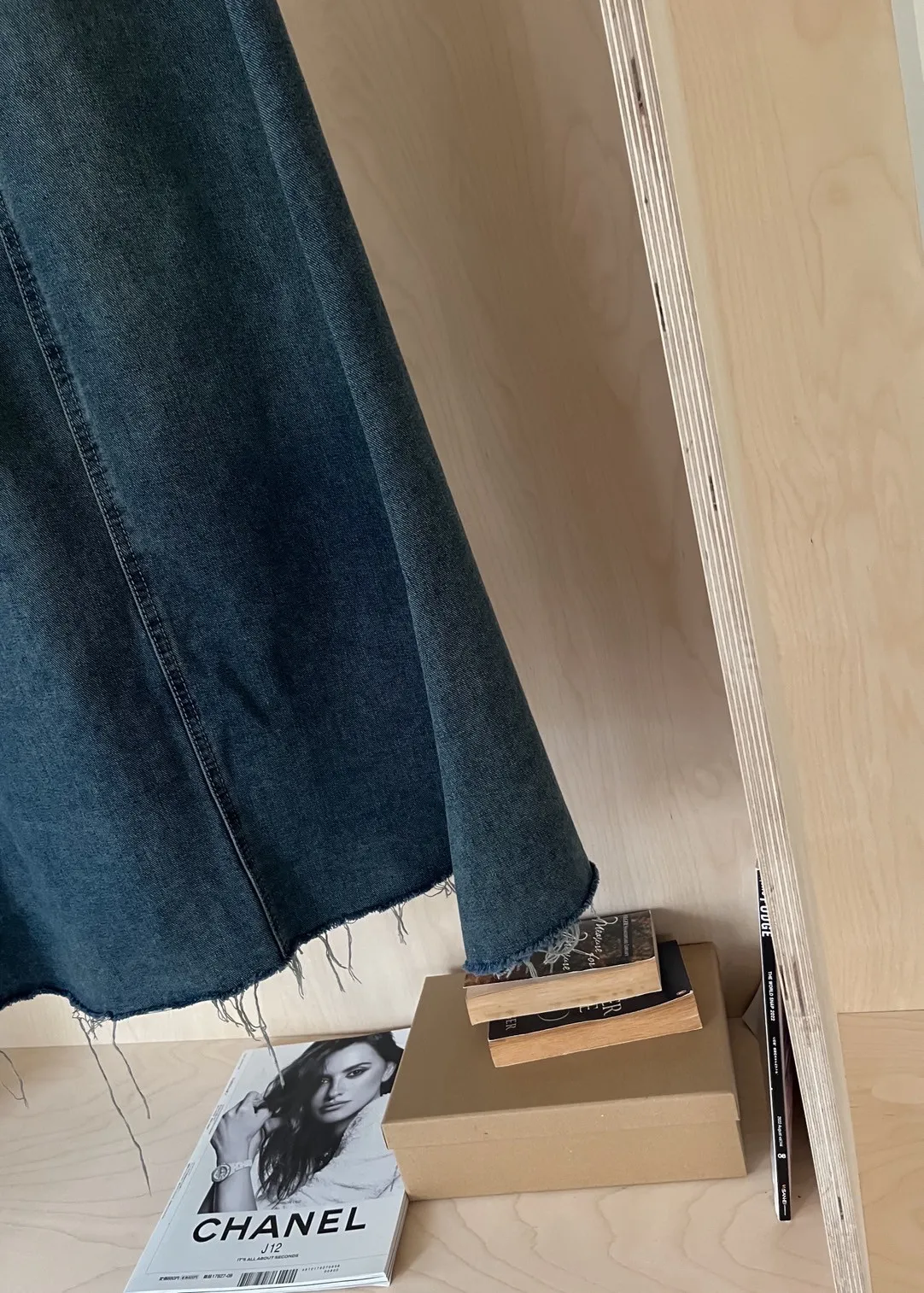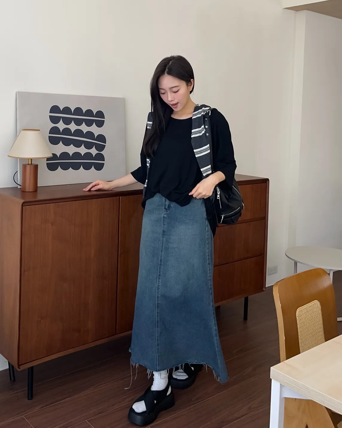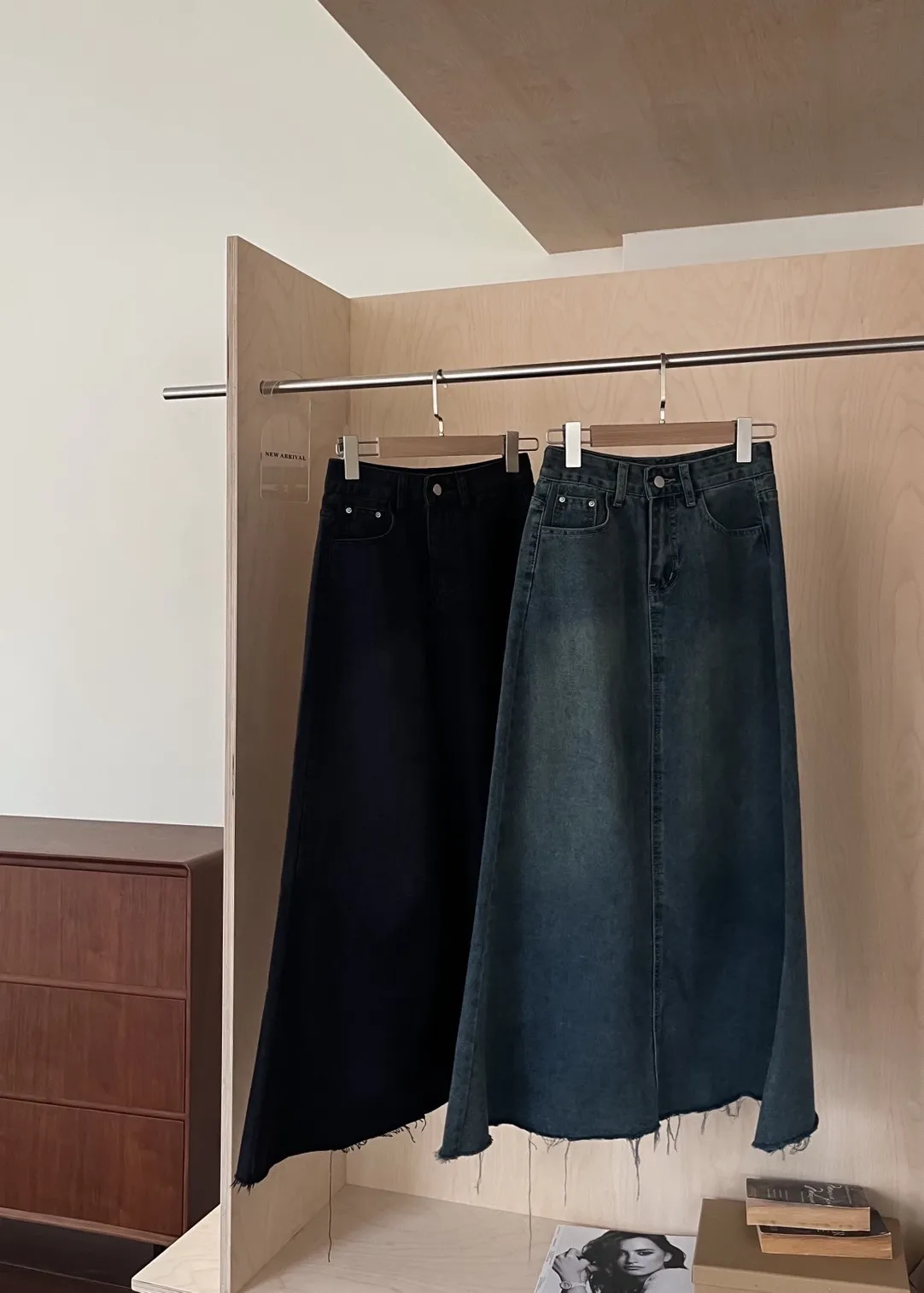 T0051小魚尾不修邊牛仔裙(藍/黑灰)(售完不補)