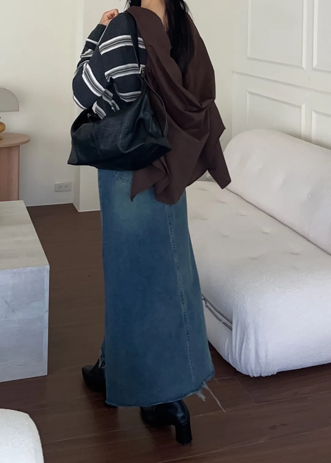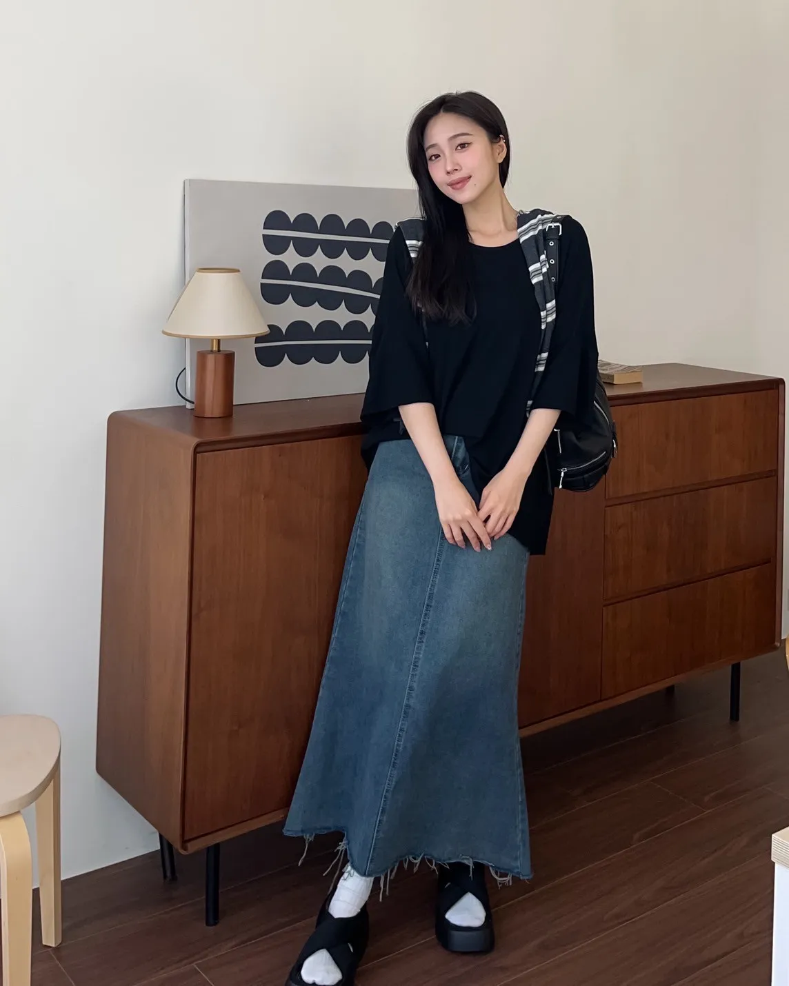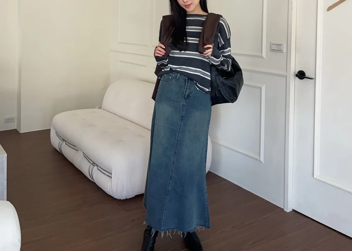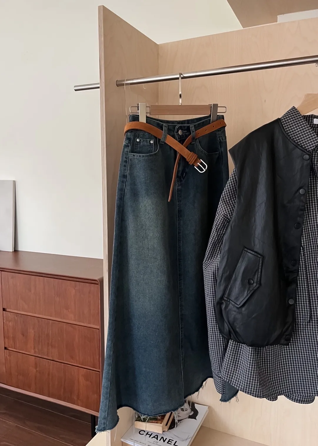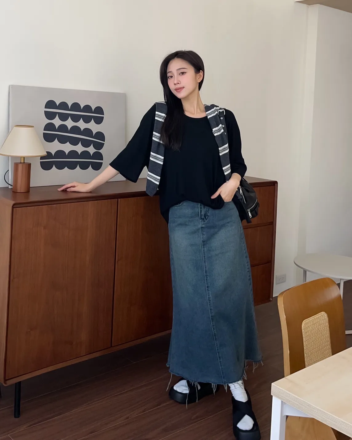 T0051小魚尾不修邊牛仔裙(藍/黑灰)(售完不補)