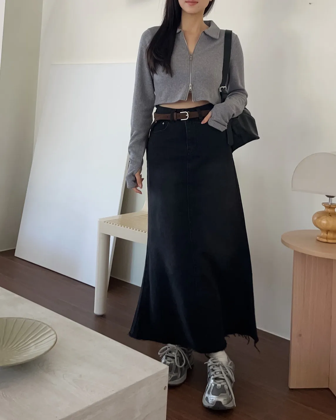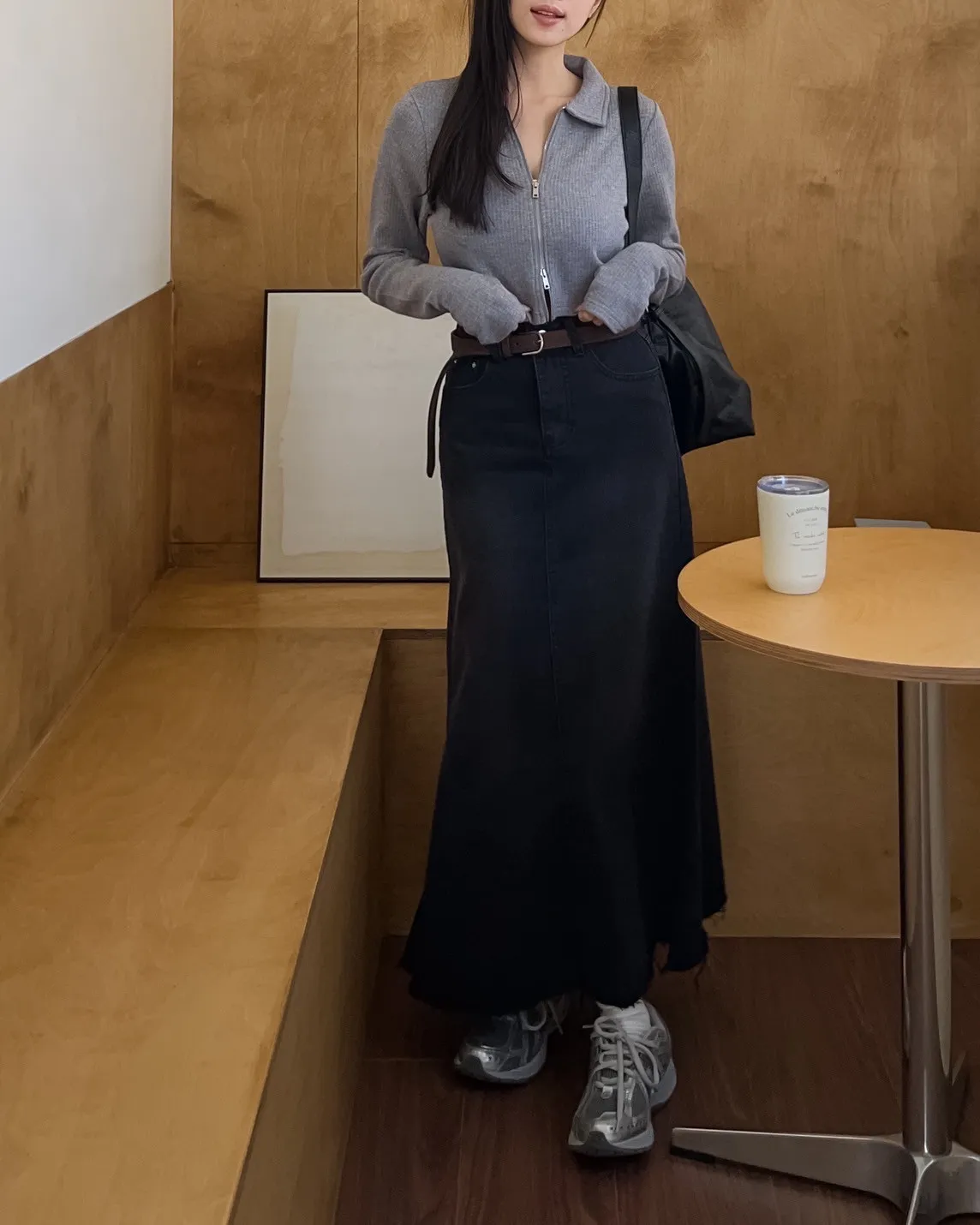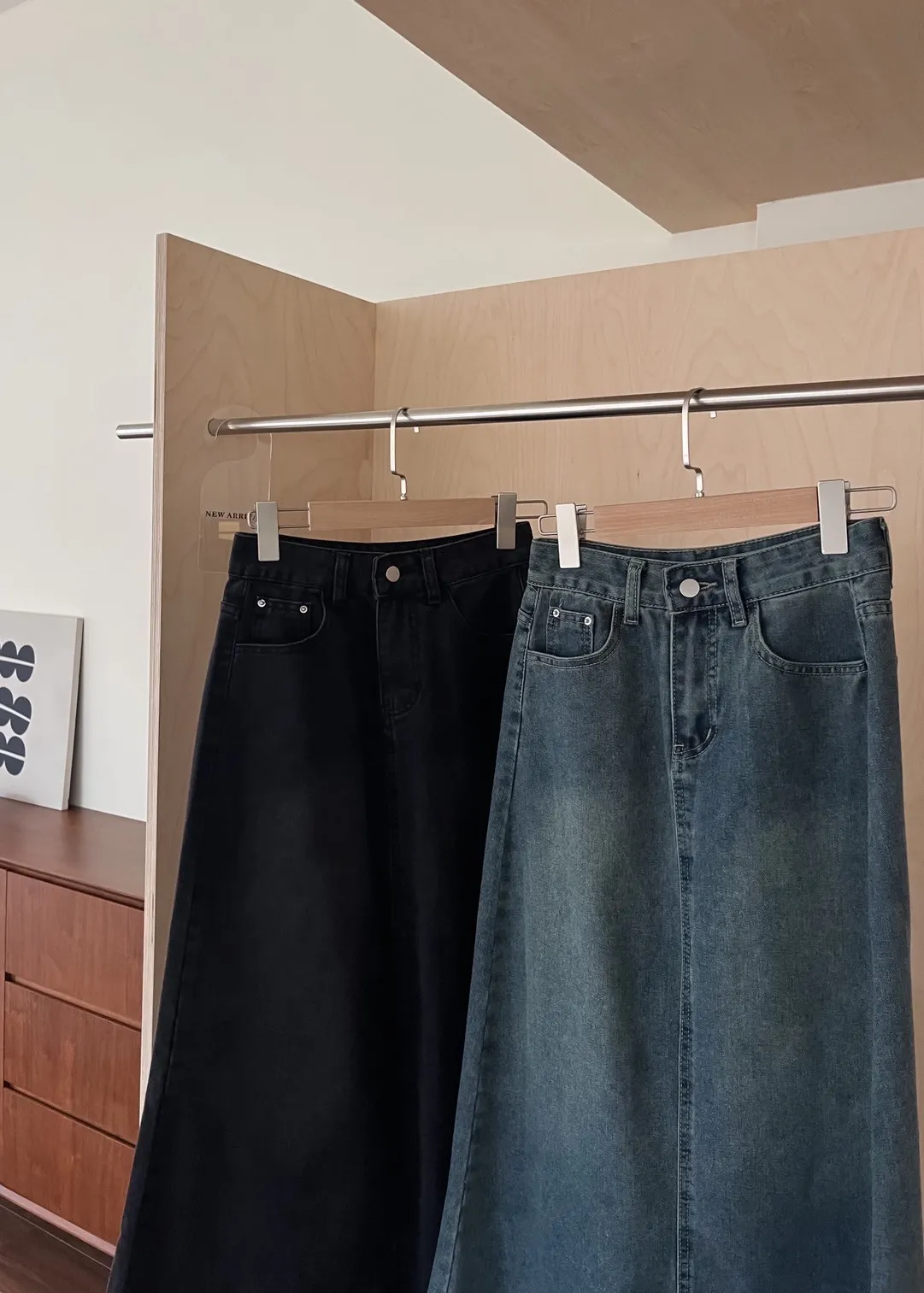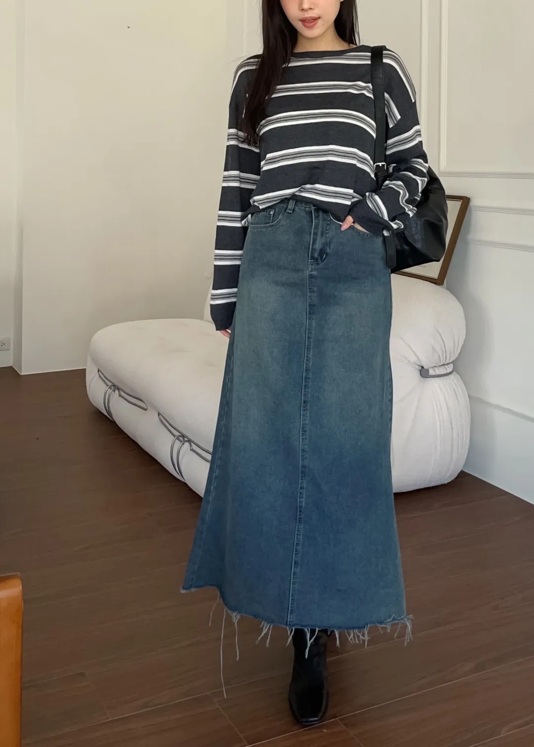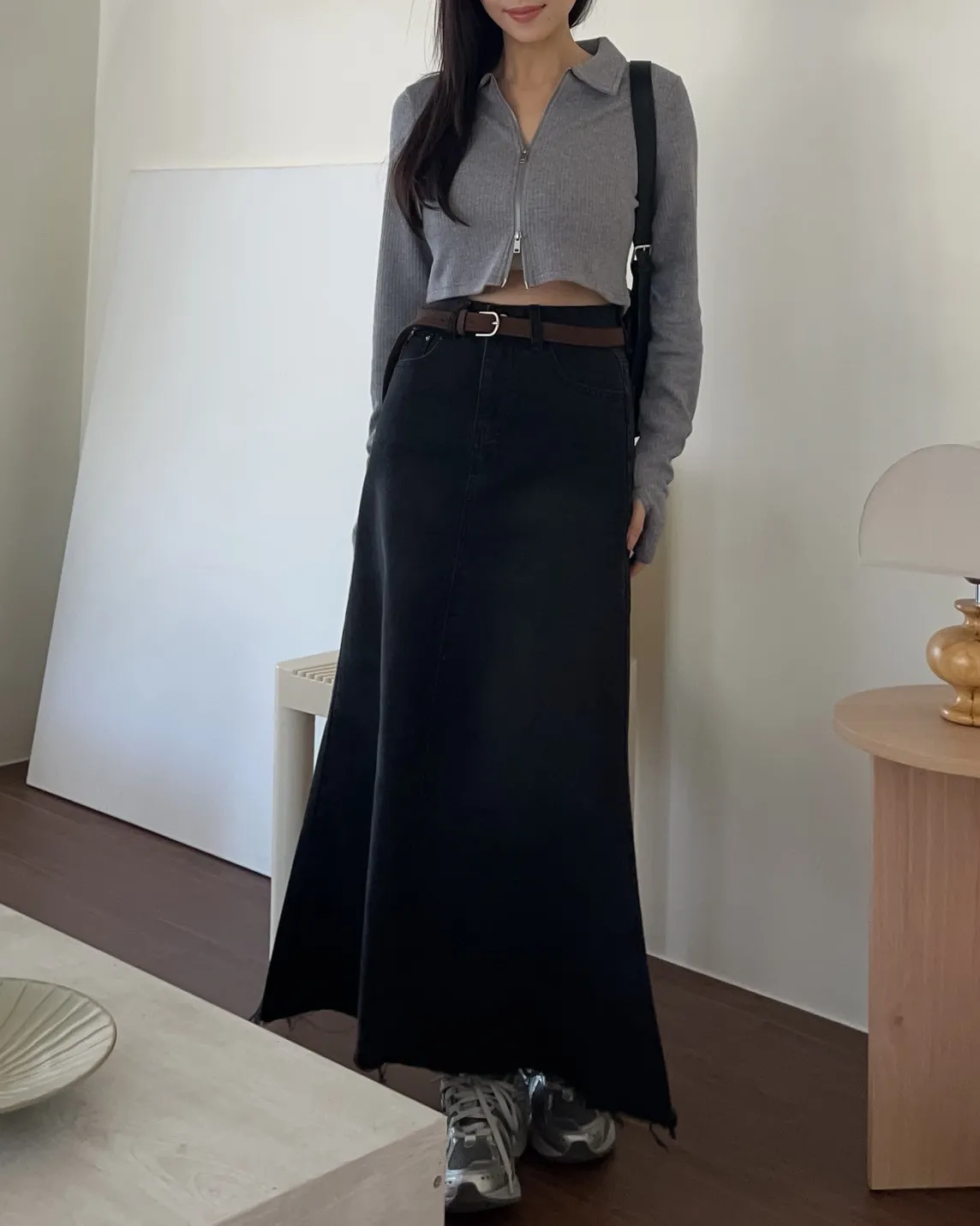 T0051小魚尾不修邊牛仔裙(藍/黑灰)(售完不補)